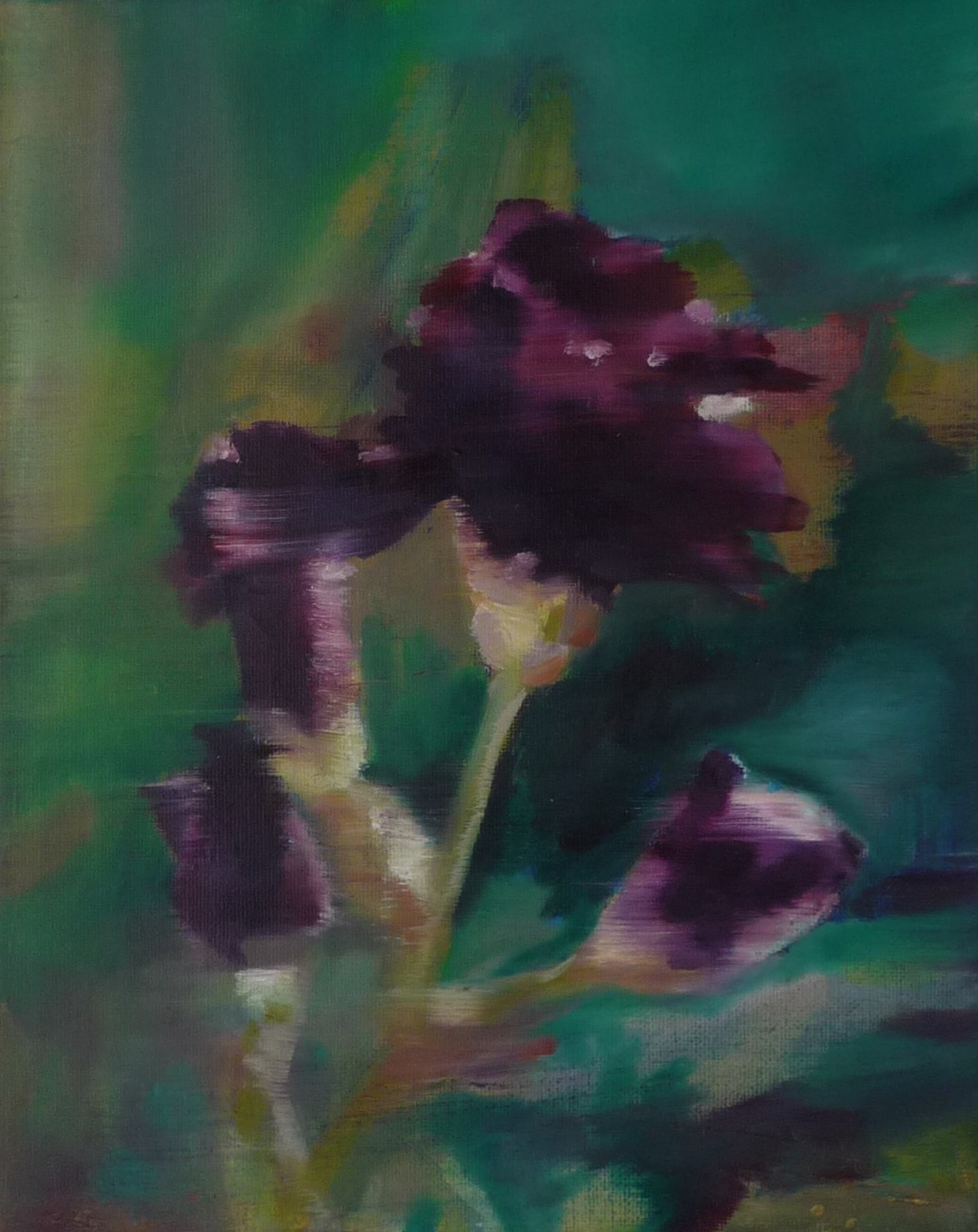 Deel van een Flora-serie. Canvas board op houten paneel geplakt. Verzonken gat aan de achterkant om aan op te hangen.