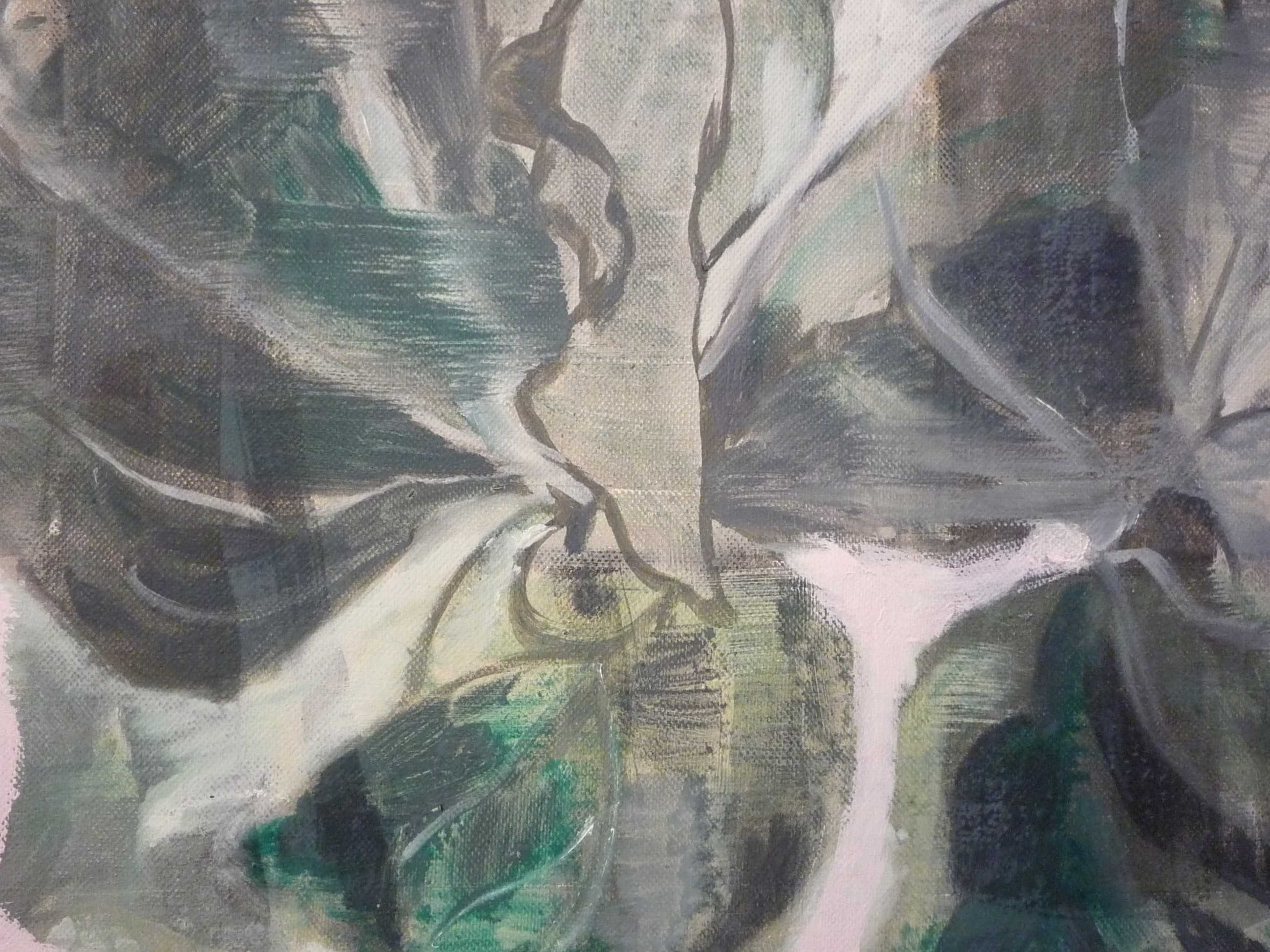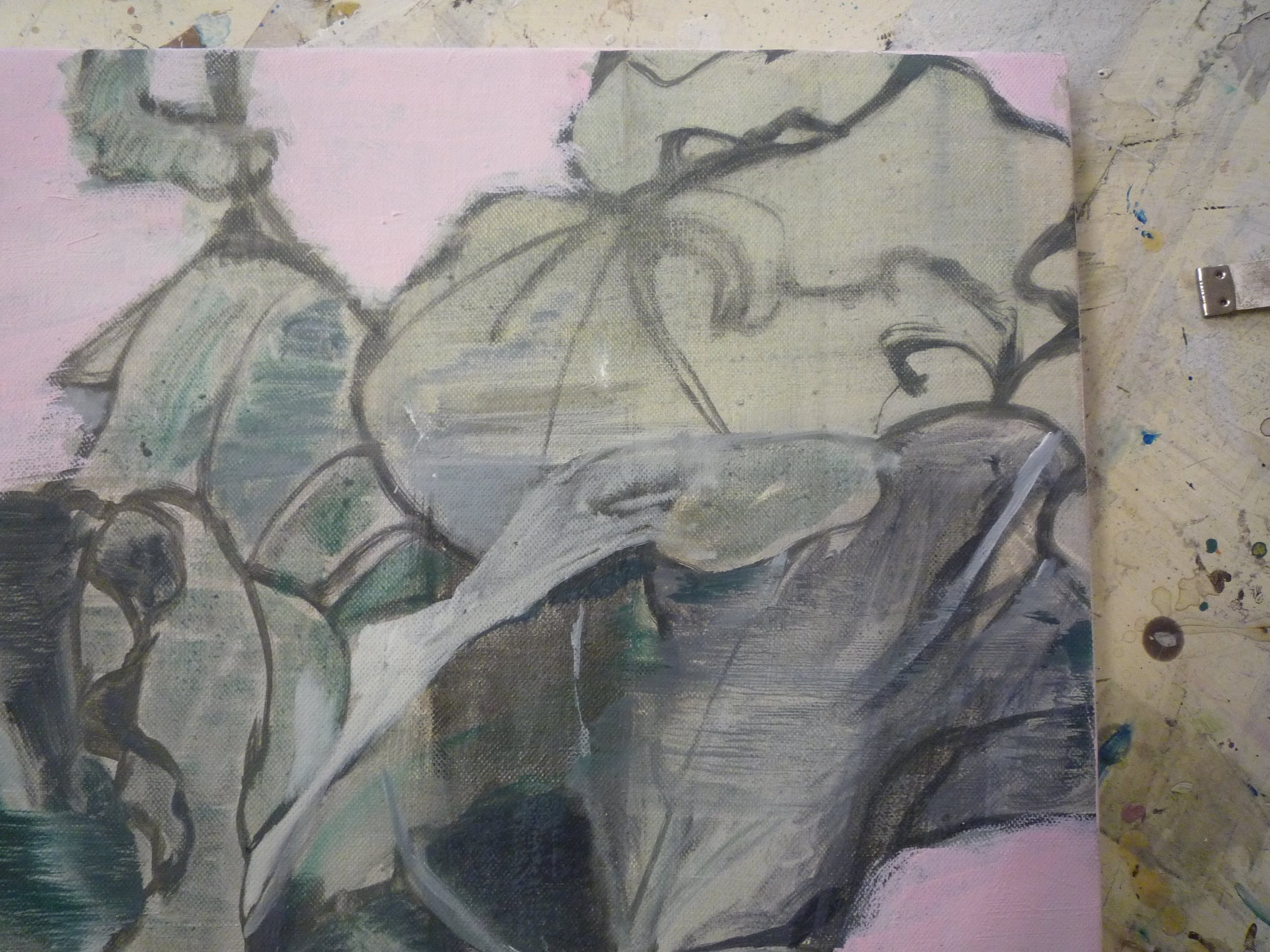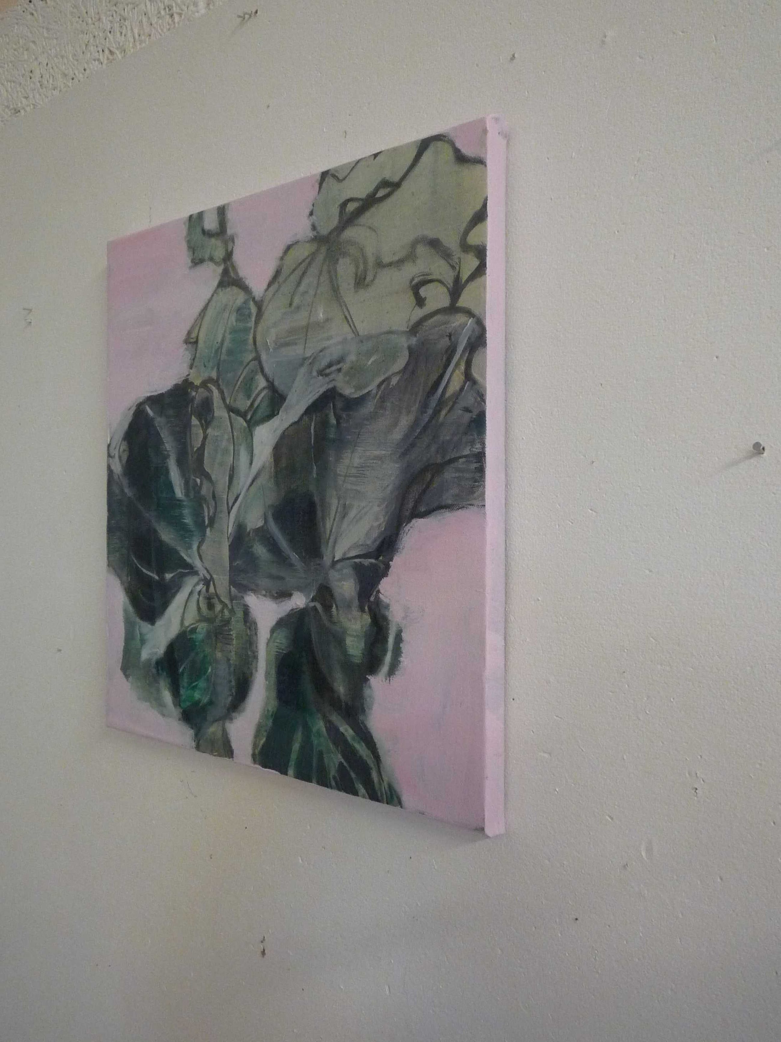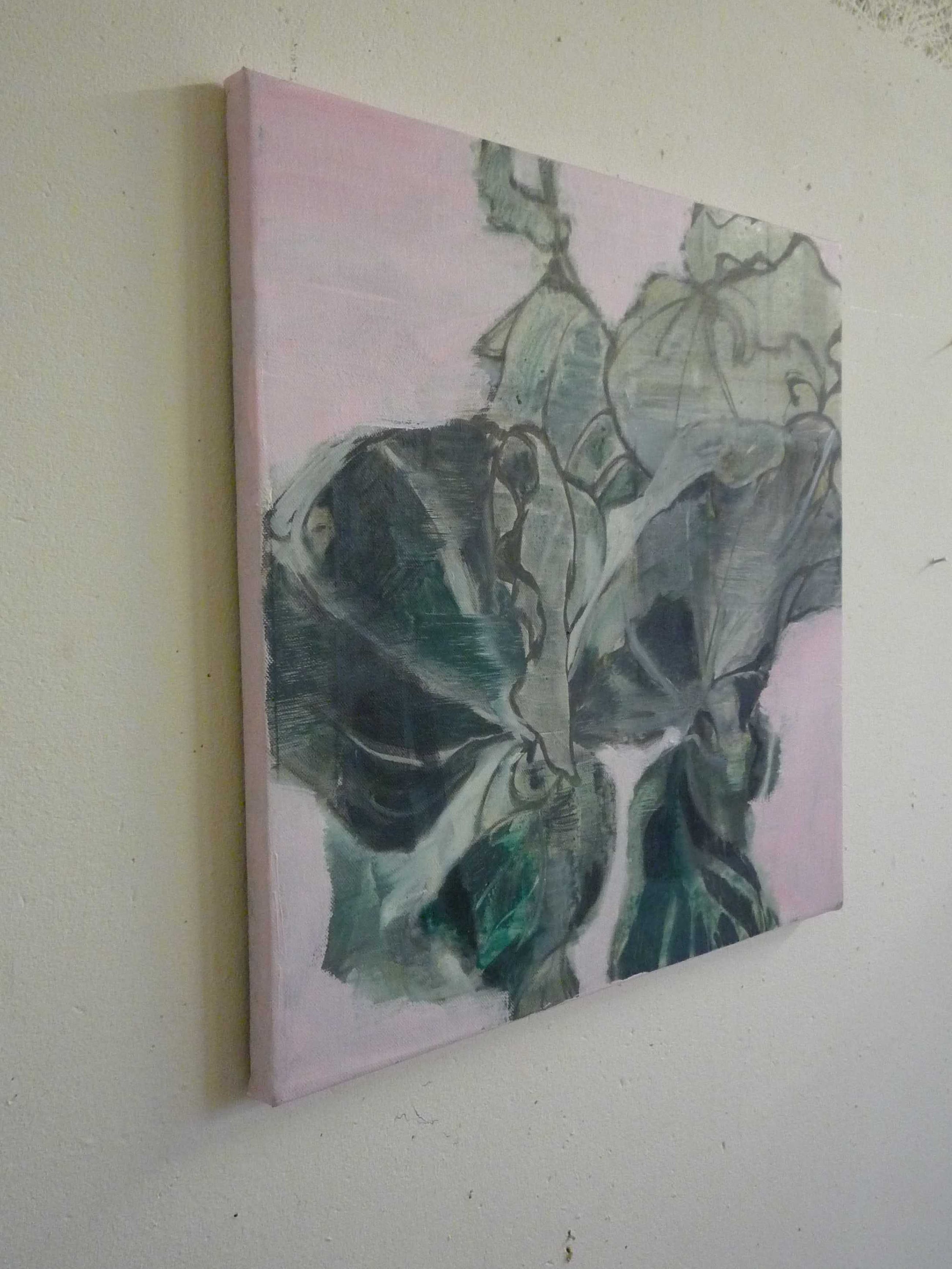Een studie in olieverf van een rabarberplant in een verwaarloosde moestuin in Groningen waar ik vorig jaar zomer artist in residence was.