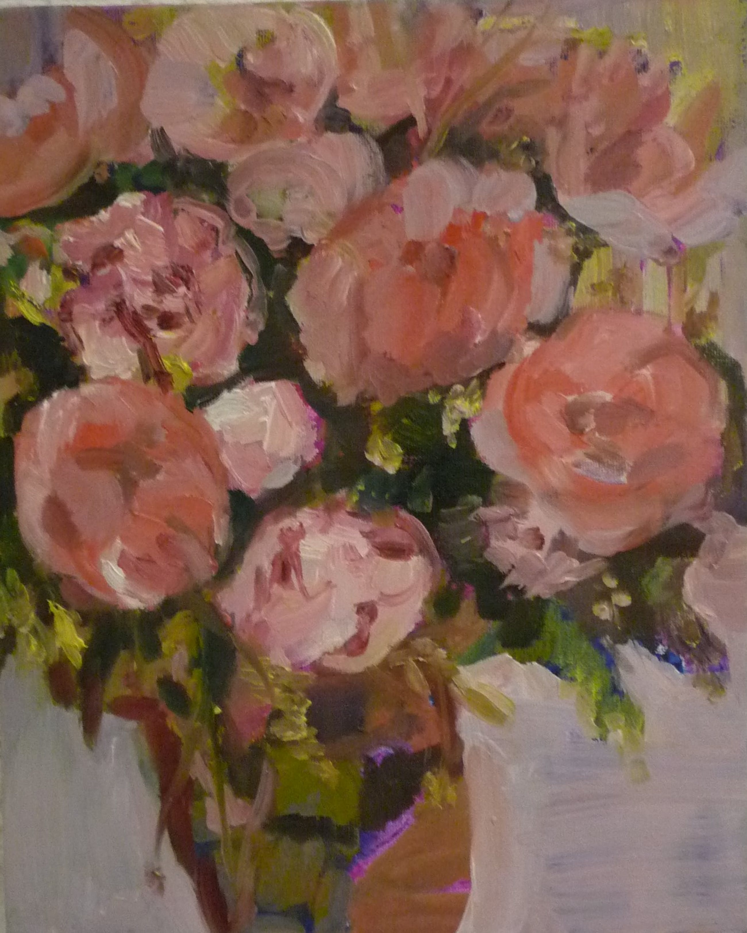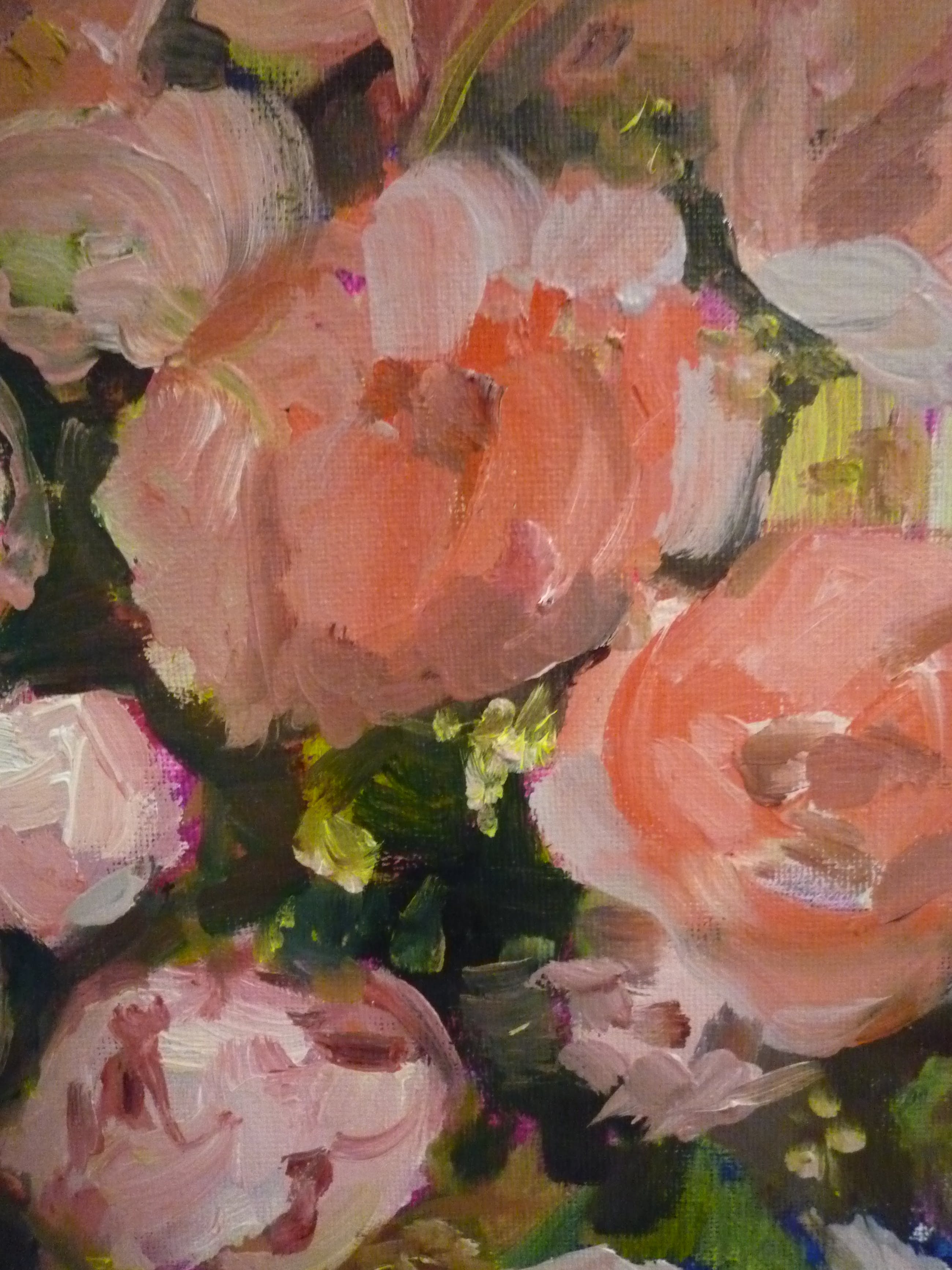 Dit werk is deel van mijn Flora-serie. Het is een canvasboard op multiplex paneel gemonteerd. Met een verzonken gat aan de achterkant om aan op te hangen zodat het mooi plat tegen de wand komt.