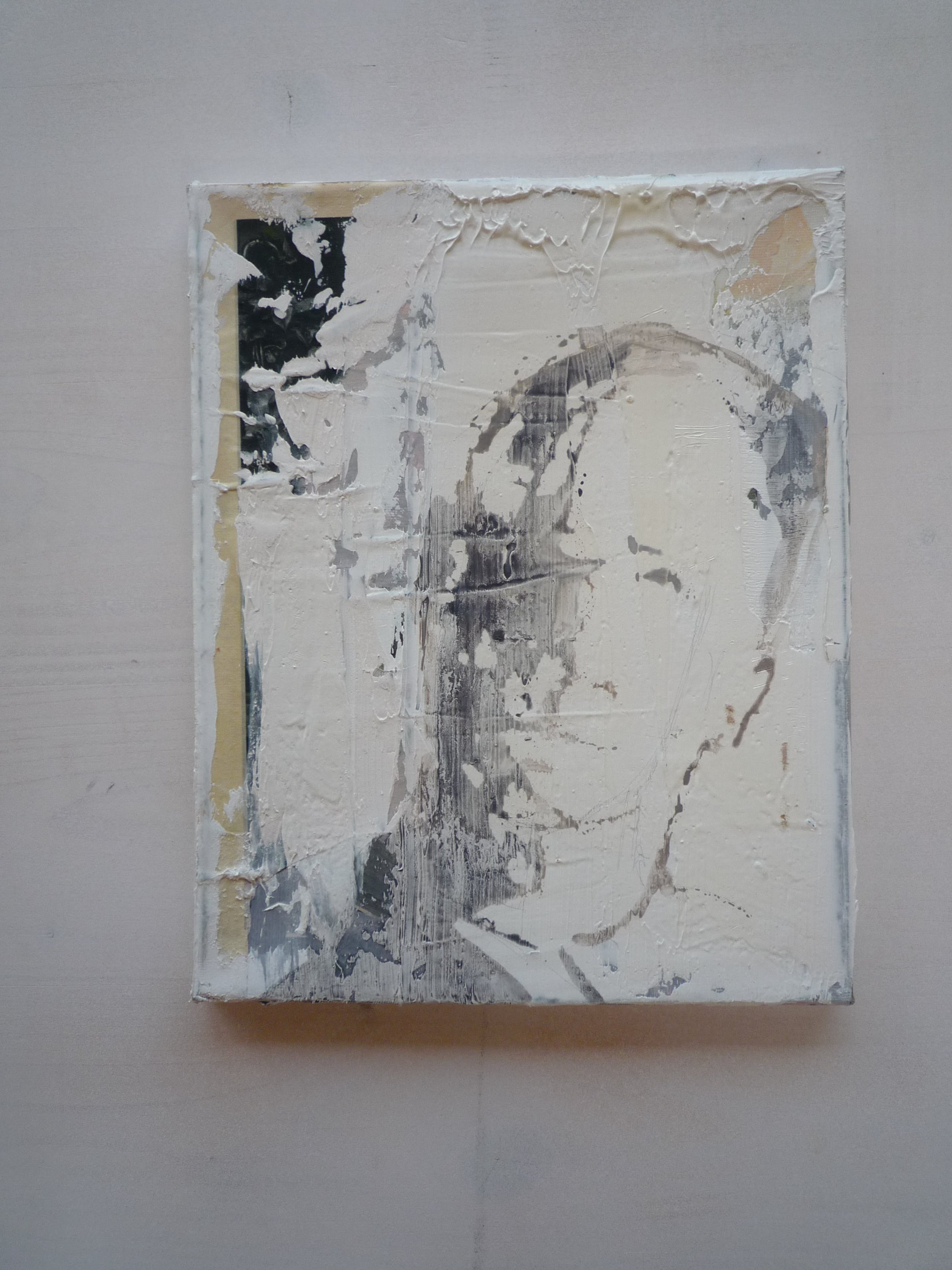 Kop/hoofd. Semi abstract. In olieverf, inkt en collage.
