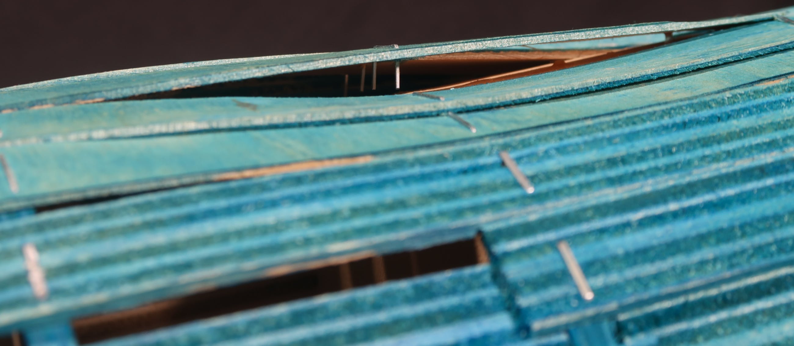 | Het object is in goede staat, maar heeft enkele beschadigingen. Enkele houten latjes zijn losgelaten, maar deze zijn door middel van een nietje weer te herstellen | |