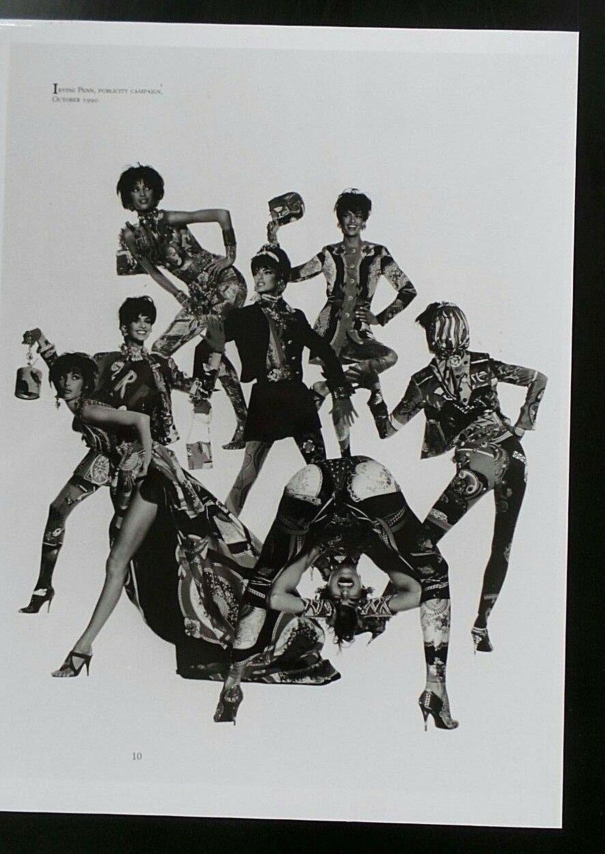 Wonderful press print of the important Versace Session, original taken in 1990, by Penn, handpulled for the Berlin Versace Show in 1994. Very good condition. In portrait the famous modells of the 90ies, showing Linda Evangelista in different poses.. Typical fresh and active shot for this decade from the lense of Irving Penn. Backside with the original Label and all dates. Size is 24 cm x 18 cm.