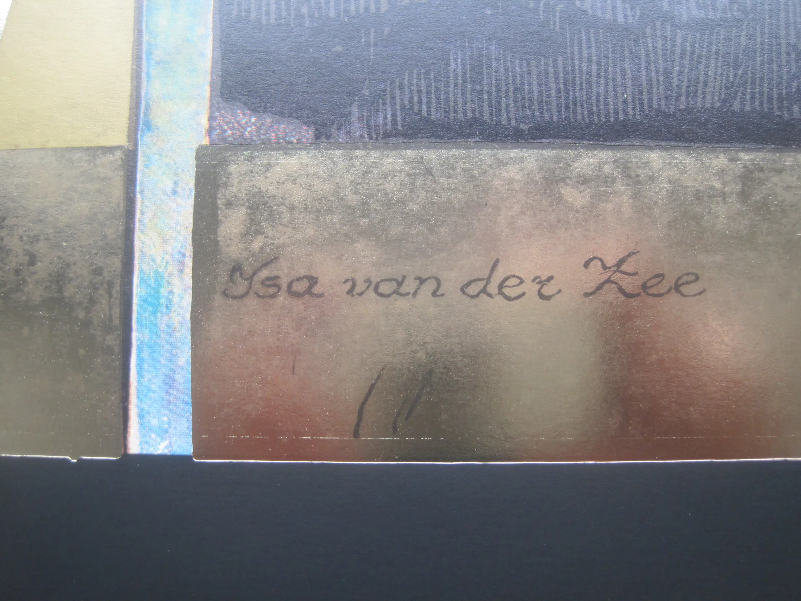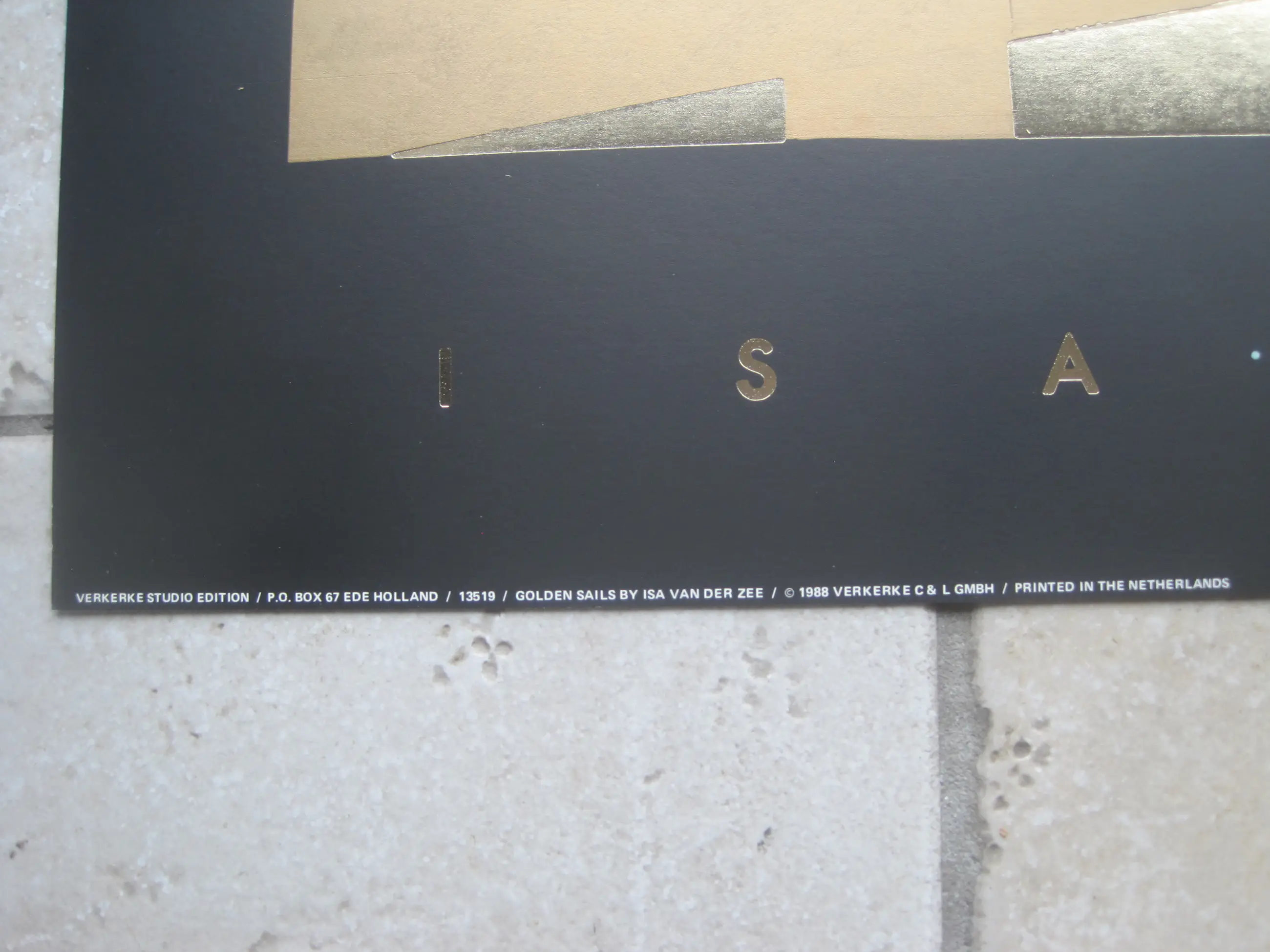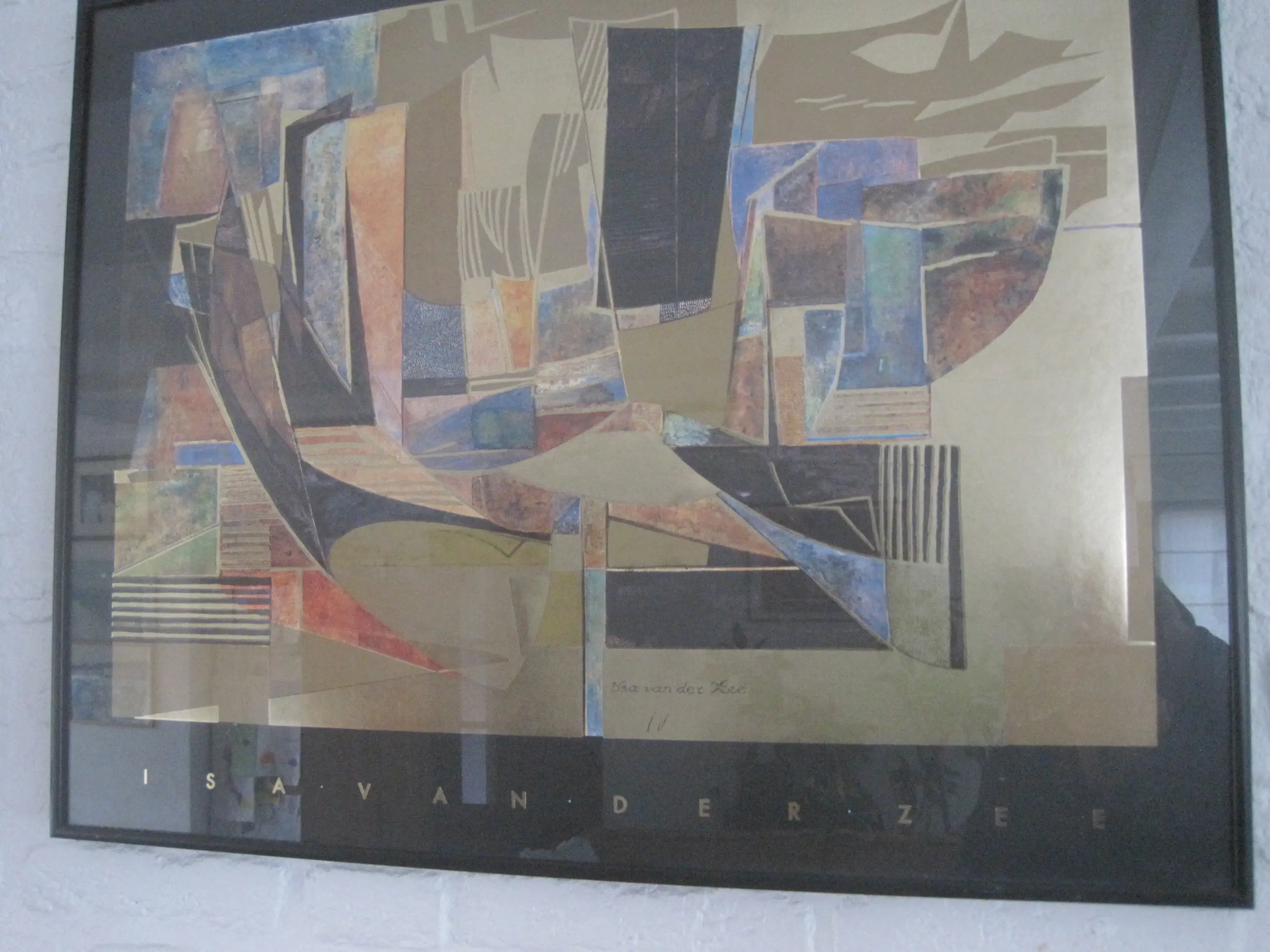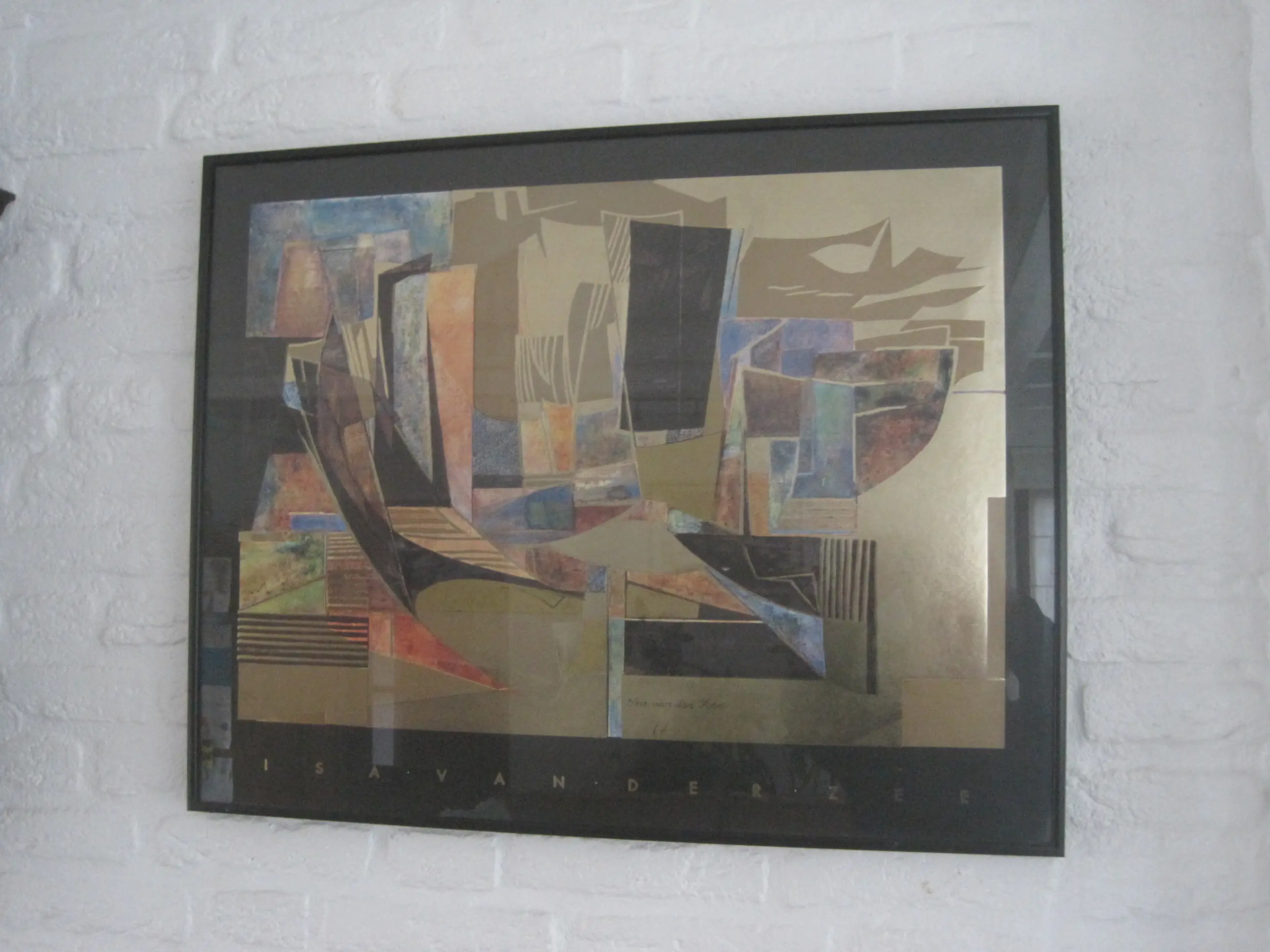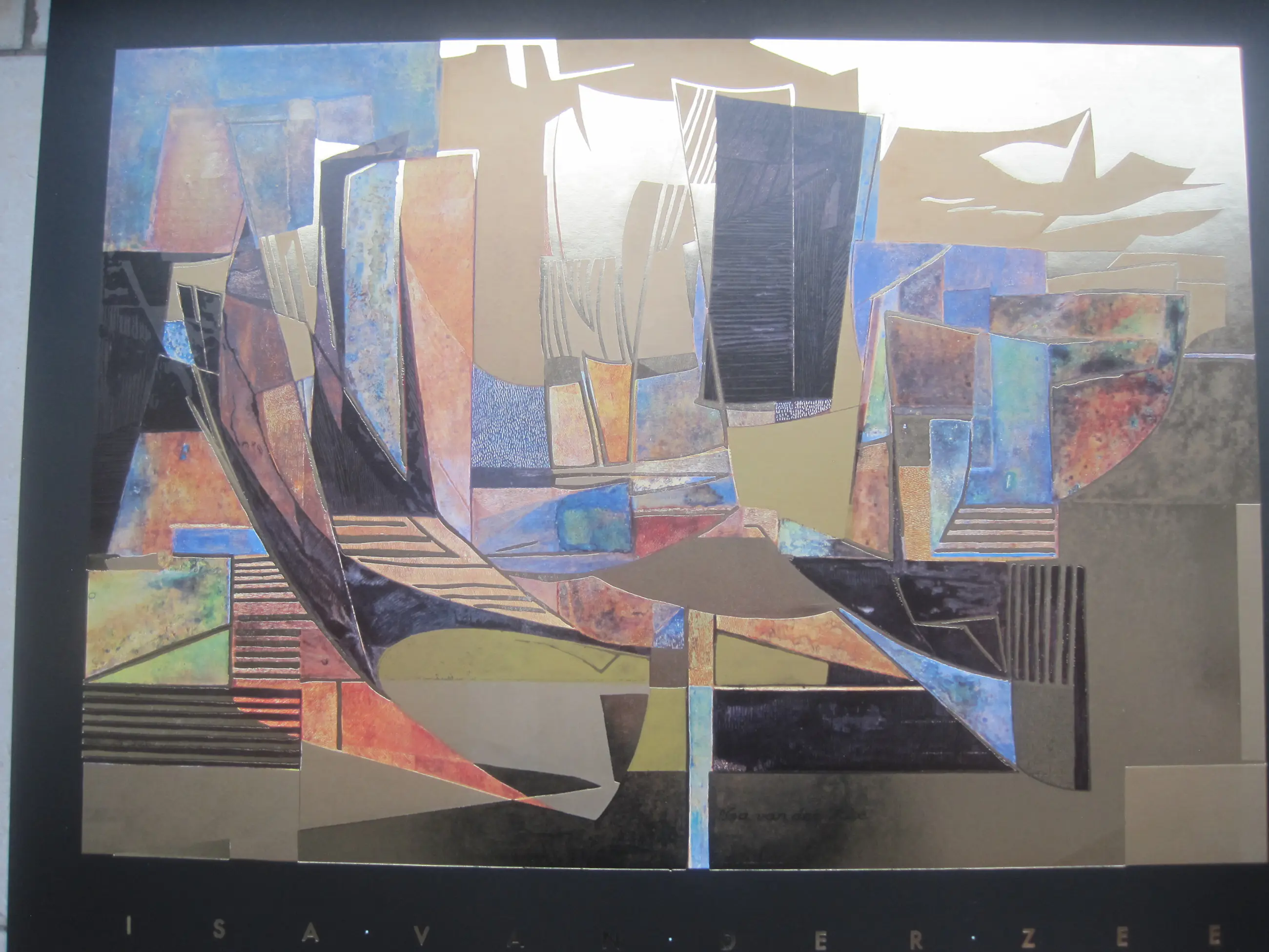 Gemetaliseerde kleuren offsetprint van het werk Golden Sails door Isa van der Zee. Deze fraaie voorstelling is ingelijst.