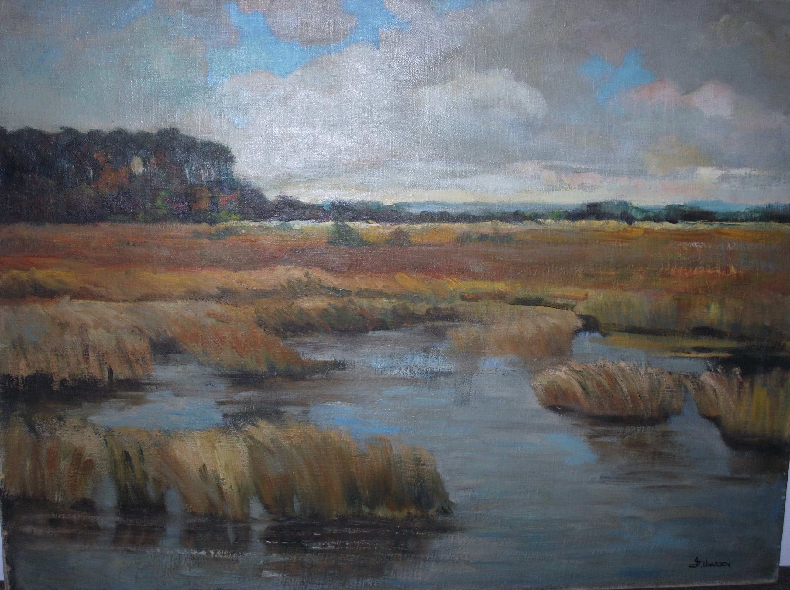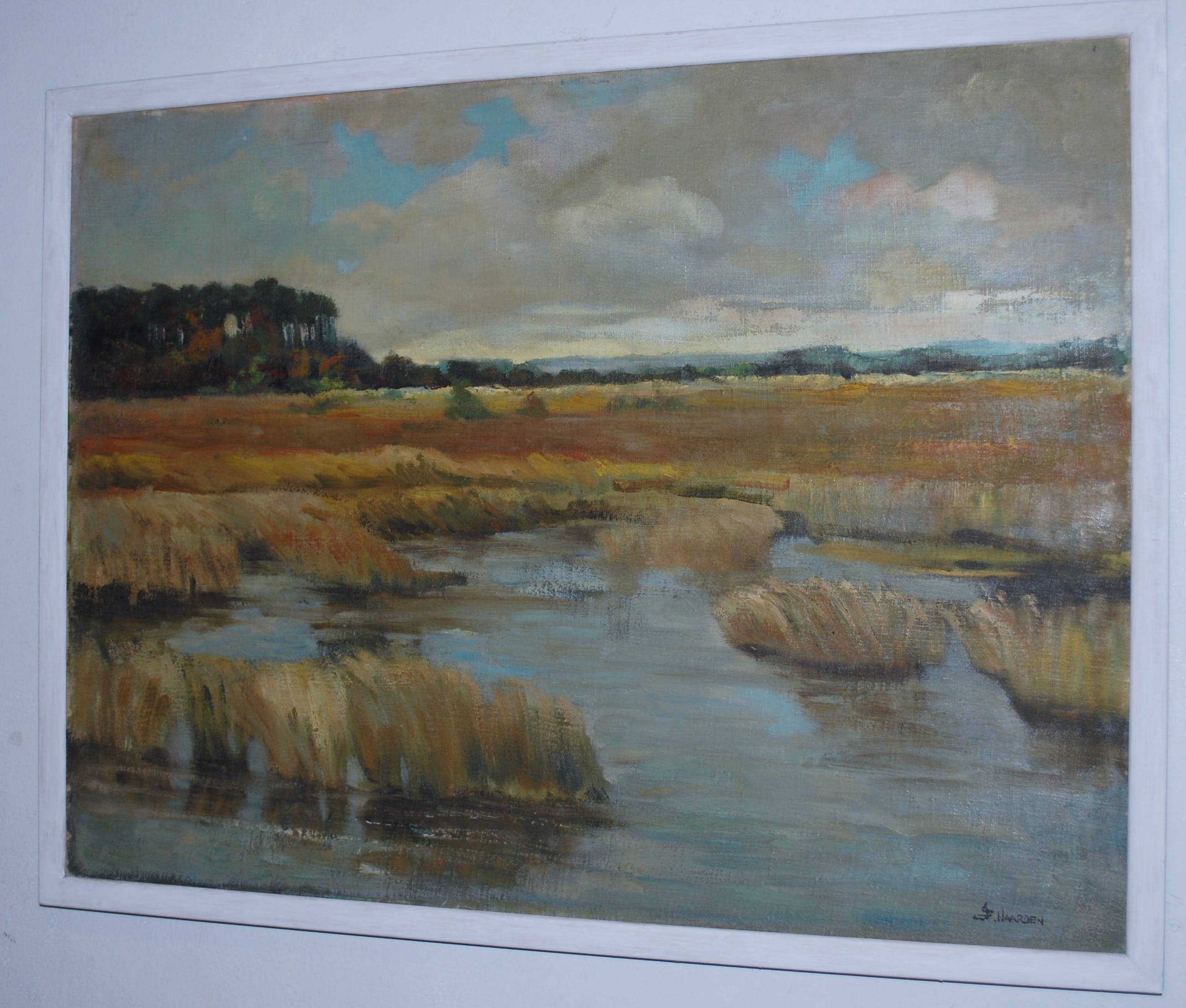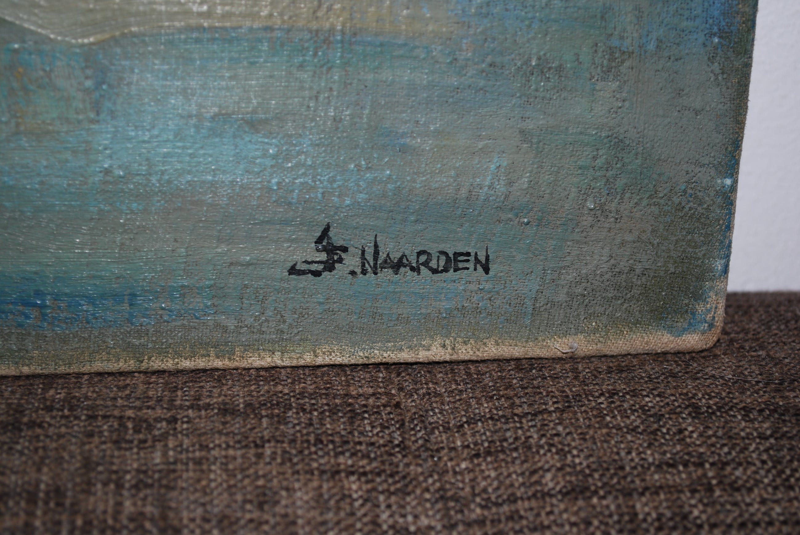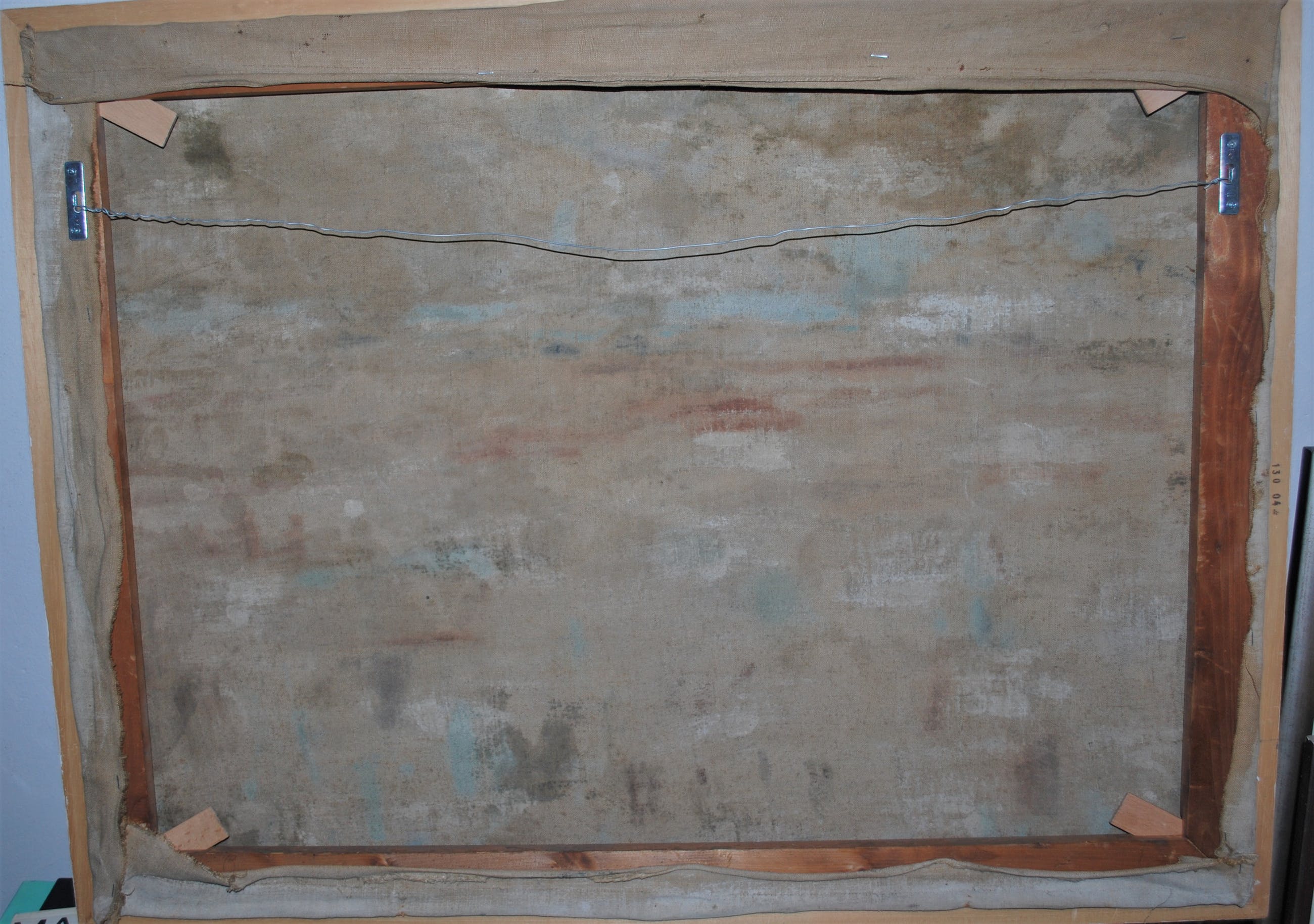 In goede gebruikte staat. Het doek is op sommige plaatsen wat onregelmatig/dun. Kan misschien een schoonmaakbeurt gebruiken.