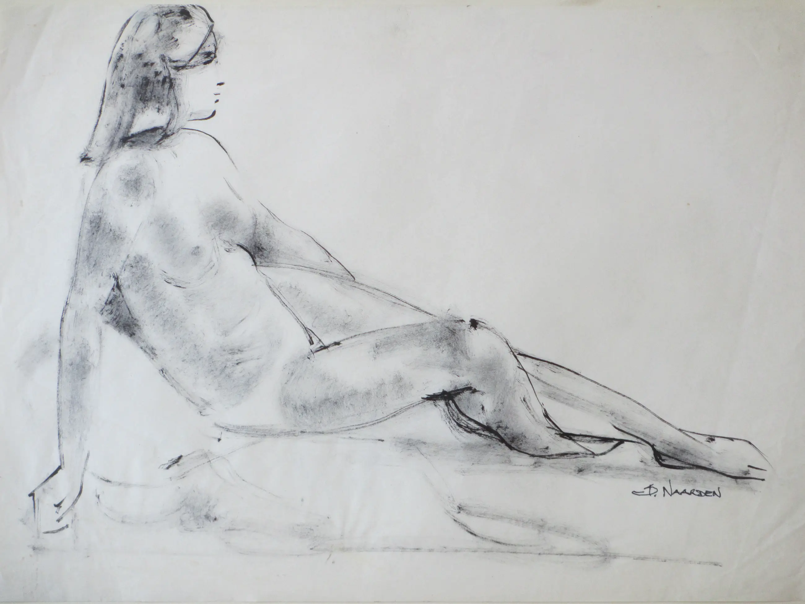 Inkttekening door Isaac Naarden Voorstelling van een zittend naakt Losbladig, beeldmaat 28x37, bladmaat 30x42 Gesigneerd in inkt r.o.: 'Is Naarden' Authenticiteit volledig gegarandeerd