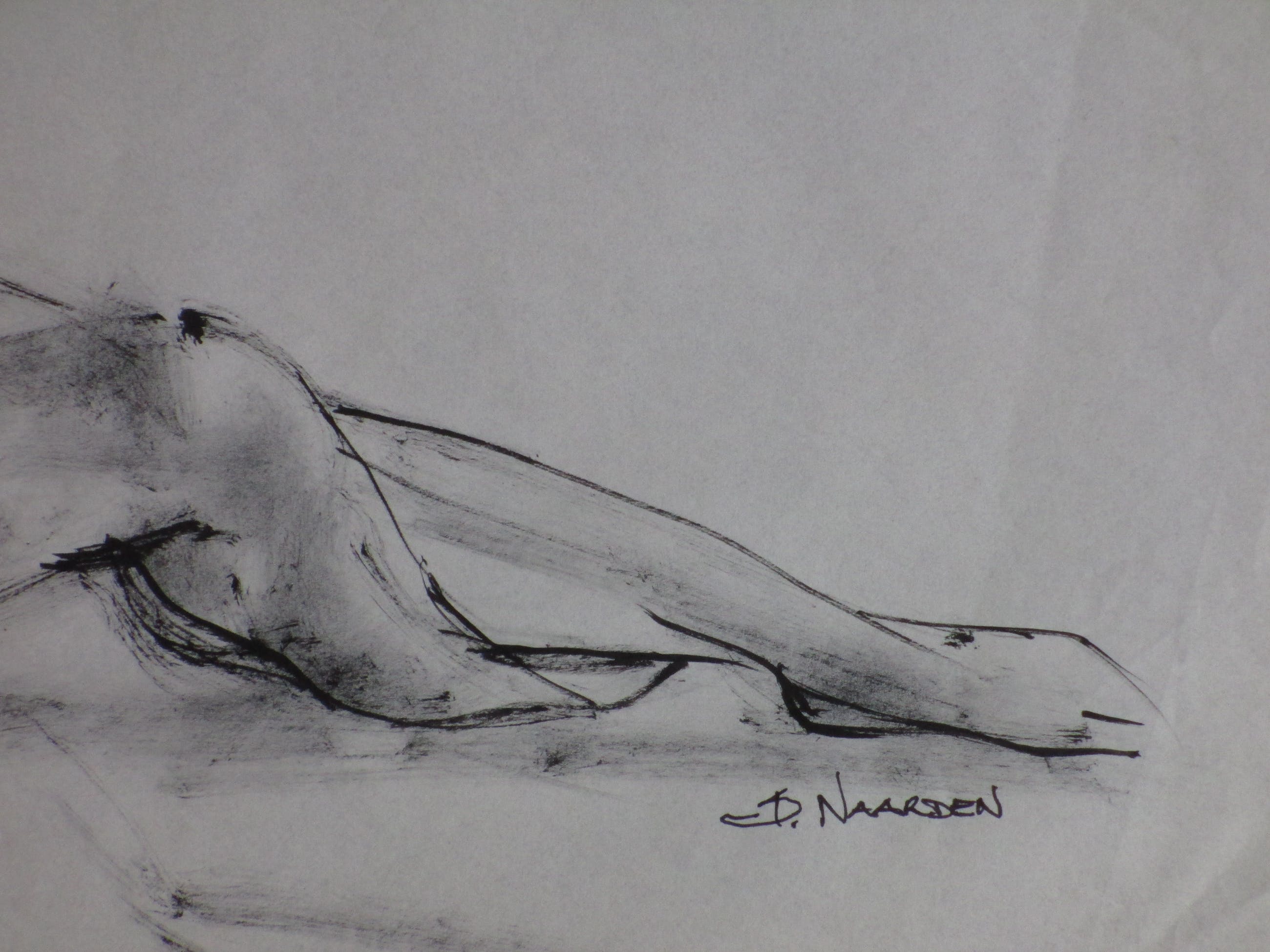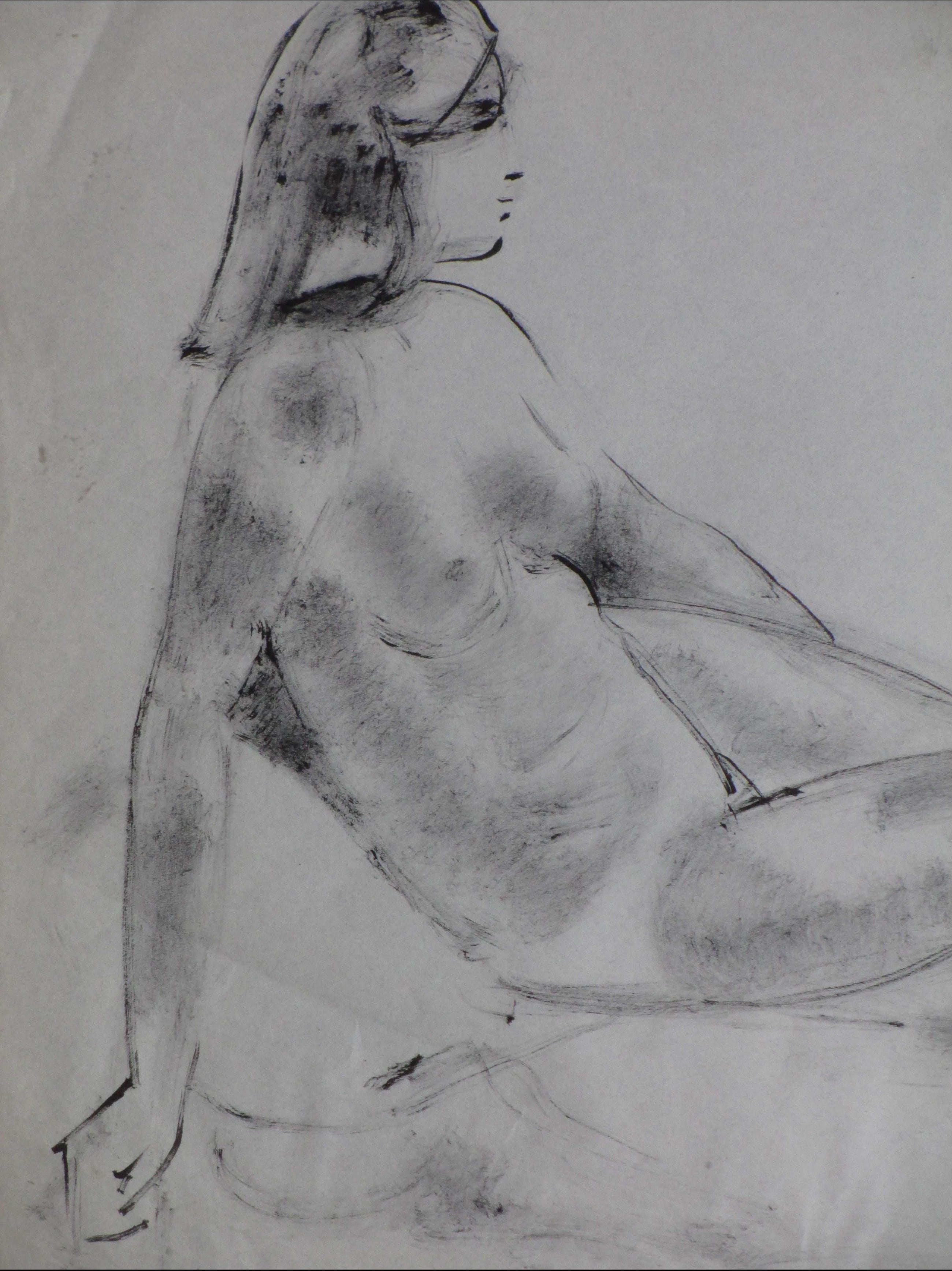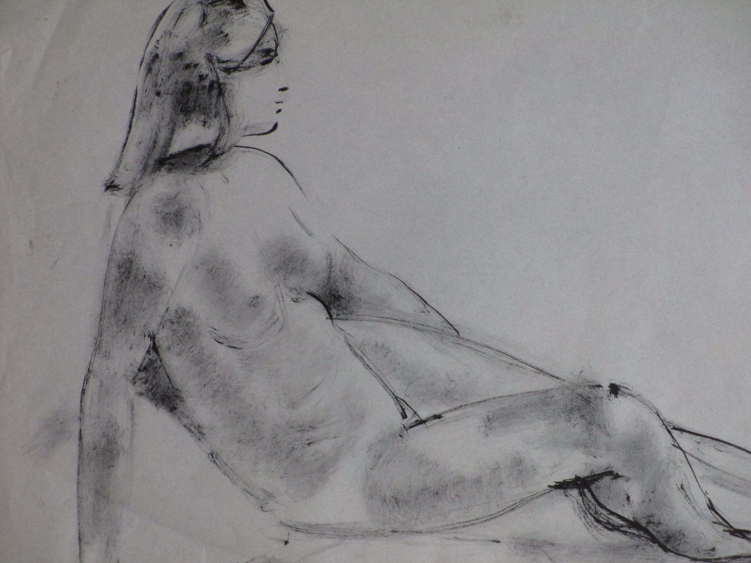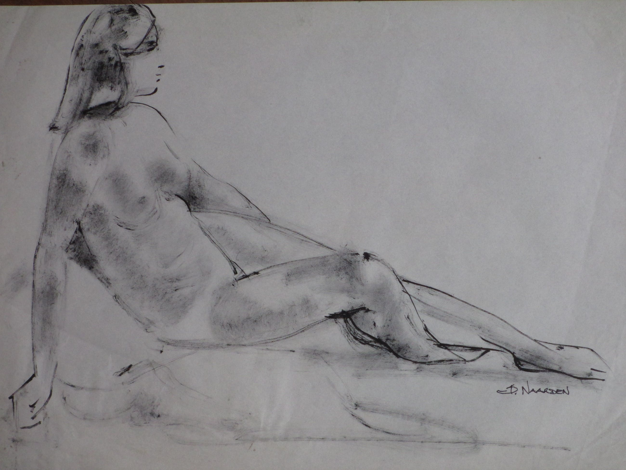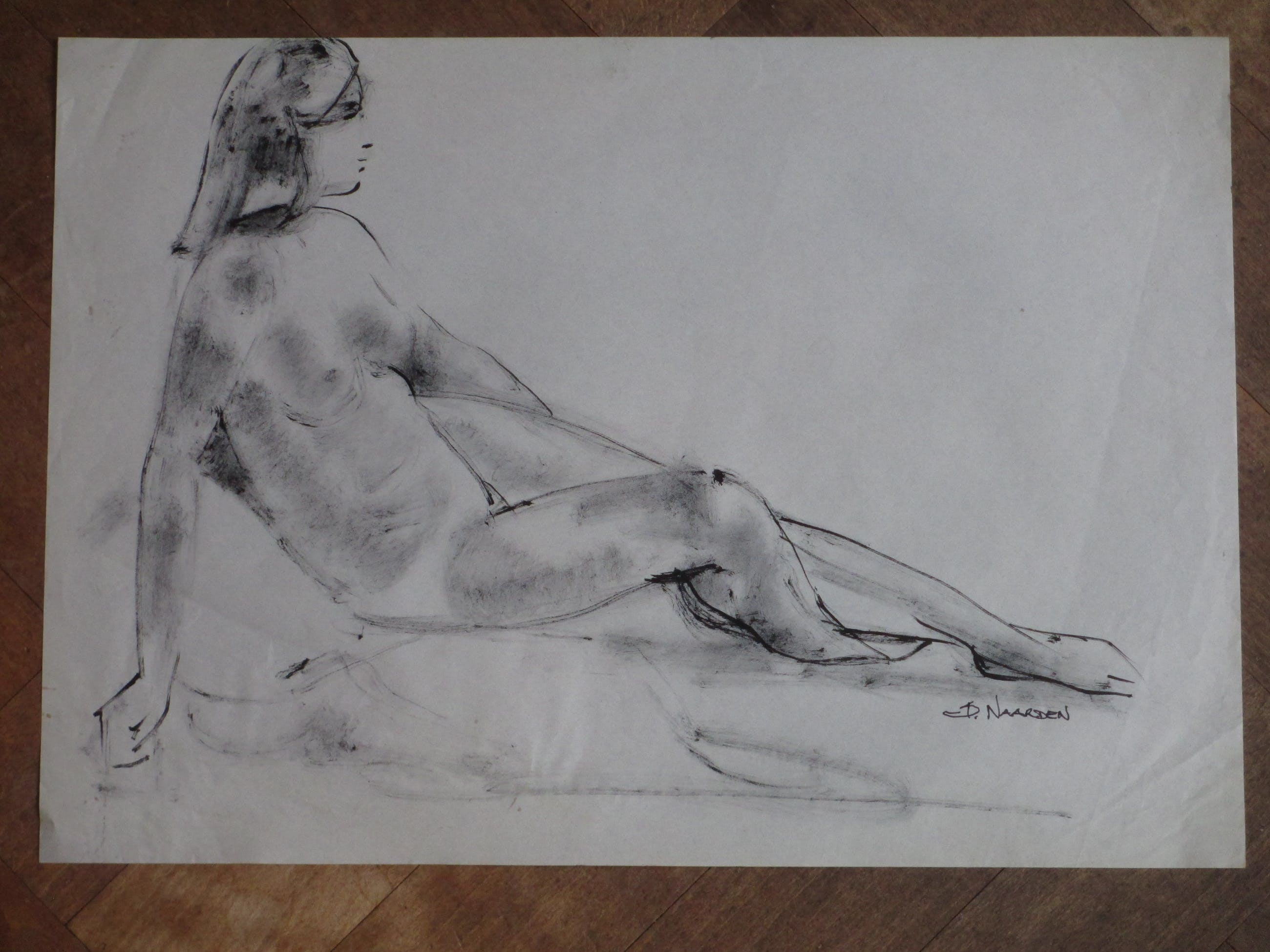 Potloodtekening door Isaac Naarden. Voorstelling van een zittend vrouwelijk naakt. Losbladig, beeldmaat 28x36, bladmaat 30x42 Gesigneerd in inkt rechtsonder: 'IS Naarden' Authenticiteit volledig gegarandeerd
