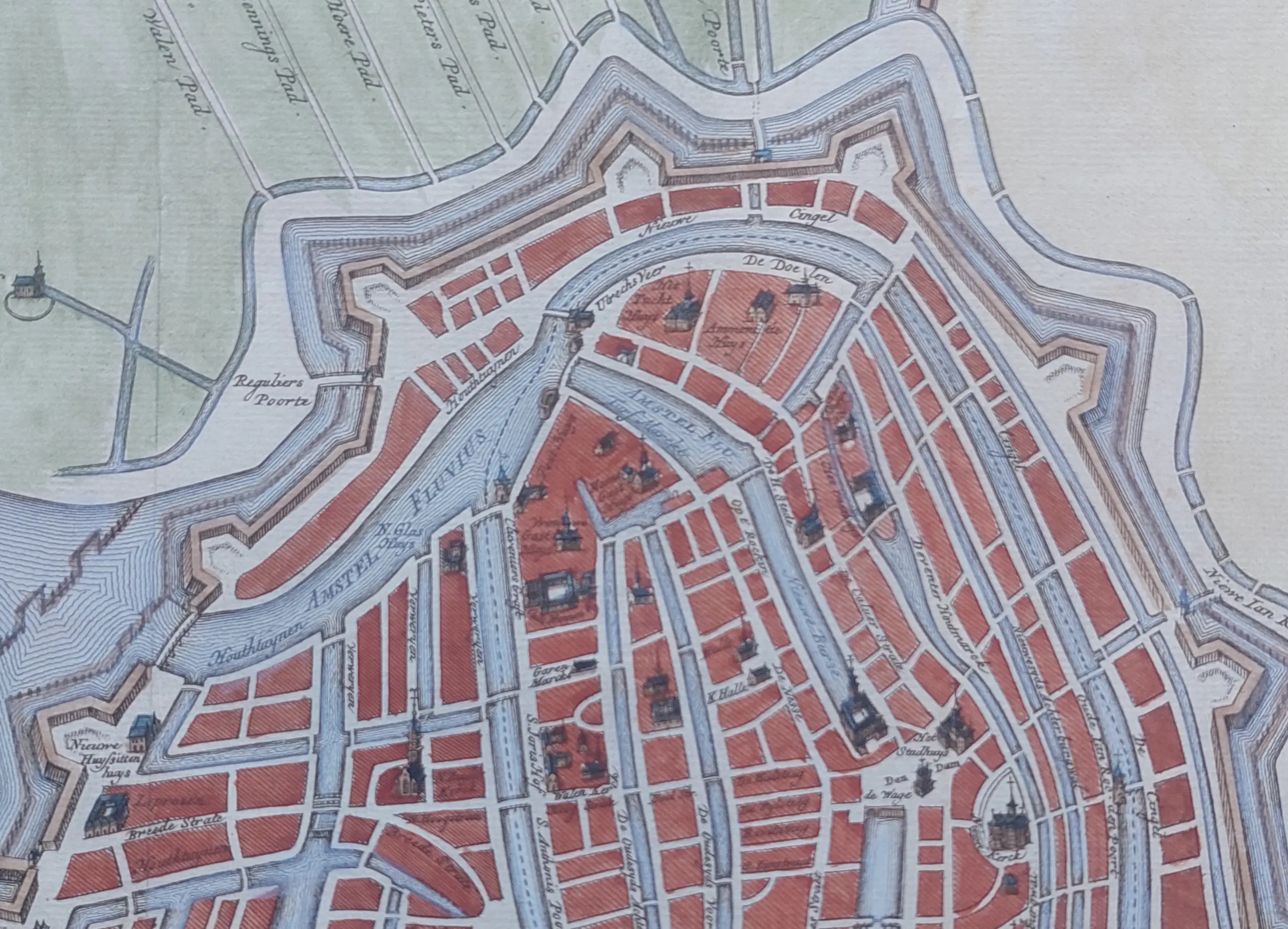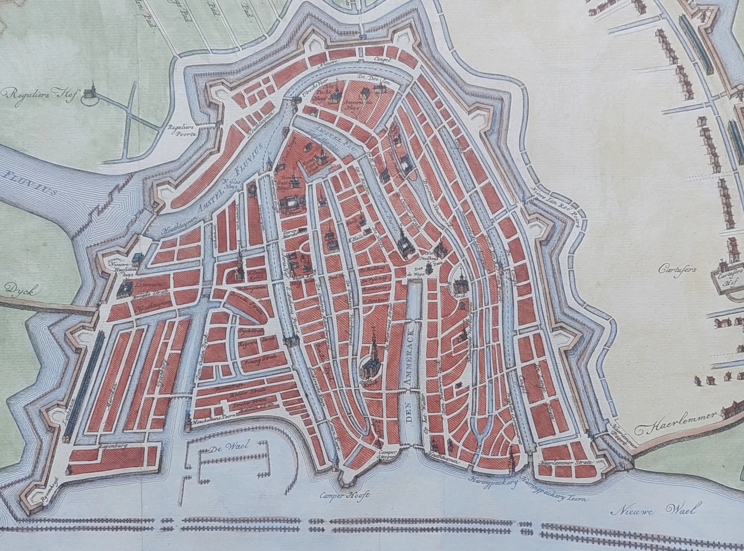 Prachtige plattegrond van Amsterdam in 1593 met vergroting van 1611.