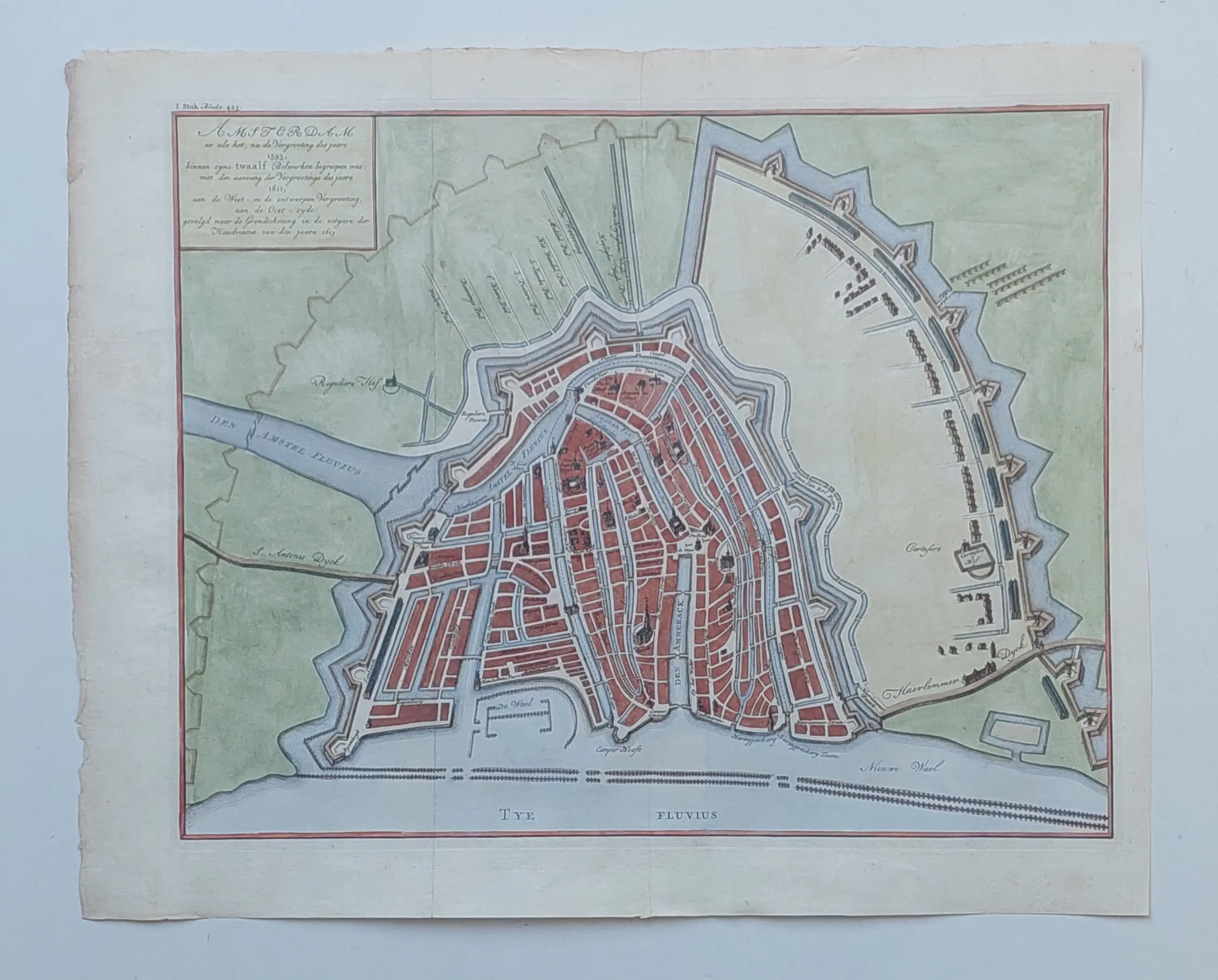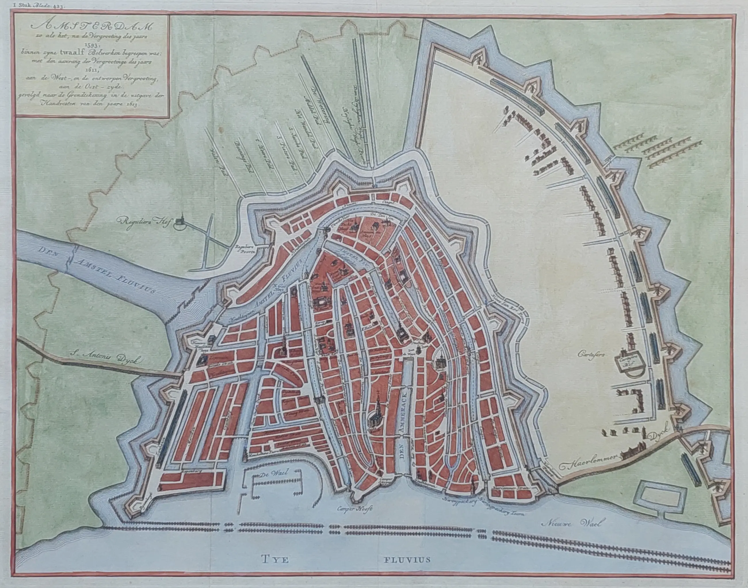 Isaac Tirion - Amsterdam zo als het na de vergrooting des jaars 1593..- Oude Kaart 1760