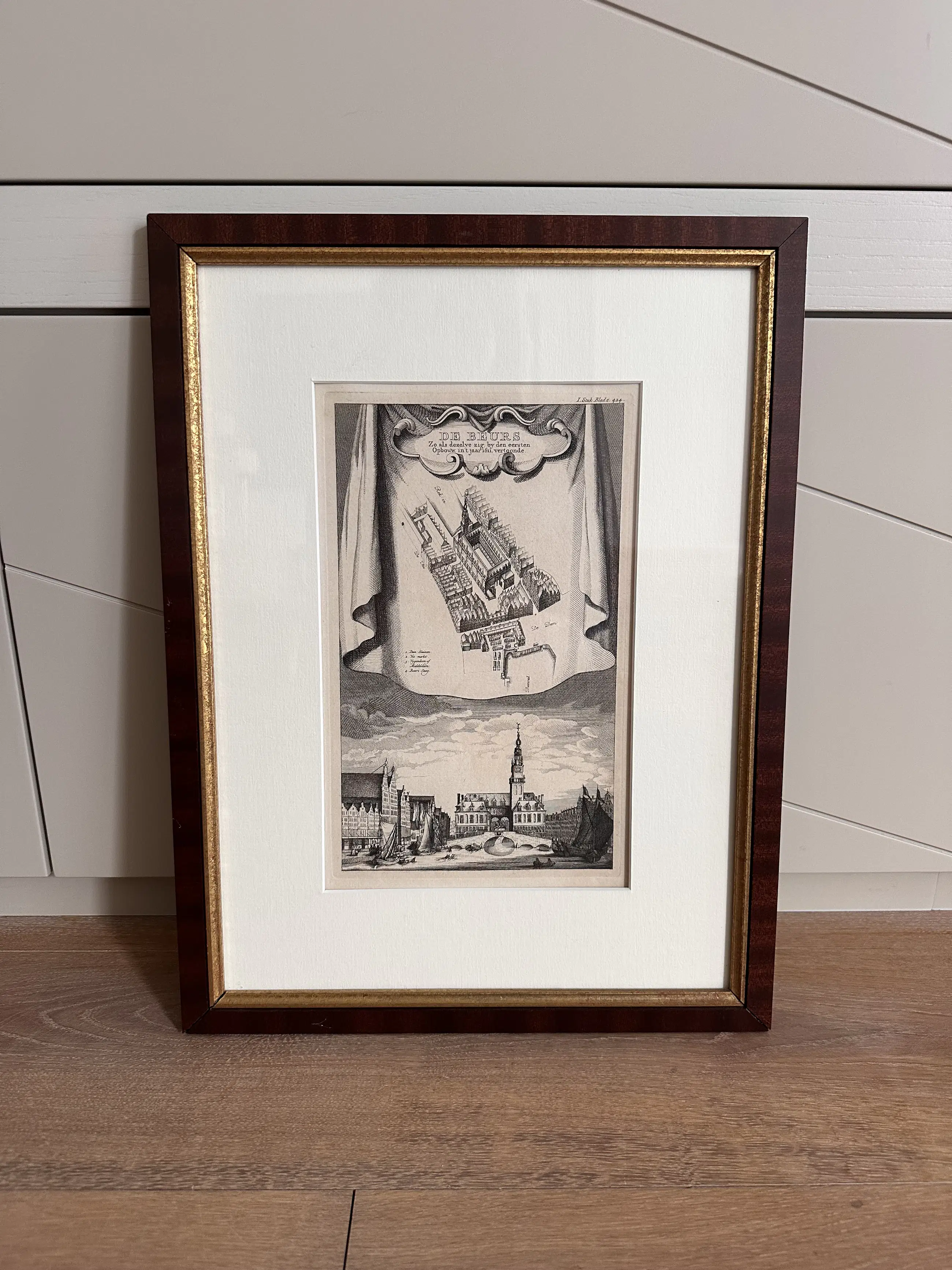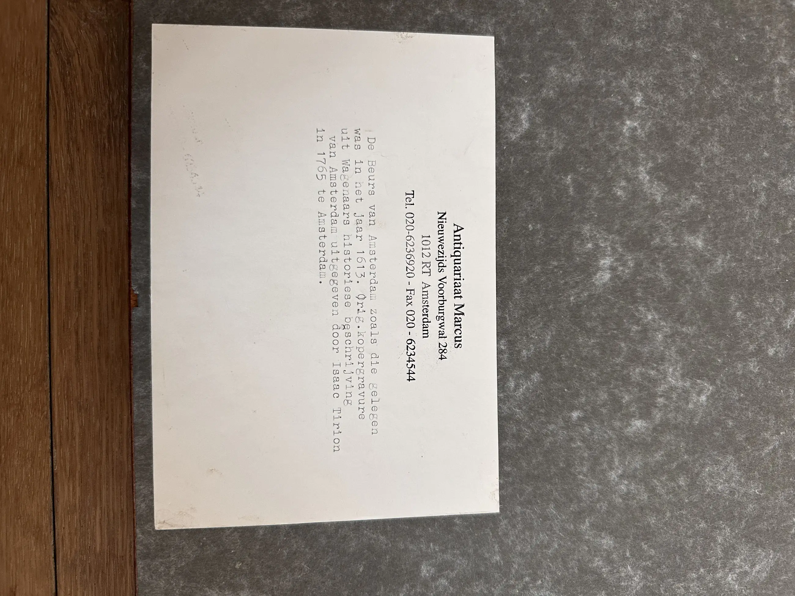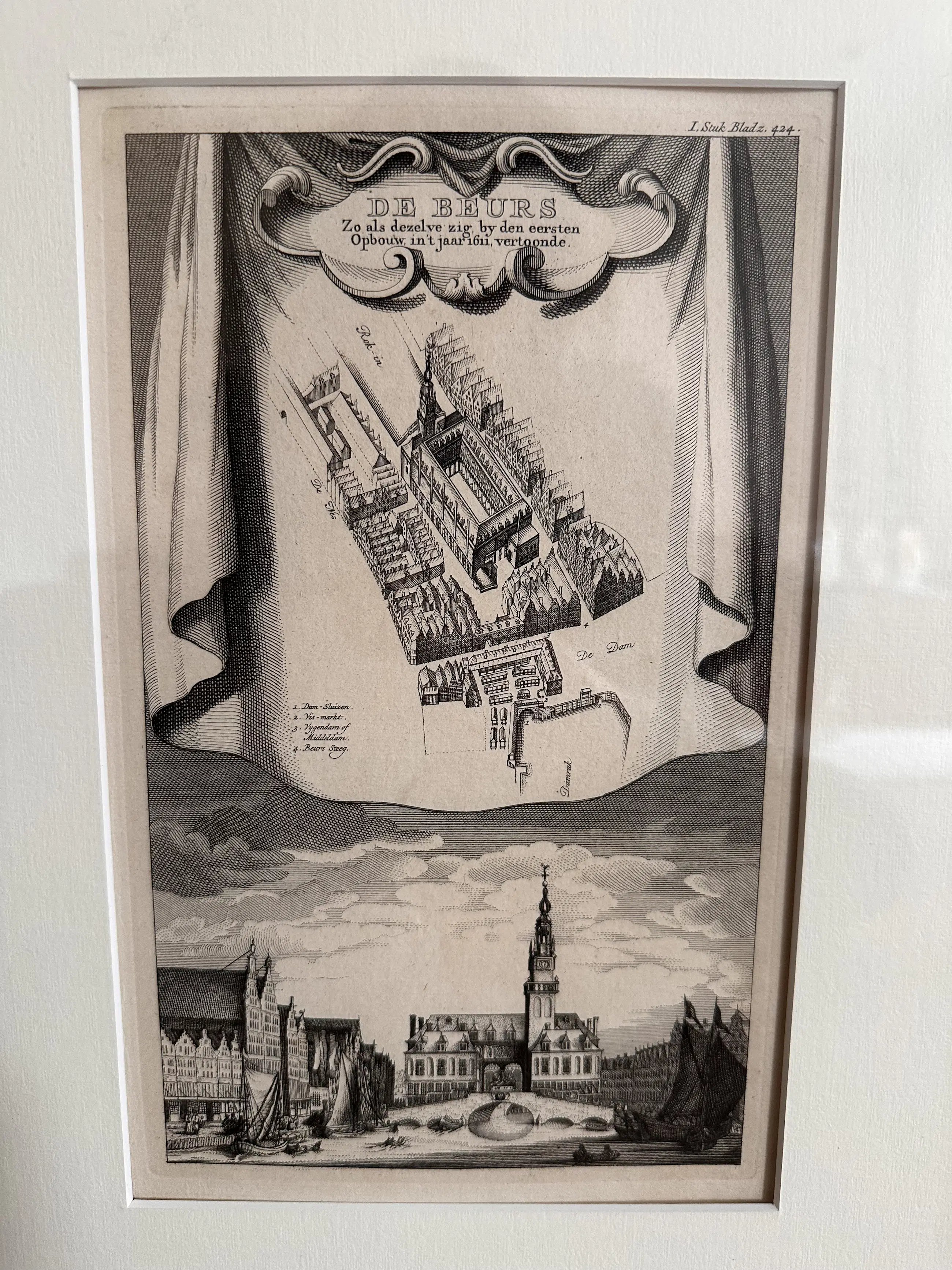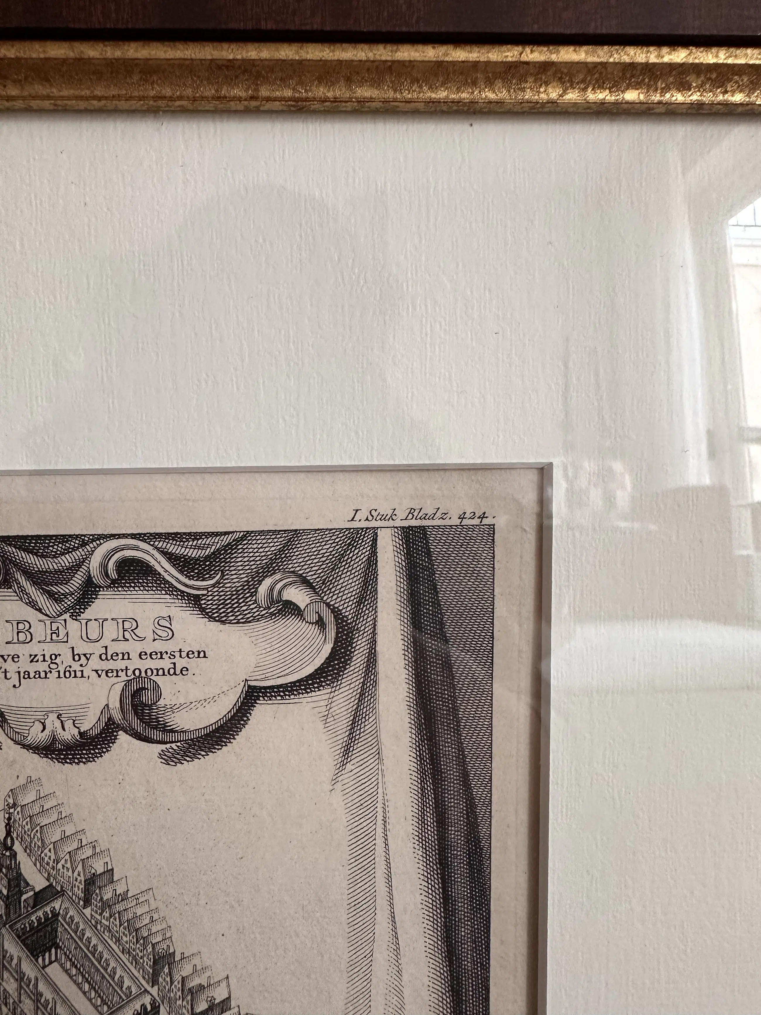 De beurs van Amsterdam zoals die gelegen was in het jaar 1613. Orig. kopersgravure uit Wagenaars historiese beschrijving van Amsterdam uitgegeven door Isaac Tirion in 1765 te Amsterdam.