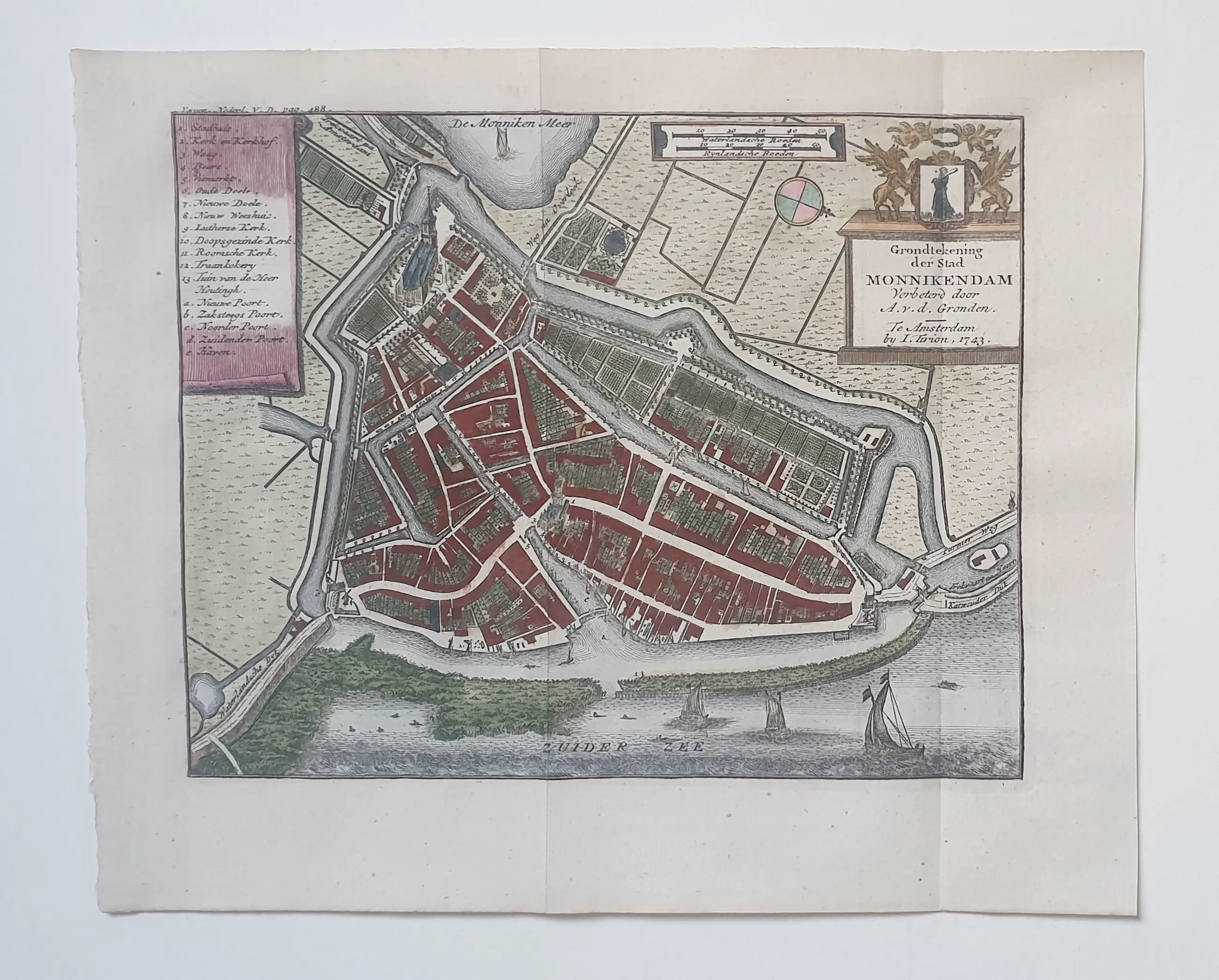 Isaac Tirion - Grondtekening der Stad Monnikendam Oude Gravure Tirion 1743