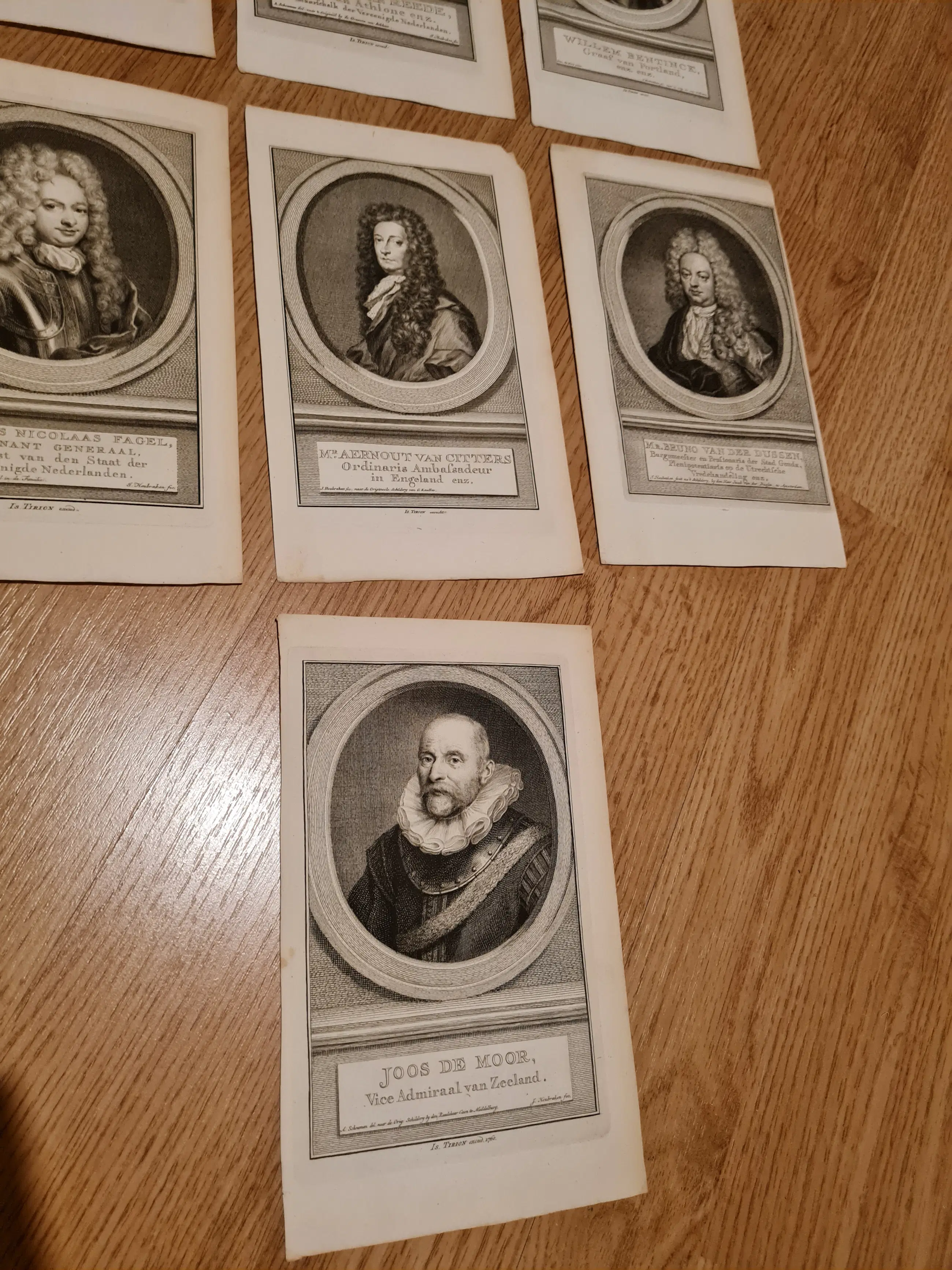 Isaac Tirion - Lot van 7 portretten, Originele kopergravures ca. 1760, o.a. De Moor
