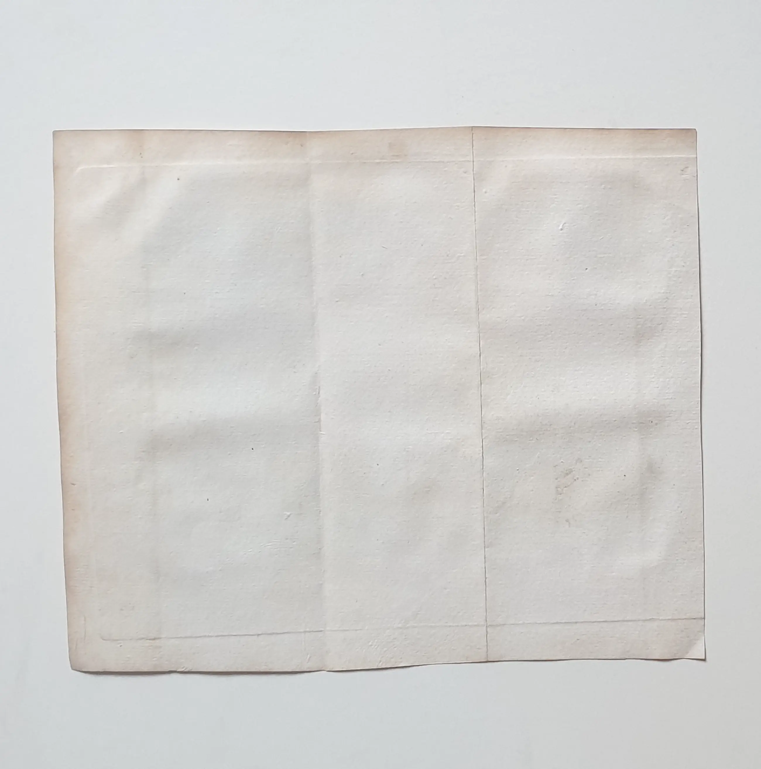 Conditie: uitstekend. Ruime marges. Met vouwen als uitgegeven. Verso: blank. Mooi handgekleurd.