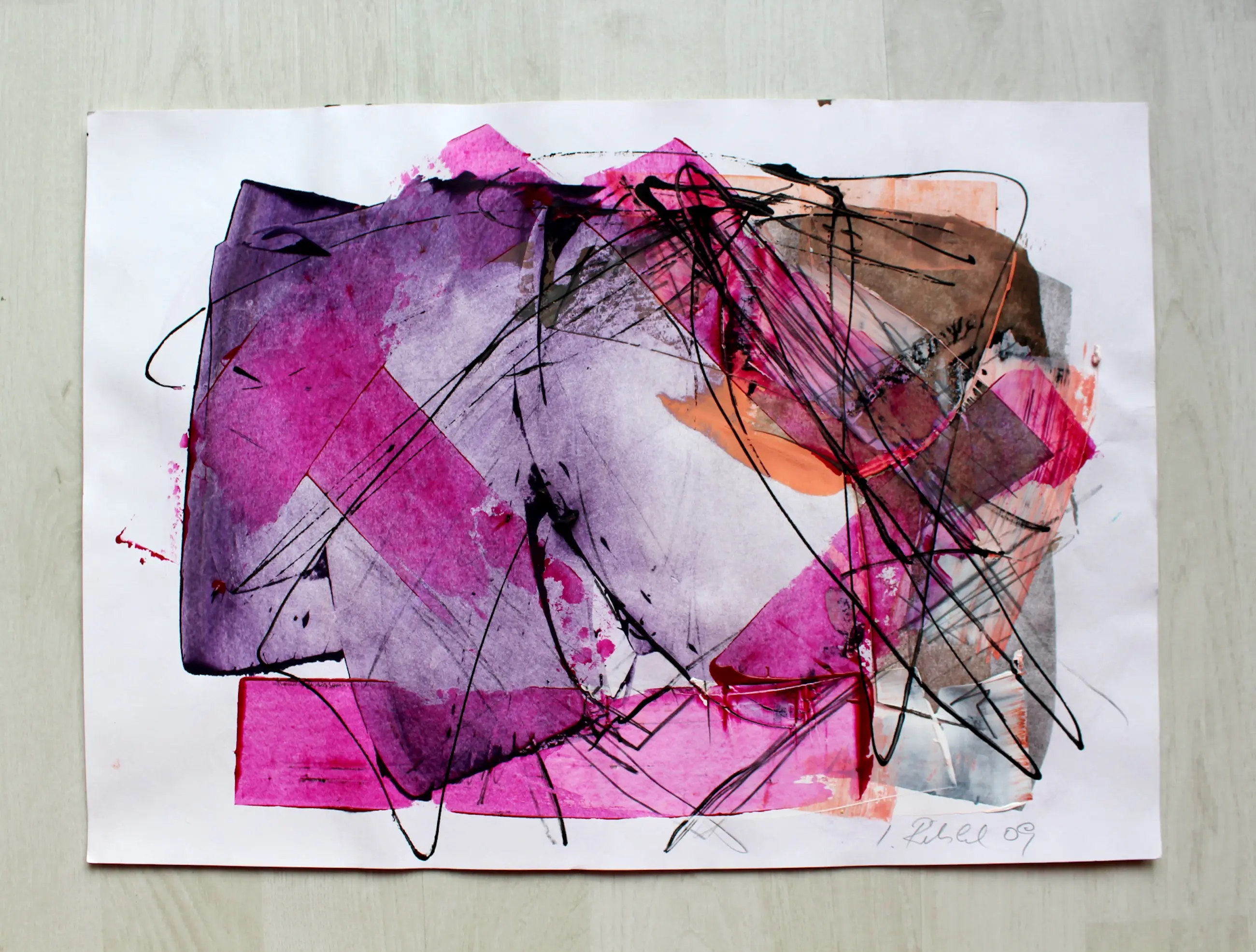 Origineel schilderij van de Oostenrijkse schilderes Isabella Ritschl (*1942). Uniek item uit 2009. Gemengde technieken op papier. Origineel, handgesigneerd en gedateerd door de kunstenaar in de rechterbenedenhoek. In zeer goede staat. Roken is niet toegestaan in dit huishouden!