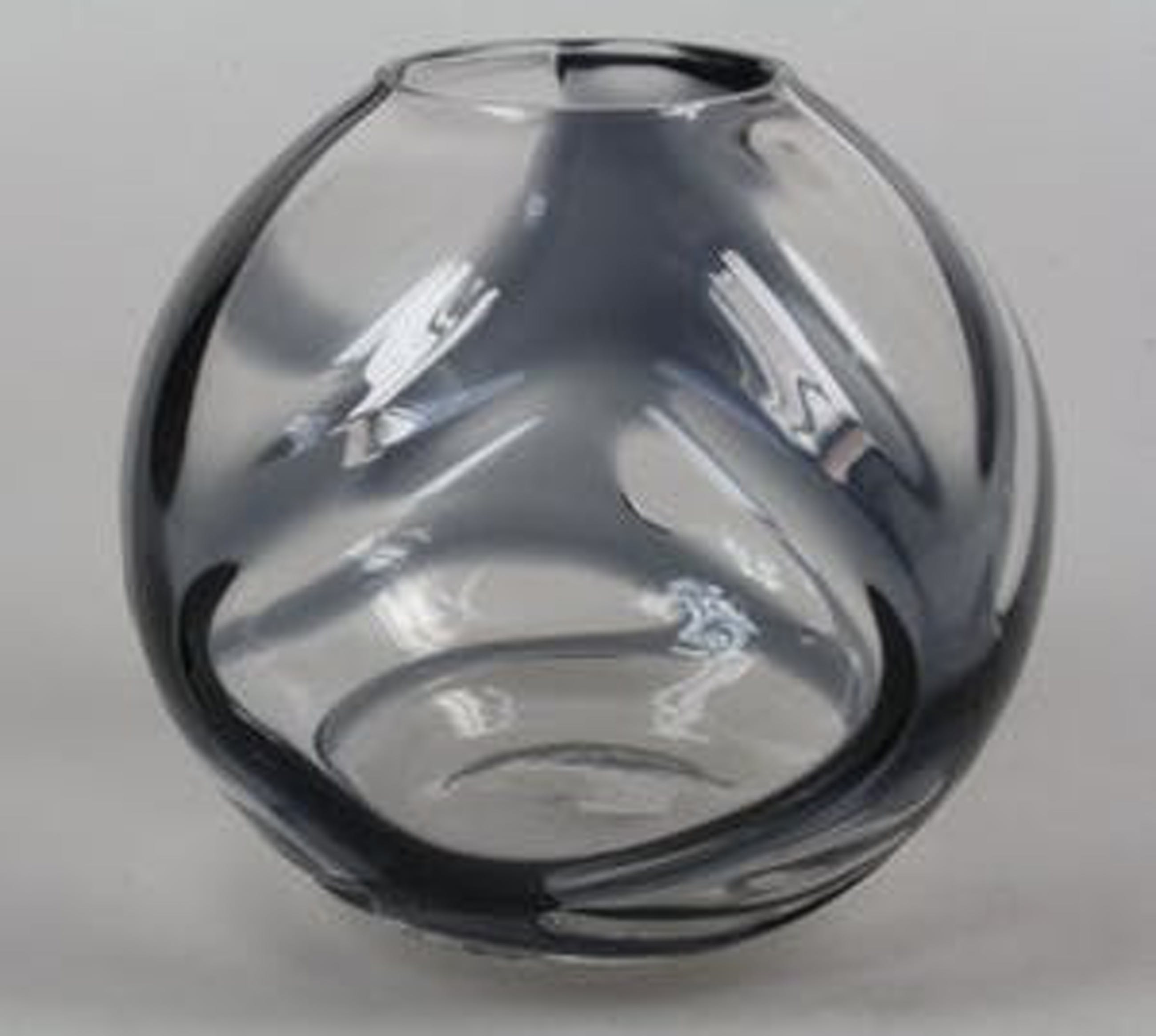 Vaasje uit de kristalglasfabriek Frauenau l. Gistl (Duitsland).Jaren '60. Mooie menging van helder en grijsgekleurd glas.Geen beschadigingen.