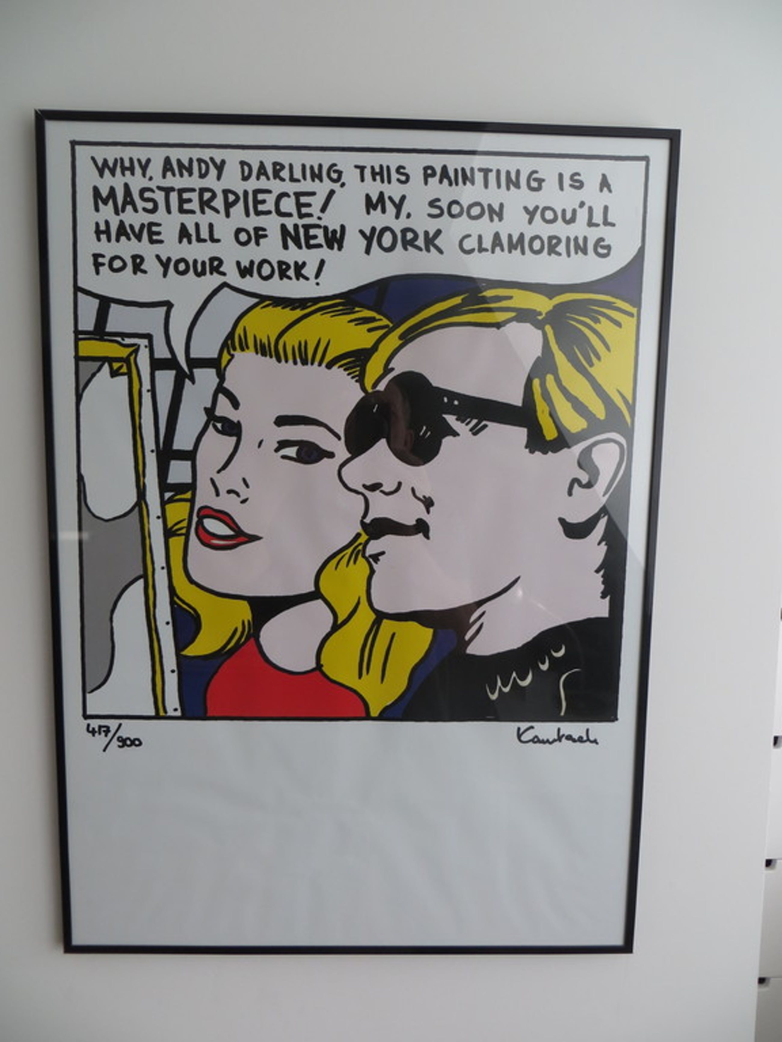 Flitsende zeefdruk van Fluxux kunstenaar Sam Kautsch uit 1978, waarmee hij commentaar levert op het volgens hem te commerciele karakter van het werk van Warhol en Lichtenstein. Voor de liefhebbers van Pop-Art een mooi werk.