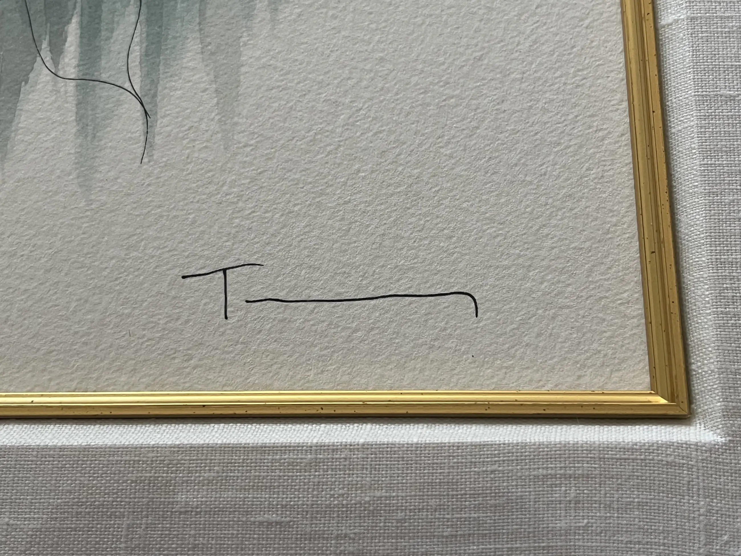 Romantisch, sfeervol tafereel gelijst in monumentale, goudkleurige lijst. Lijst heeft minimale gebruikssporen, welke in de bewerkte lijst niet of nauwelijks opvallen.In het linnen passe partout zit onderin een donker plekje.