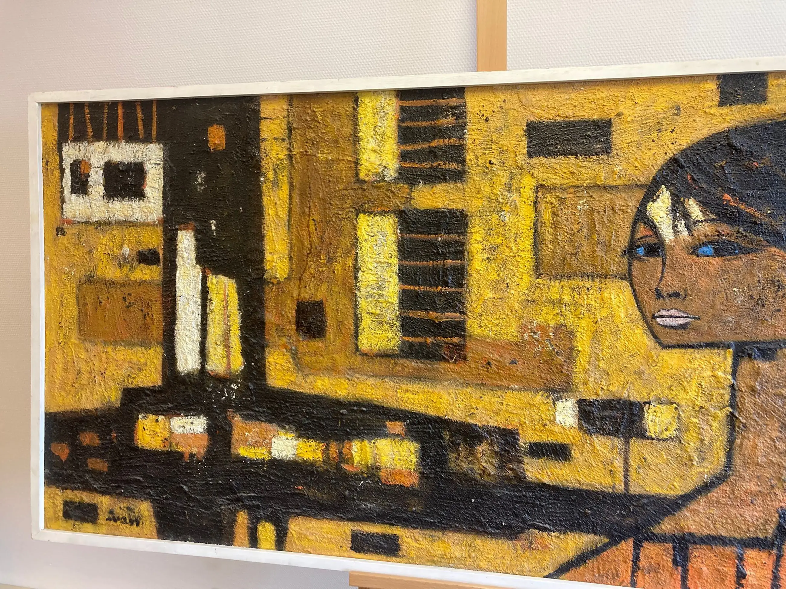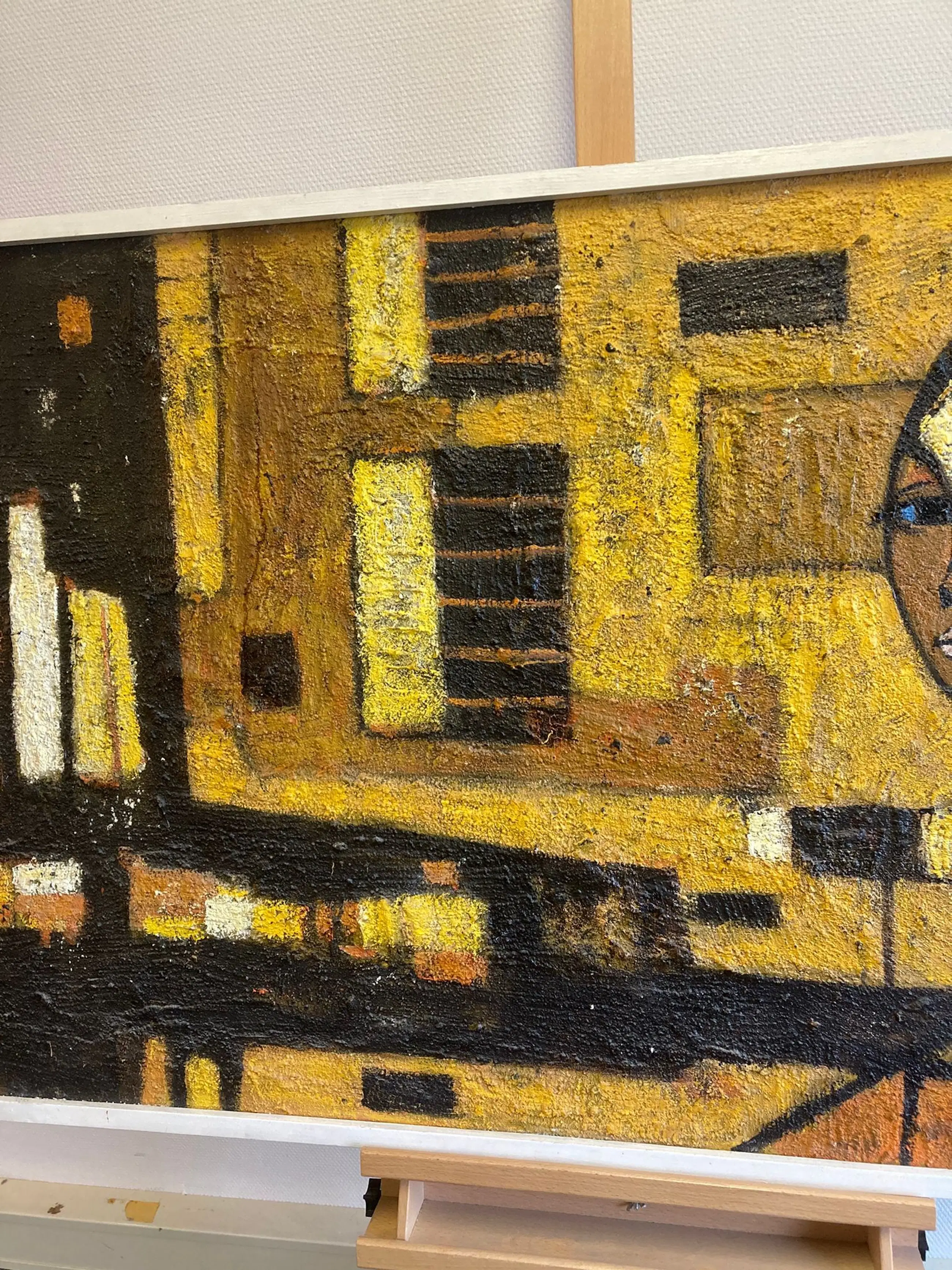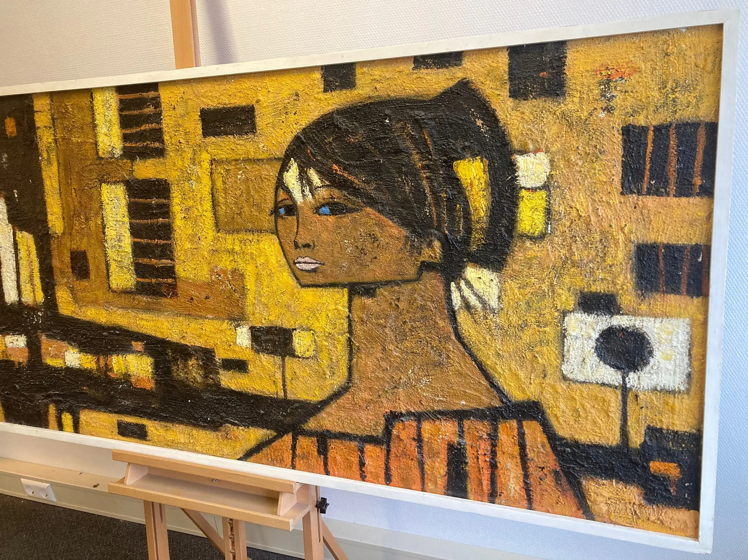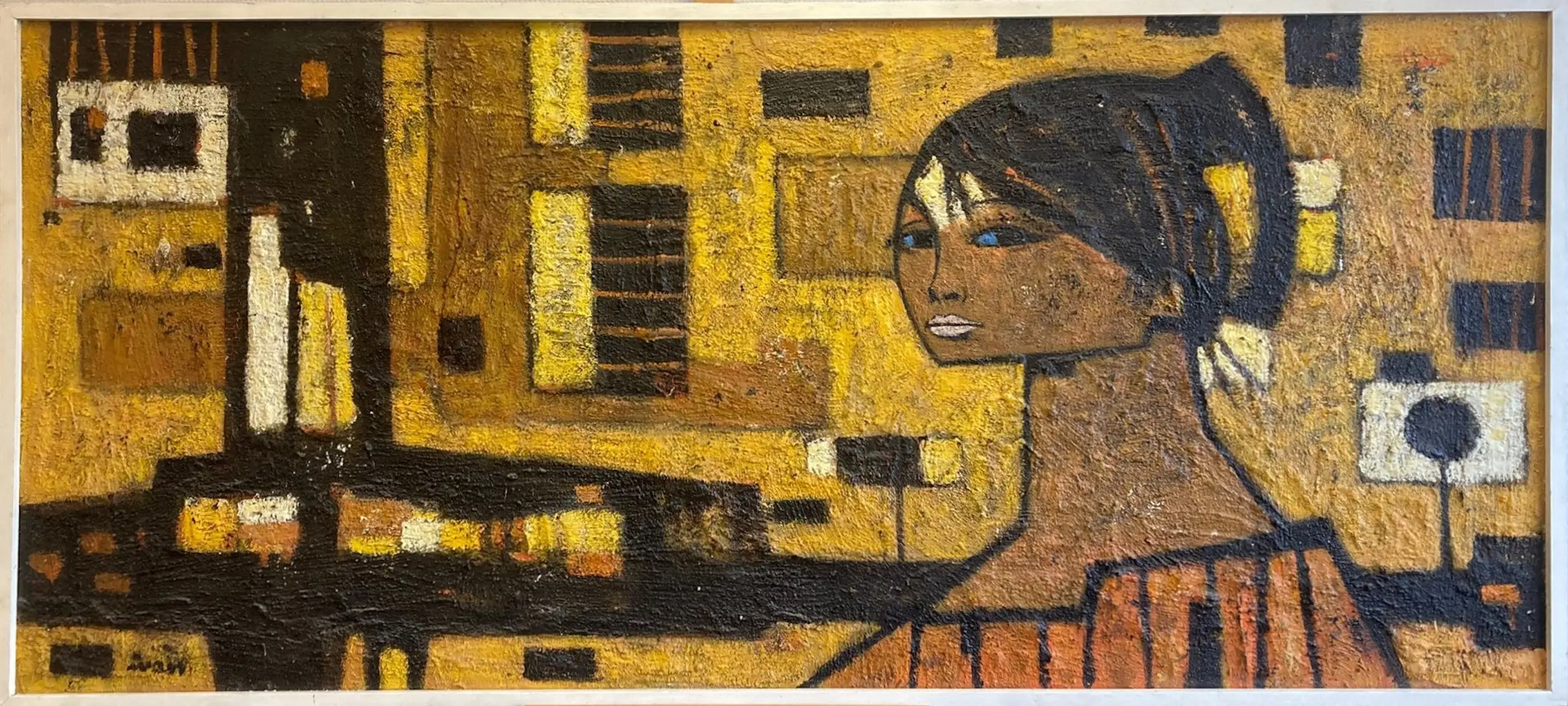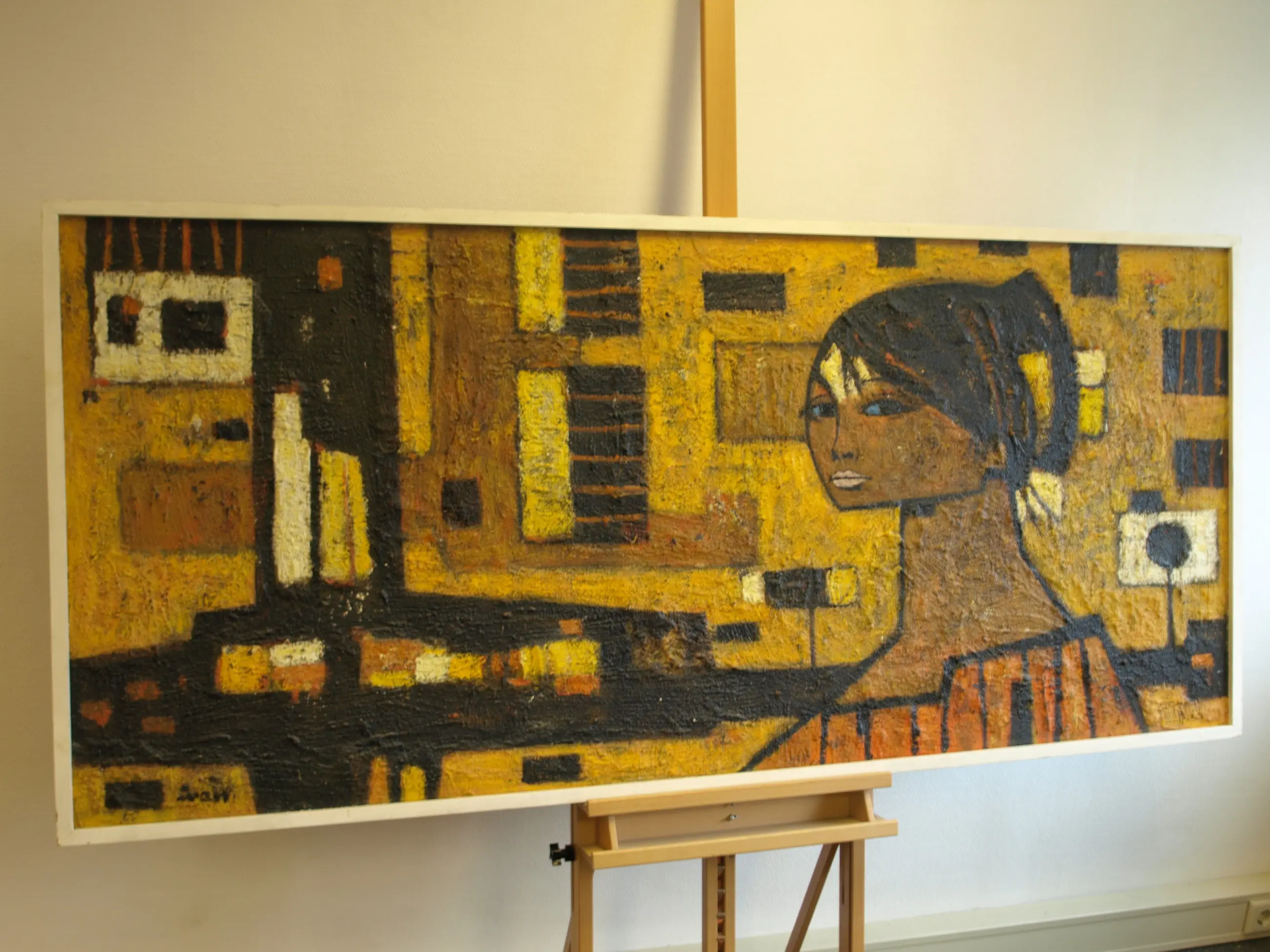 Een groot schilderij van de Tsjechische kunstenaar Ivan Sedliský (1926-1999). -Gesigneerd linksonder (‘Ivan’). Naamsvermelding en titel (‘Iluta Ulice’?) op de achterkant. -Techniek: Olieverf en materie op board. -Ingelijst in een houten lijst. Kan zo aan de muur. -Afmetingen: Lijst, 82 x 182 x 5 cm. Beeld, 78½ x 178½ cm. -Herkomst: Uit een inboedel. -Conditie: In goede staat met lichte slijtplekjes. Zie ook de foto’s voor een eigen indruk. Kan zo aan de muur.