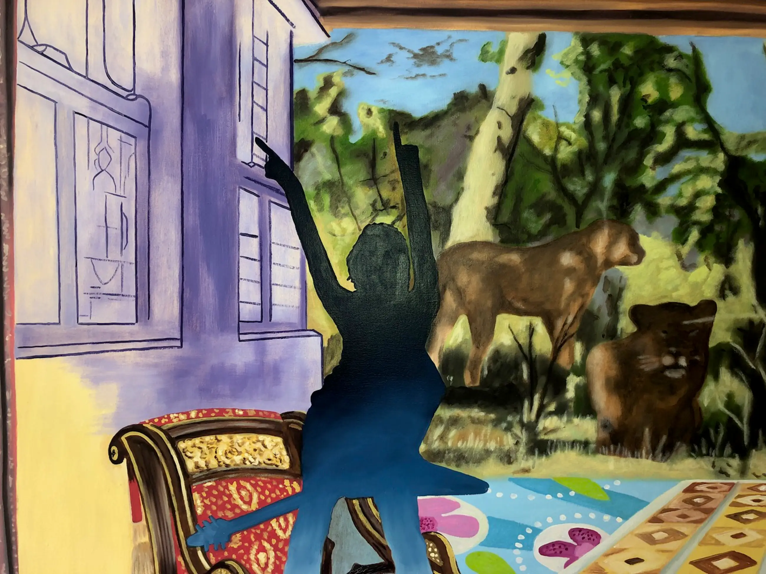 Dit werk van kunstenaar Ivo Lucas combineert surrealistische picturale ruimtes met realistische figuratie en collage-achtige elementen. Verschillende stijlniveaus – van lineaire contouren tot expressief gekleurde vlakken en fotorealistische details – smelten samen tot een dromerige compositie.