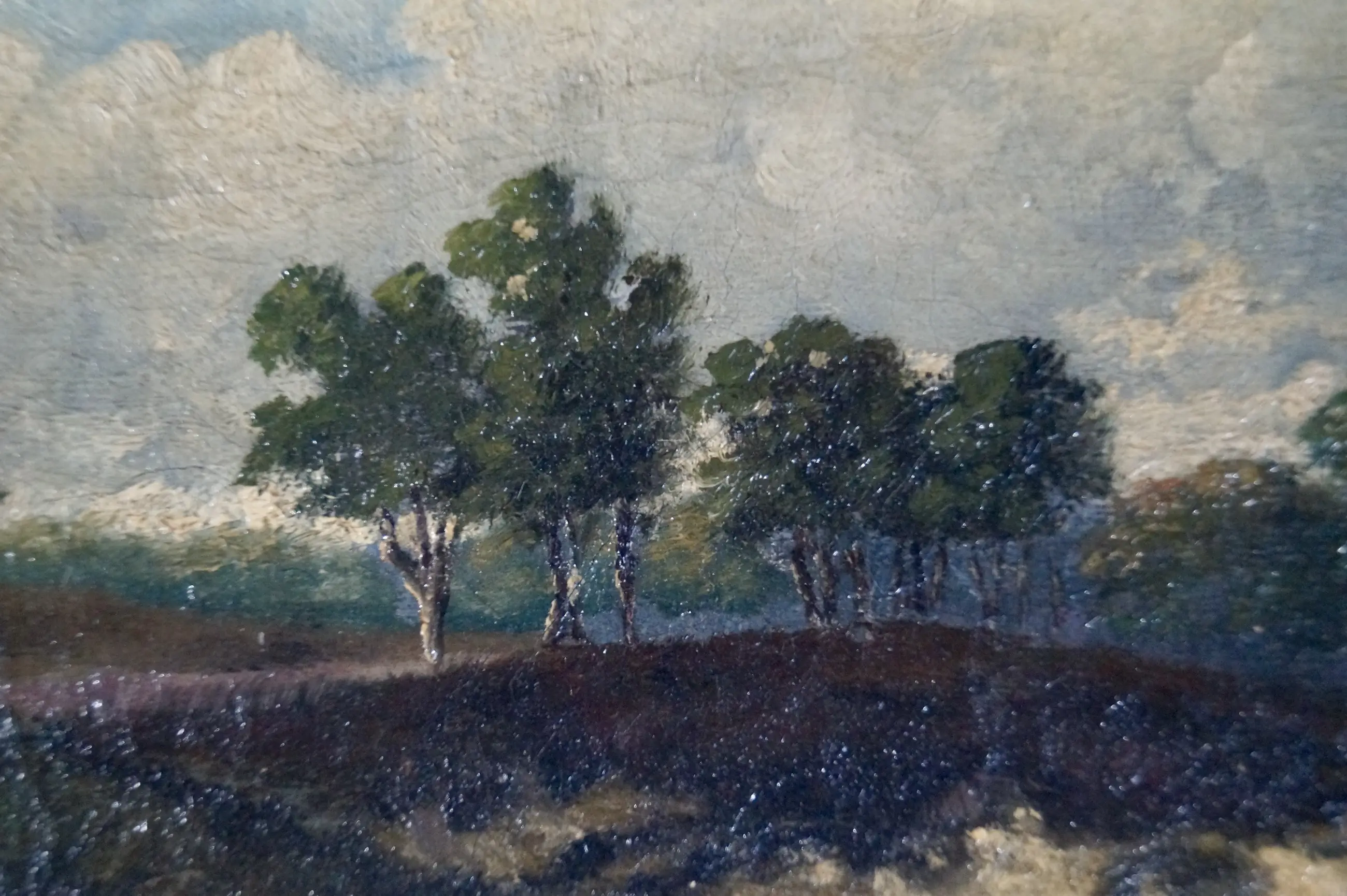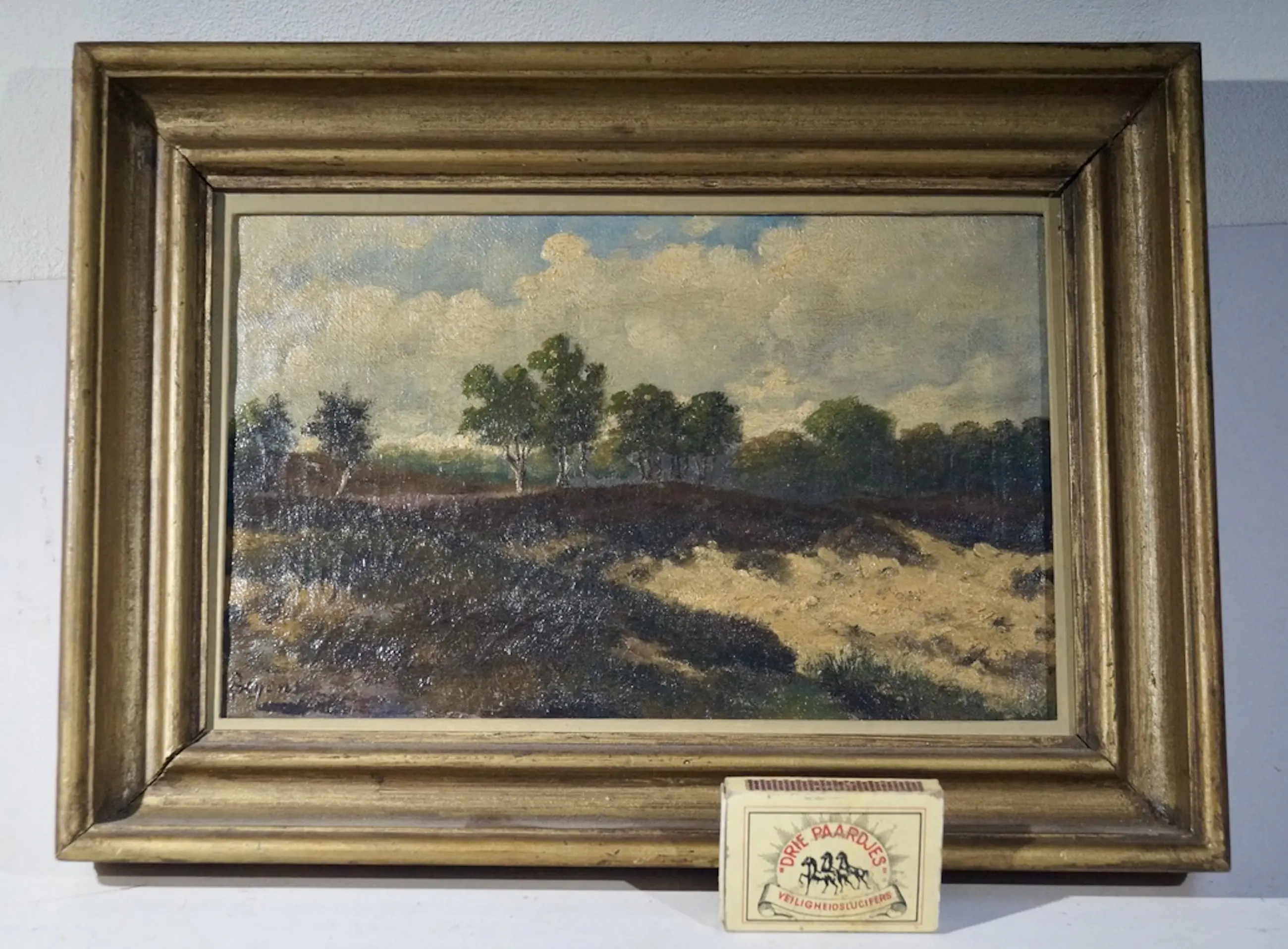 Dit landschapje zou in het Brabantse gebied rond Breda kunnen zijn. Het schilderij en de lijst zijn in prima conditie.