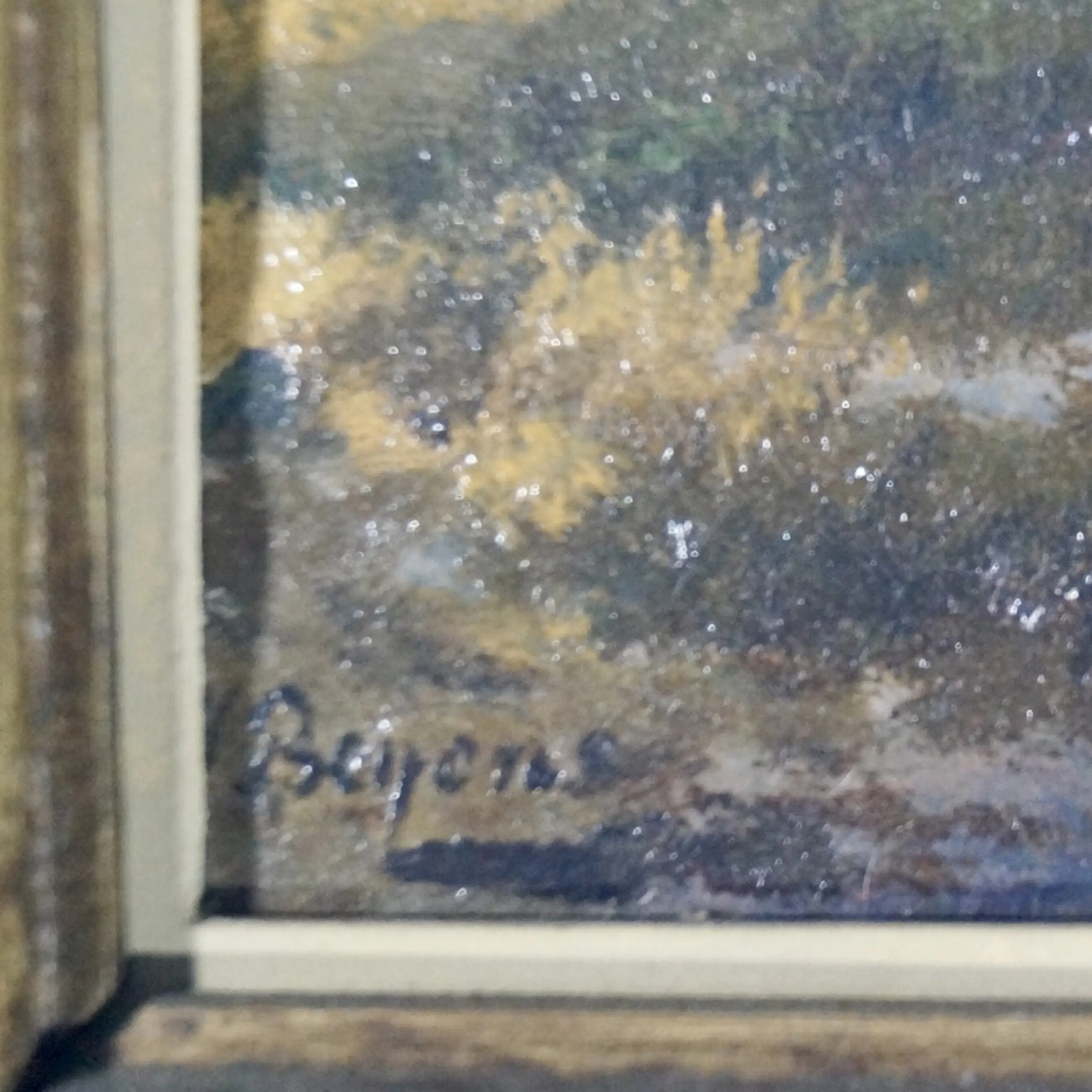 klein landschapje van J. Beyens, Bredase school 19e eeuw. Van de schilder J. Beyens weten we maar weinig. Bekend is dat hij omstreeks 1830 werkzaam was als historie- en landschapschilder. In de jaren '80 schilderde hij meerdere kleine stadsgezichten van Breda, Een aantal darvan bevindt zich in de collectie van het Stedelijk Museum Breda.