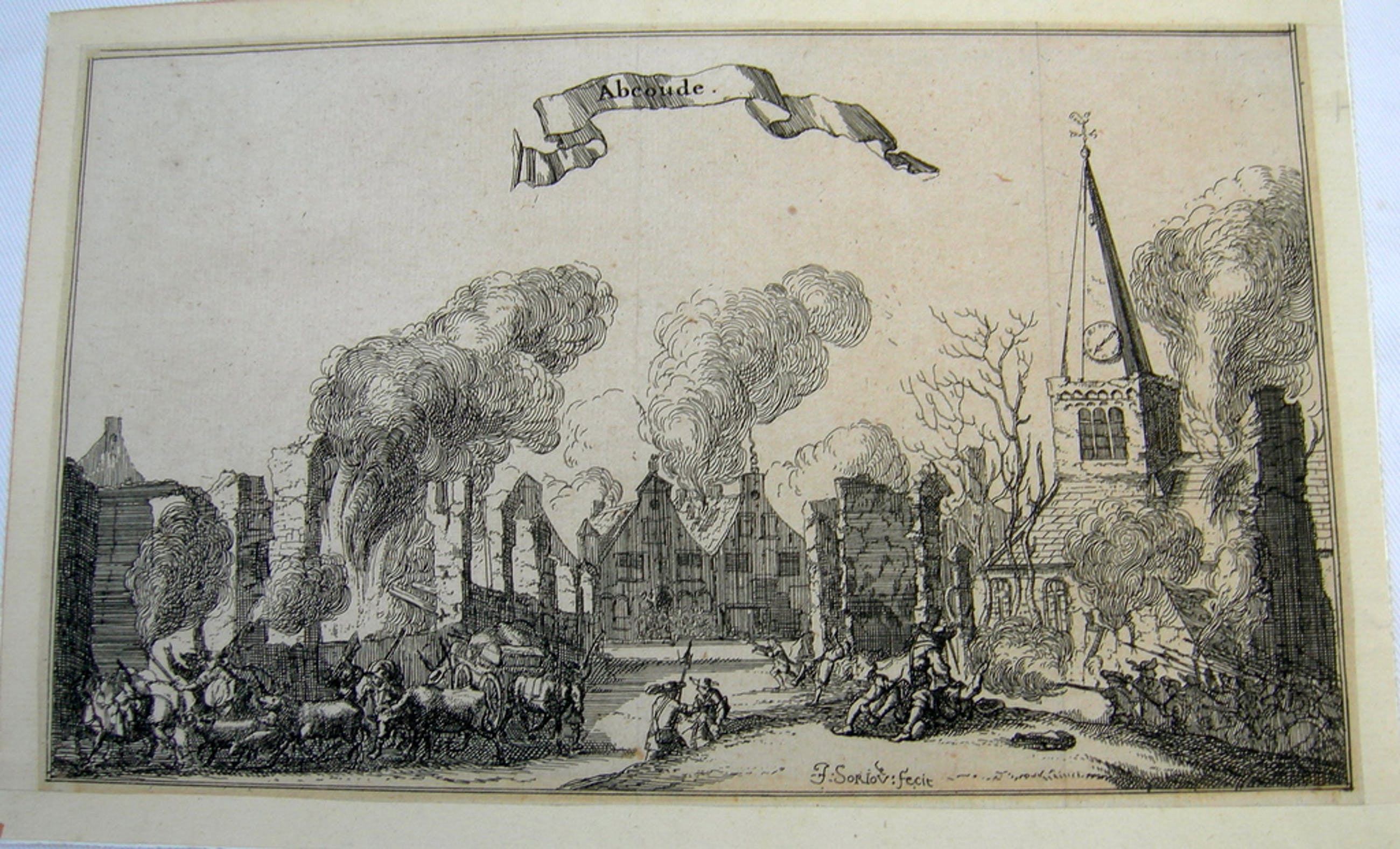 3 etsen uit een serie van 13 afbeeldingen van dorpen en kastelen in de provincie Utrecht door de Fransen in 1672 verwoest. Datering 1672 - 1676