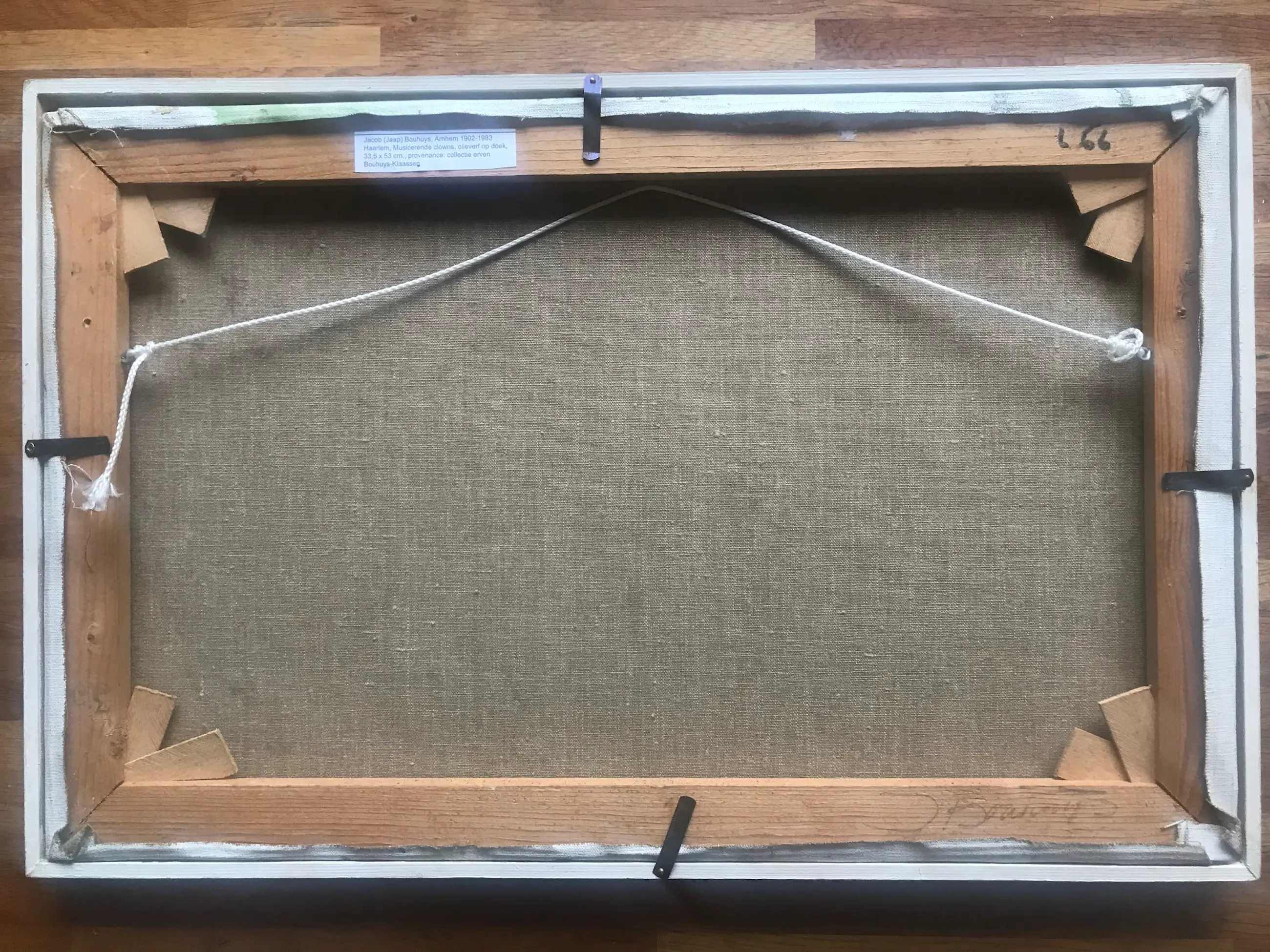 Dit schilderij van Bouhuijs betreft een olieverf op doek, gesigneerd onder-rechts en het verkeert in een uitstekende conditie. Het werk van deze kunstenaar wordt in Nederland door diverse grote galerieen en kunsthandelaren te koop aangeboden.