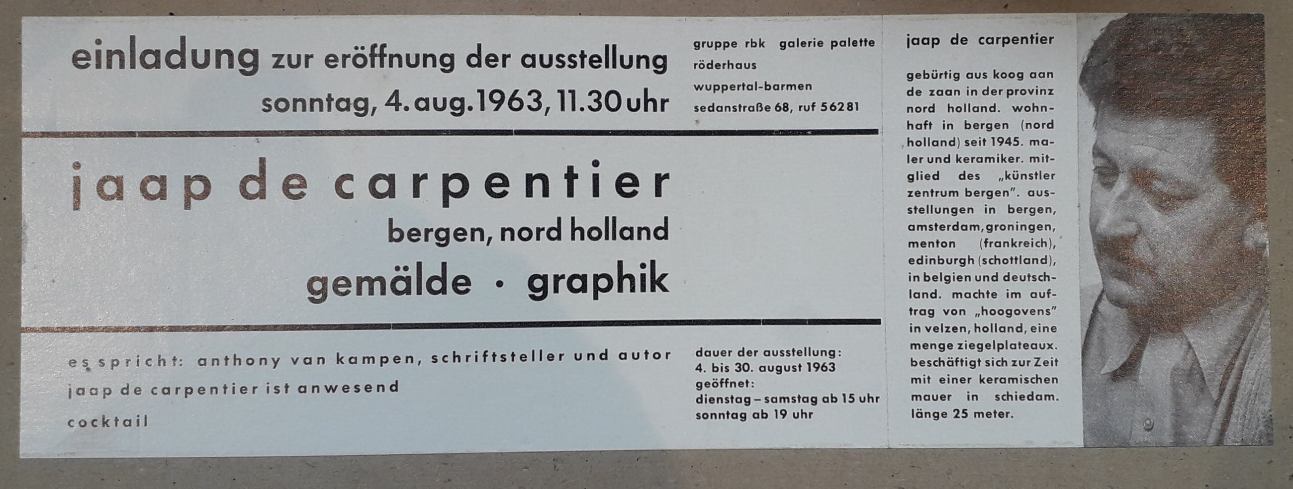 Leuke abstract werk van Jaap Carp. Jaap de Carpentier ("Jaap Carp"), Dirk Trap, en Kees den Tex traden in de jaren zestig en zeventig naar buiten als de Bergense groep (niet te verwarren met de Bergense School van een halve eeuw eerder).