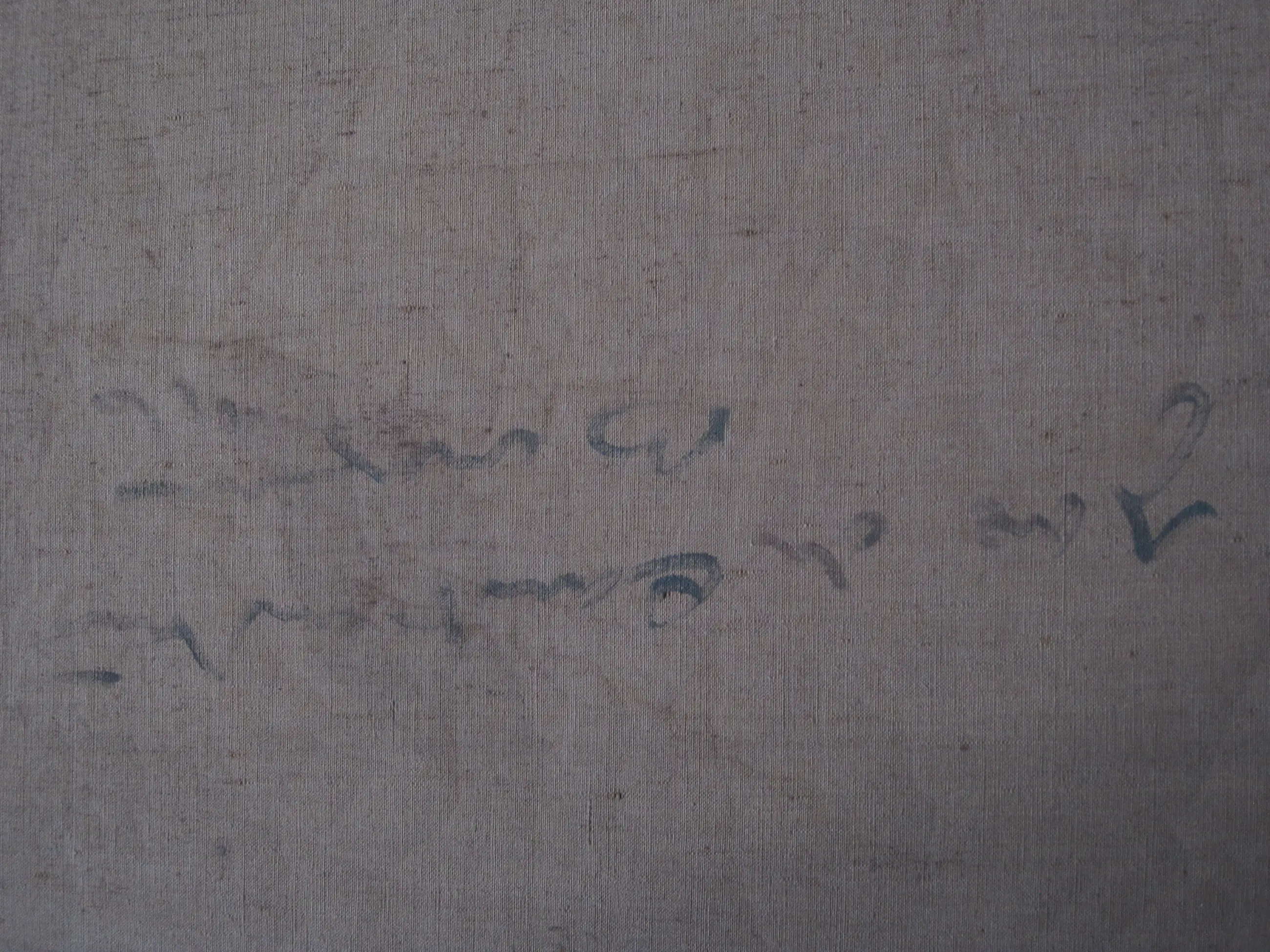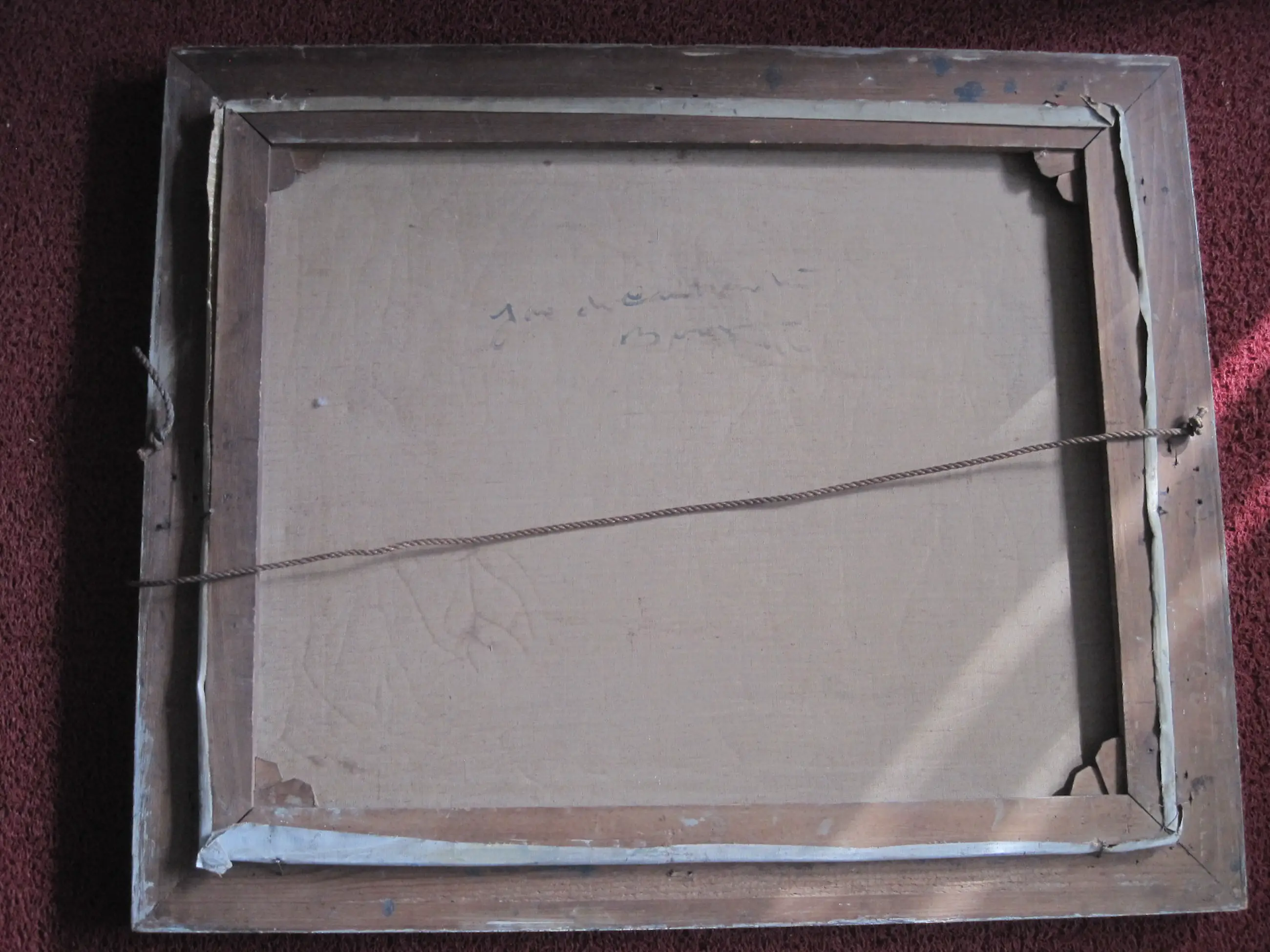 Doek vertoont de nodige craquele en heeft een professionele opknapbeurt nodig. Kan evt. door ons tegen kostprijs worden verzorgd. De lijst is origineel.