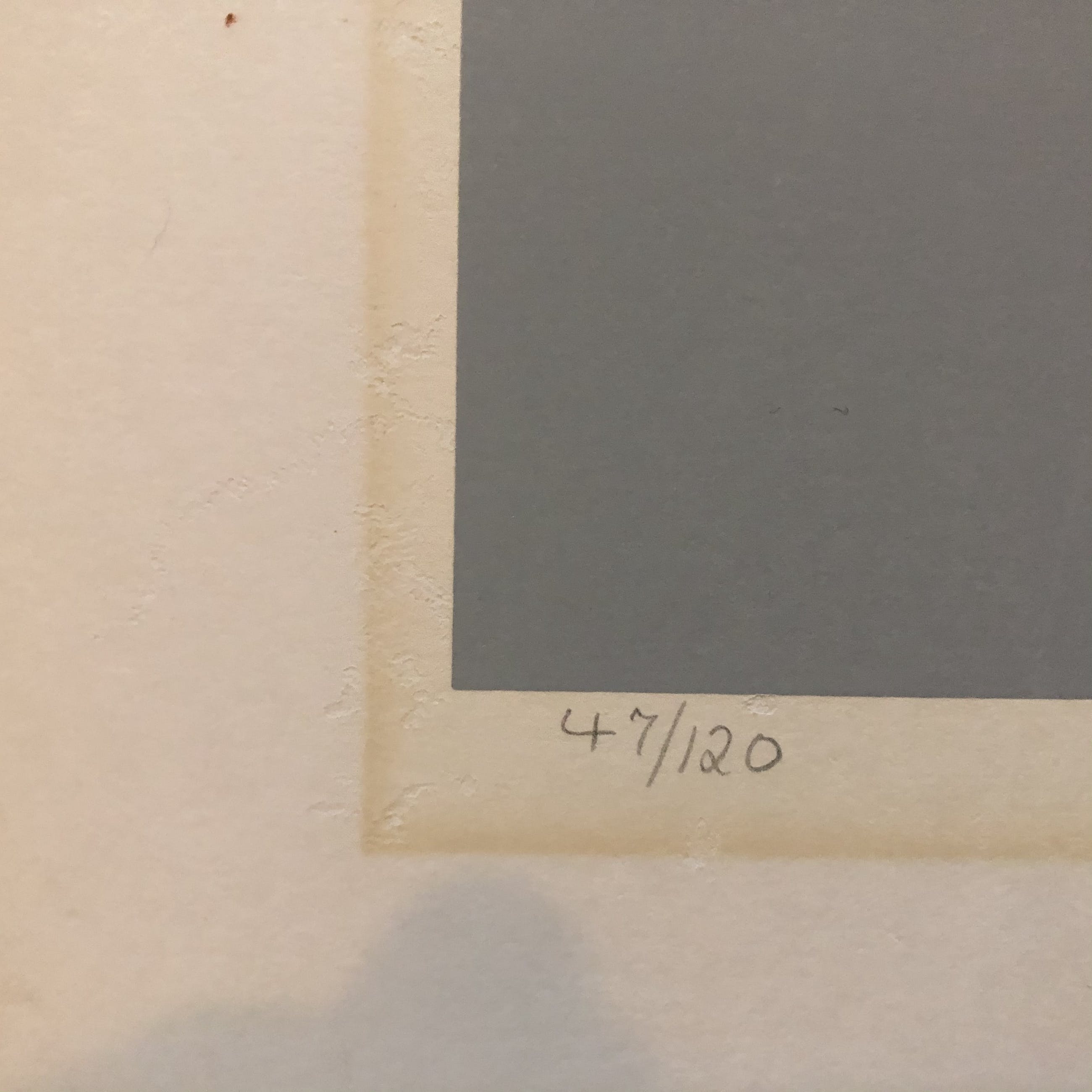 enigszins vergeeld, gelet op de witte randen waar de passe-partout voor heeft gezeten. Na inlijsting met passe-partout niet zichtbaar.