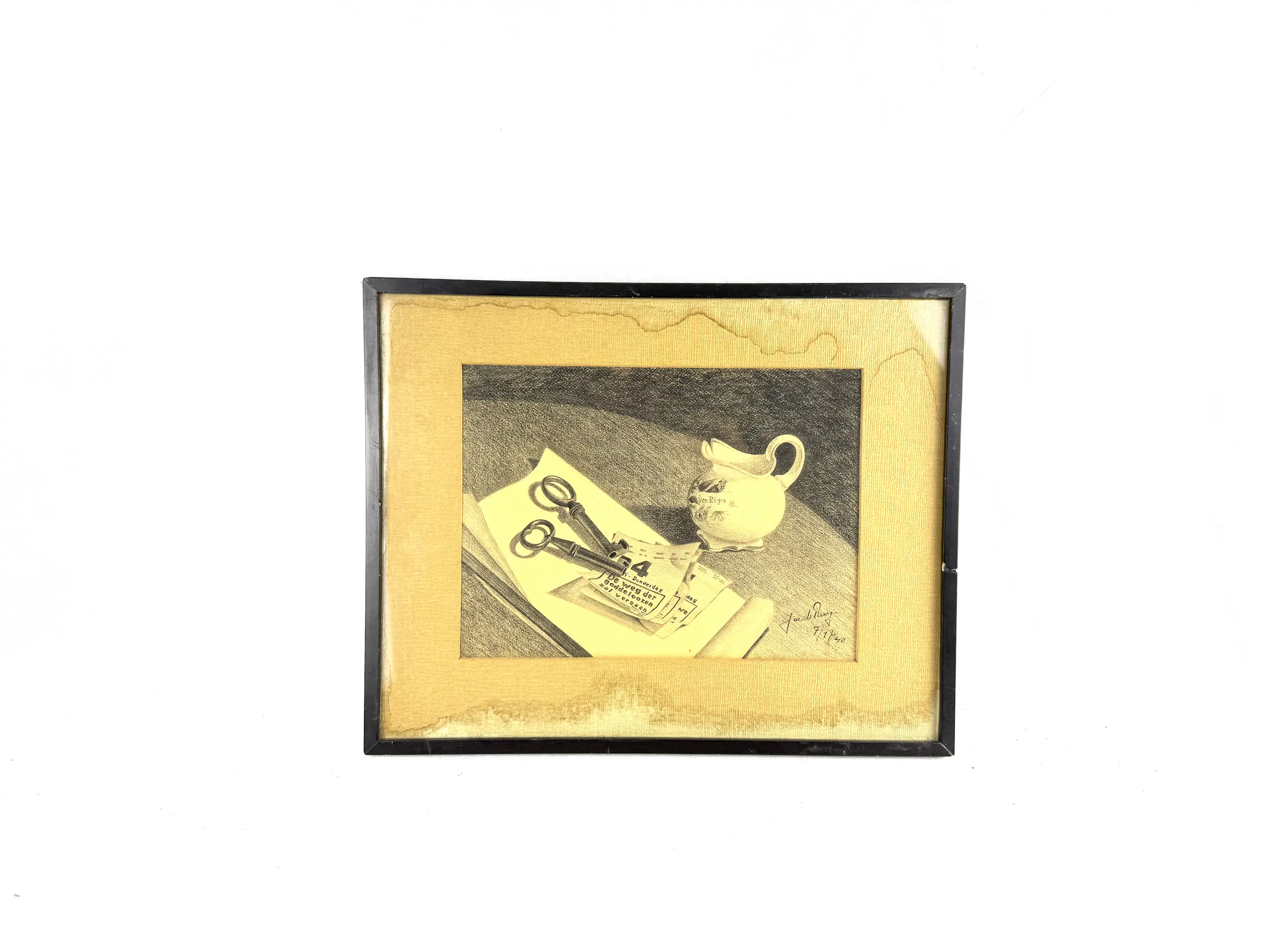 Jac. de Ruig (1909–1992) – Stilleven met sleutels en kan – Potlood op papier – 1940
