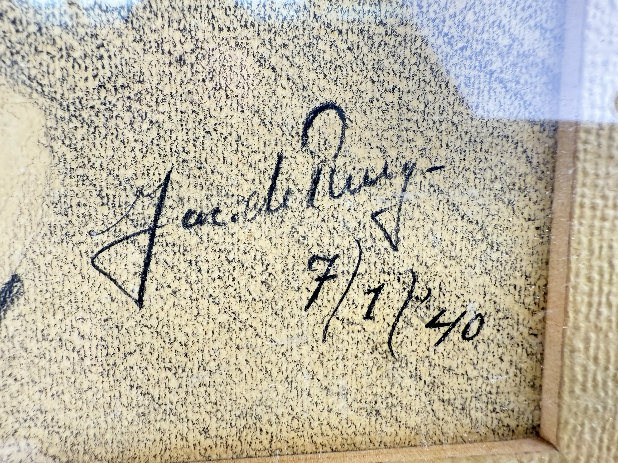 Handtekening: Gesigneerd en gedateerd in potlood rechtsonder Jac. de Ruig, 7-1-40