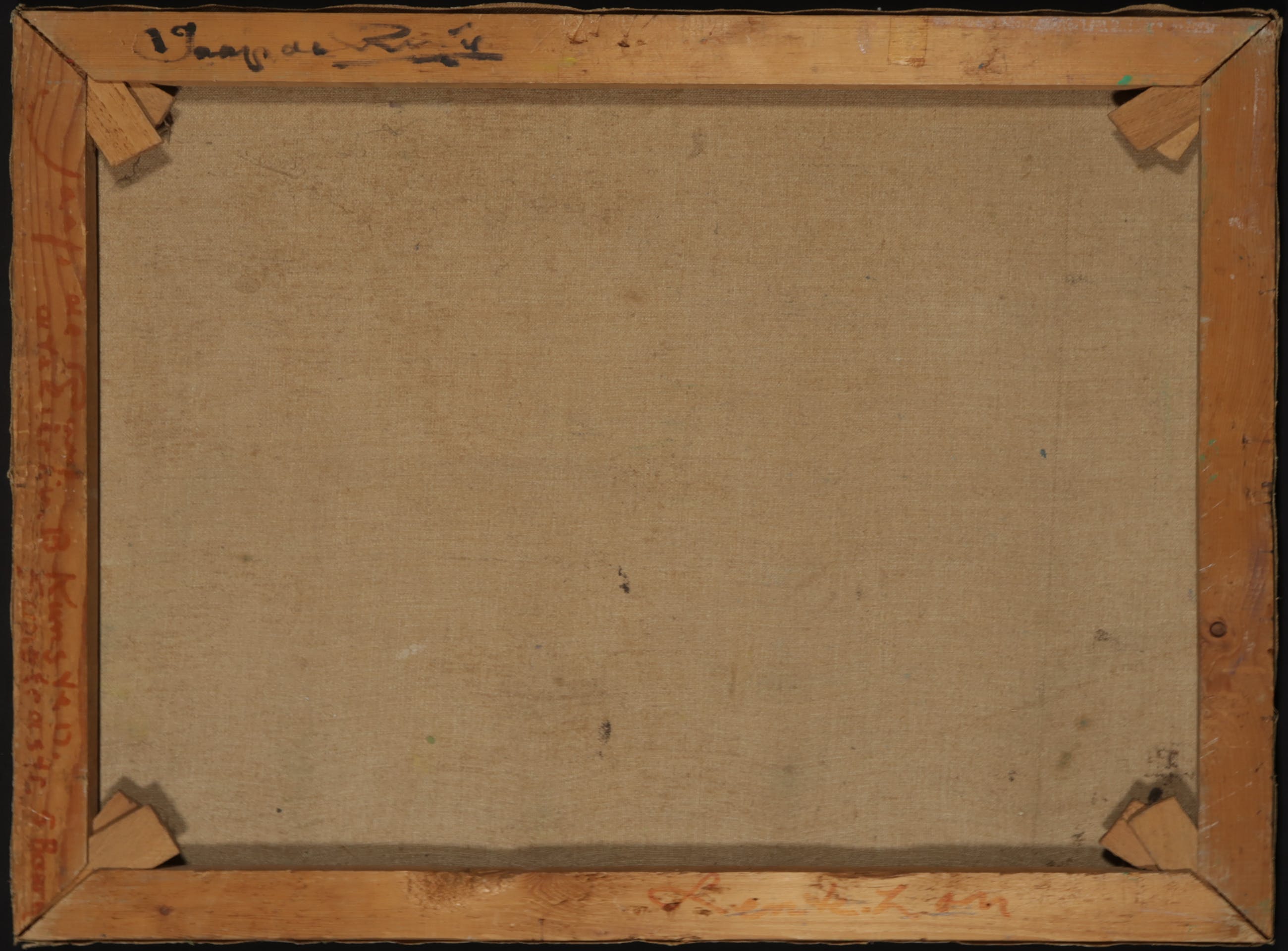 | Rondom de randen van het beeld is er sprake van craquele. Er is geen verf verlies. De hoeken van het canvas zijn verweerd. | |