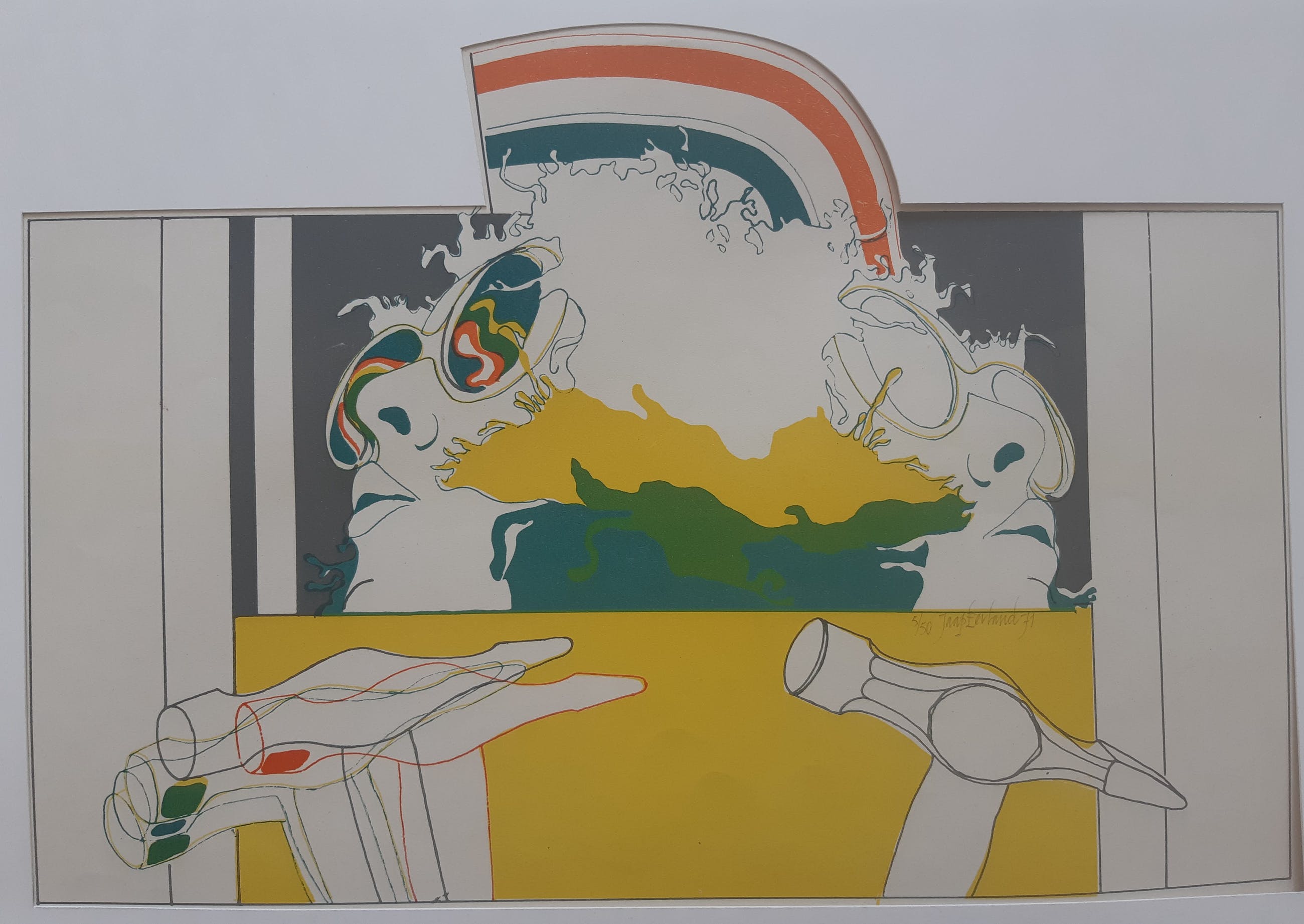 Zeefdruk van Jaap Eerland, met potlood gesigneerd, gedateerd en genummerd. De titel staat niet op het werk, is te vinden op de website jaapeerland.blogspot.com. Door de maker voorzien van een eenvoudig passe-partout. De conditie is zeer goed.