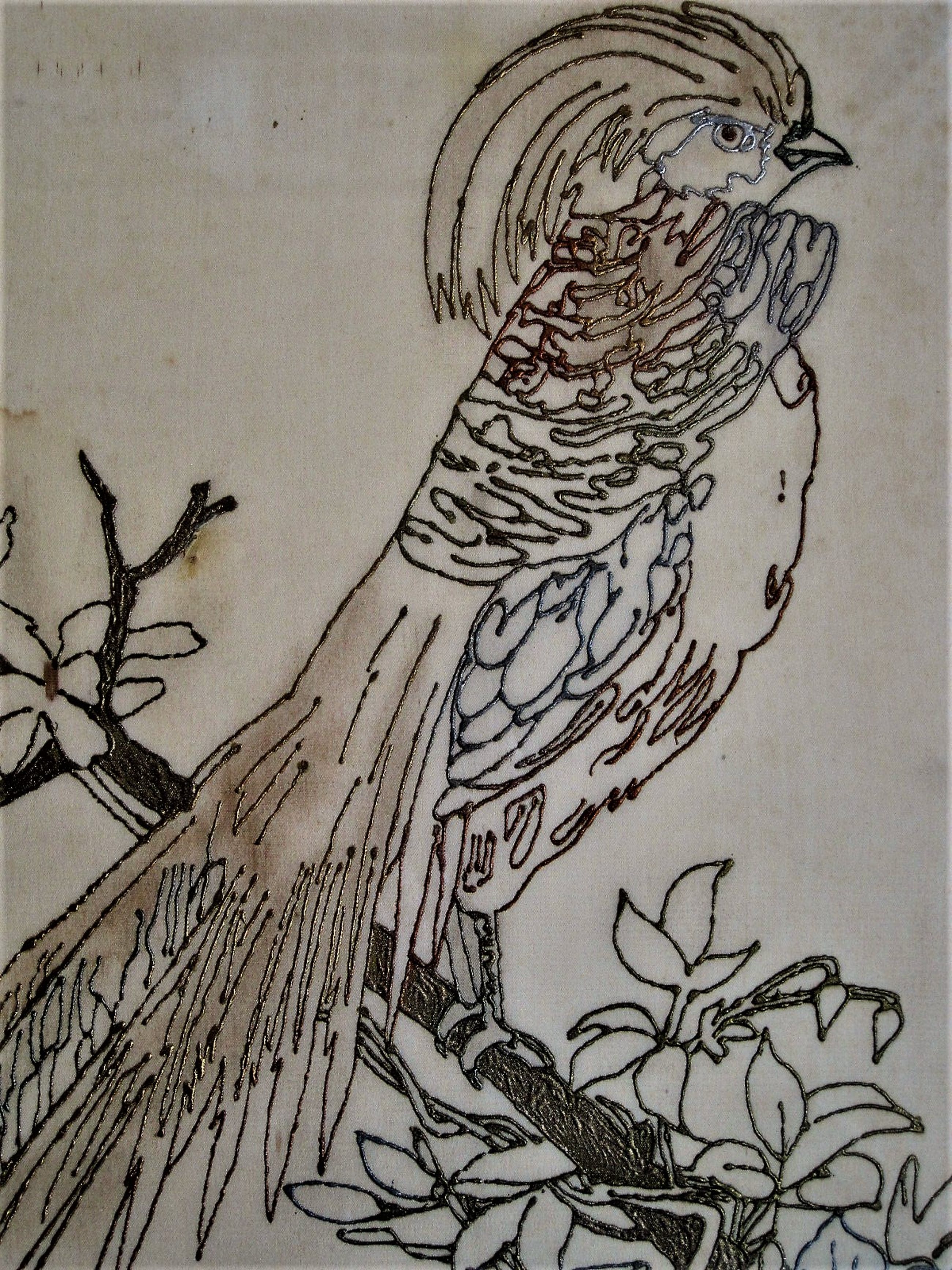 - Uniek, omstreeks 1920 geschilderd reliëf olieverf met voorstelling van een vogel op een tak. De voorstelling is door de vermaarde Art Deco kunstenaar Jaap Gidding (1887-1955) met de zg. "druppeltechniek" op het doek aangebracht. Daardoor ontstaat een tweedimensionaal effect, zodat dat de vogel los van het doek lijkt te komen. Hij heeft in deze voorstelling veel zilver en goudverf gebruikt. Het doek is linksonder gemonogrammeerd.