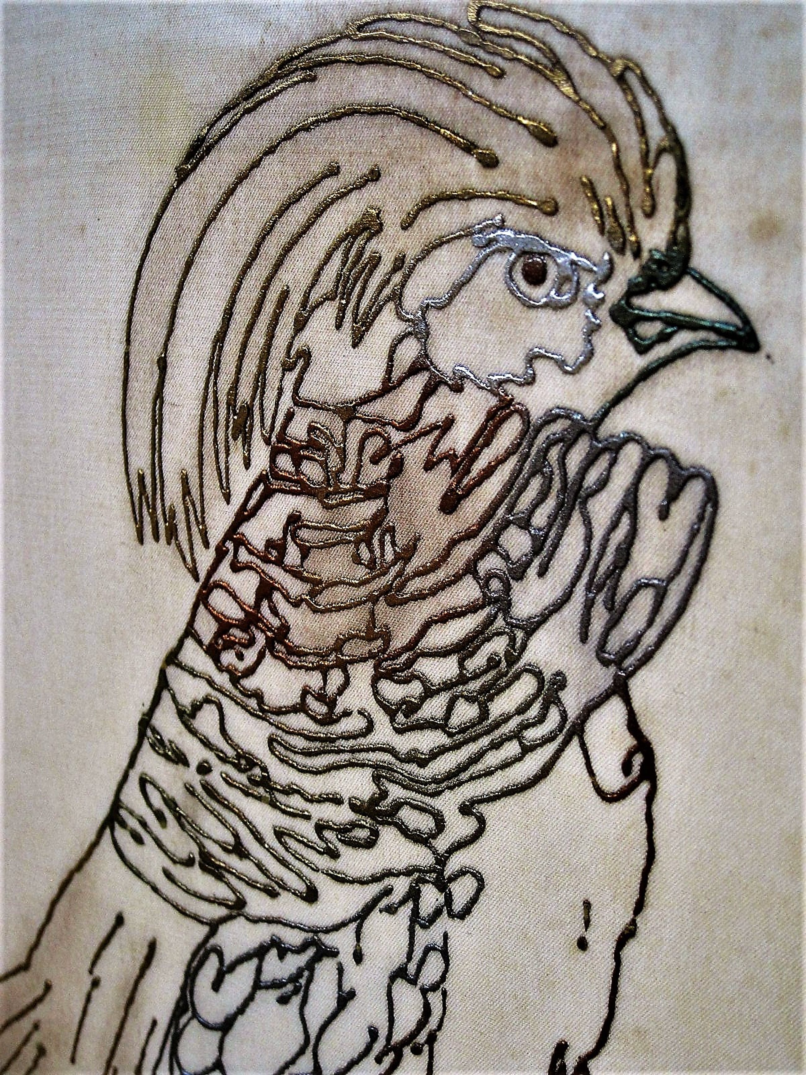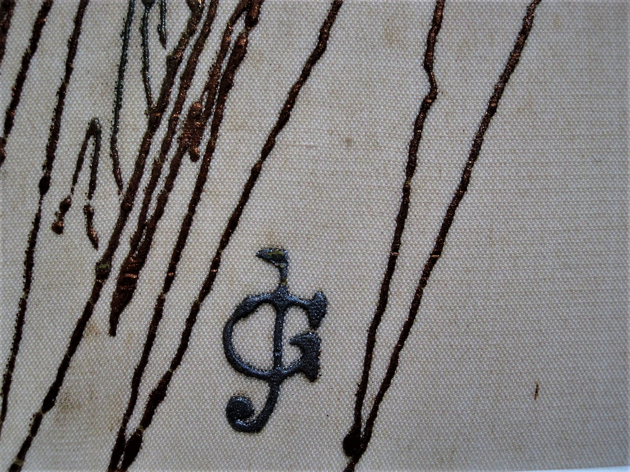 - Uniek, omstreeks 1920 geschilderd reliëf olieverf met voorstelling van een vogel op een tak. De voorstelling is door de vermaarde Art Deco kunstenaar Jaap Gidding (1887-1955) met de zg. "druppeltechniek" op het doek aangebracht. Daardoor ontstaat een tweedimensionaal effect, zodat dat de vogel los van het doek lijkt te komen. Hij heeft in deze voorstelling veel zilver en goudverf gebruikt. Het doek is linksonder gemonogrammeerd.