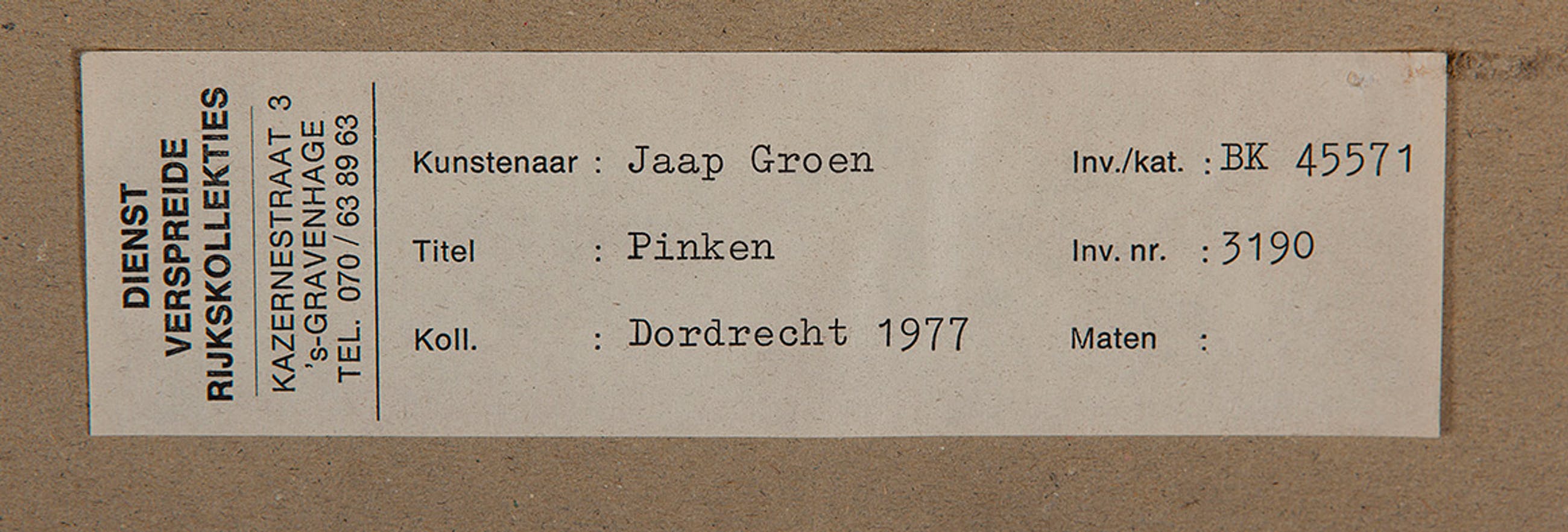 Herkomst: BKR Dordrecht (Het kunstwerk is afgevoerd uit de rijkscollectie in 2018)