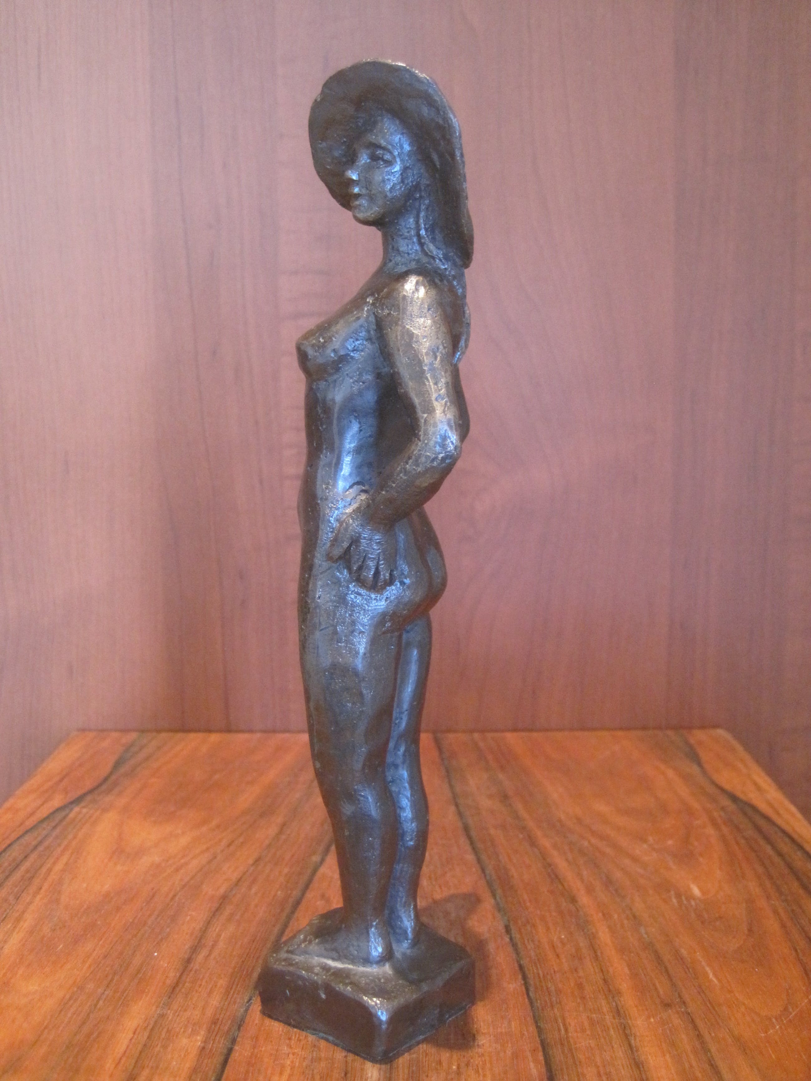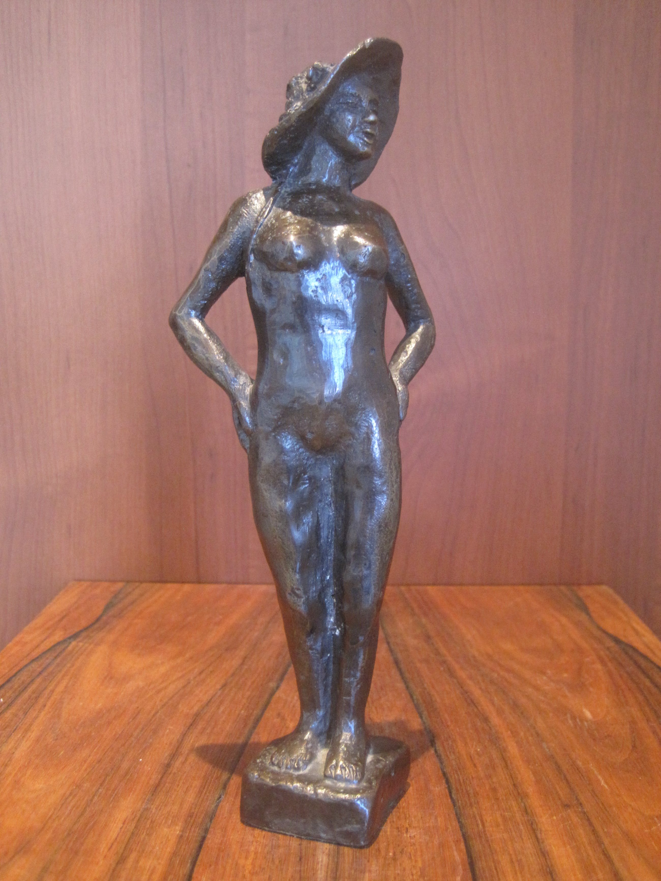 Een prachtig staan naakt van de hand van Jaap Hartman. Dit beeldje is gegoten in zijn gieterij Myron en is van massief brons. Het weegt maar liefs 1300 gram.