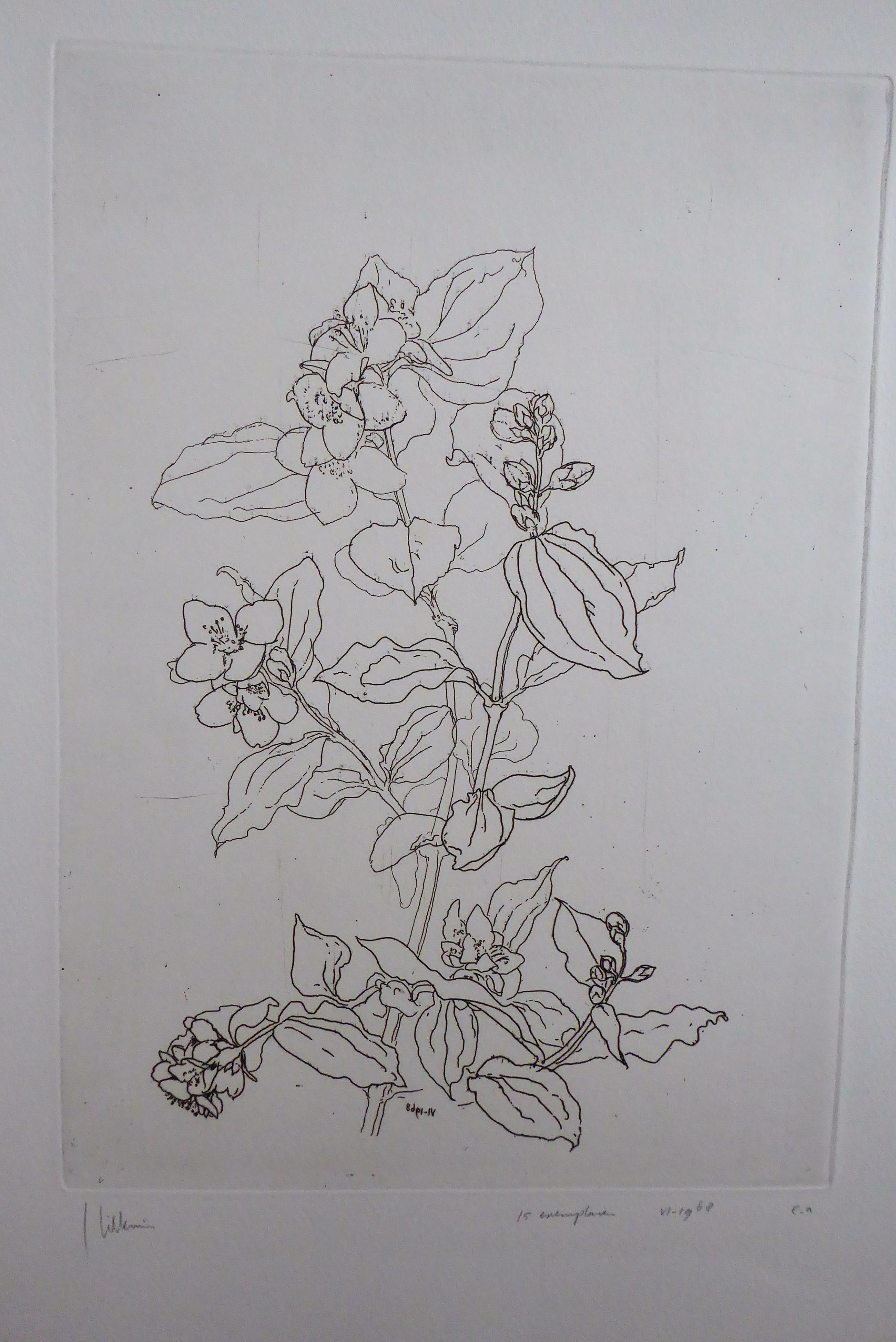 Ets met een bloeiende tak van graficus/schilder van de natuur Jaap Hillenius. Beeldmaat 38,5 x 27 cm. Gesigneerd J. Hillenius in potlood. Daarnaast in potlood: 15 exemplaren, VI-1968 en e.a. Afhalen in Voorschoten of Nieuwegein. Verzenden in overleg.
