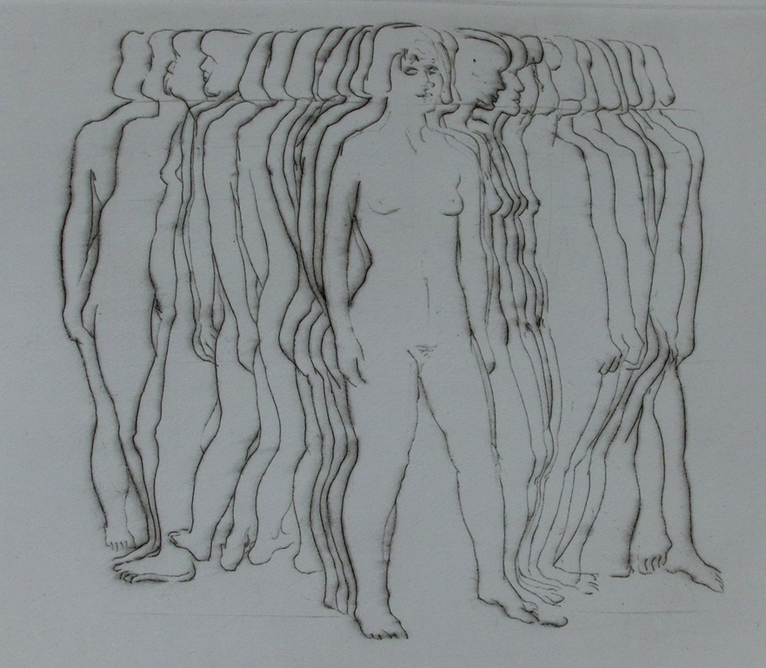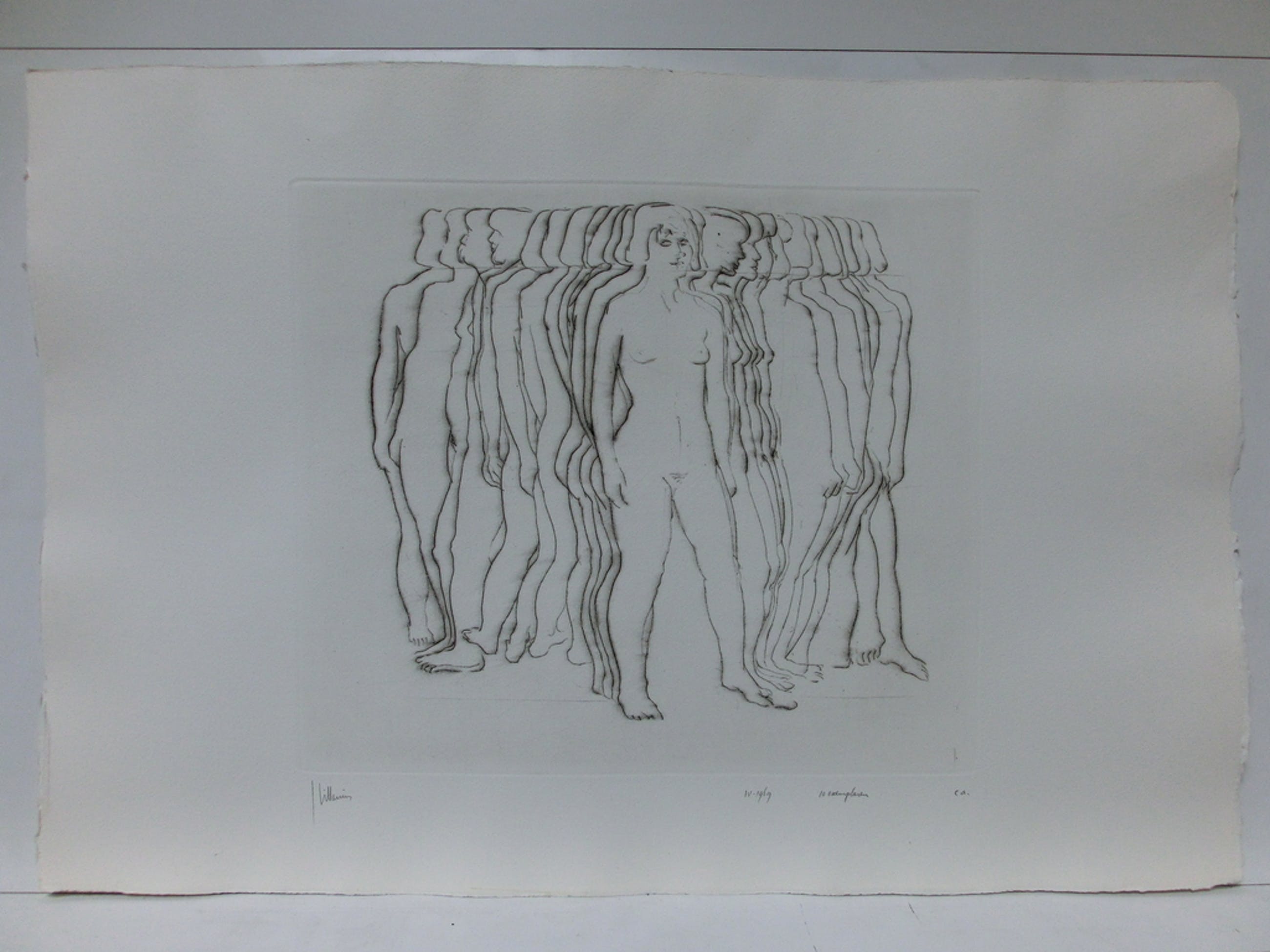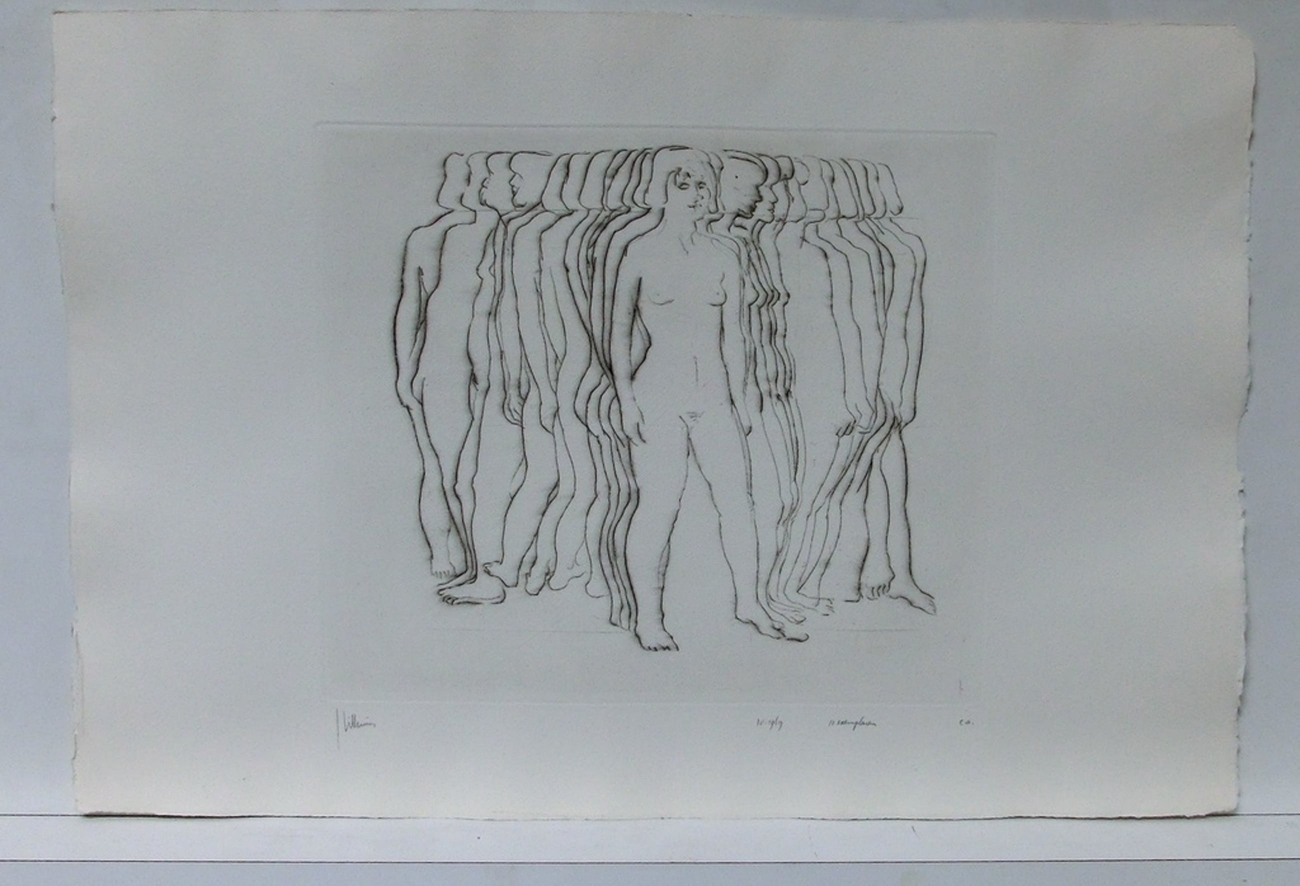 Jaap Hillenius, Ets, Vrouwen, Papierformaat: 56,5 x 38,5 cm, Beeldformaat: 33 x 37, 5cm, linksonder in potlood gesigneerd, oplage 10 ex. IV-1969, e.a.
