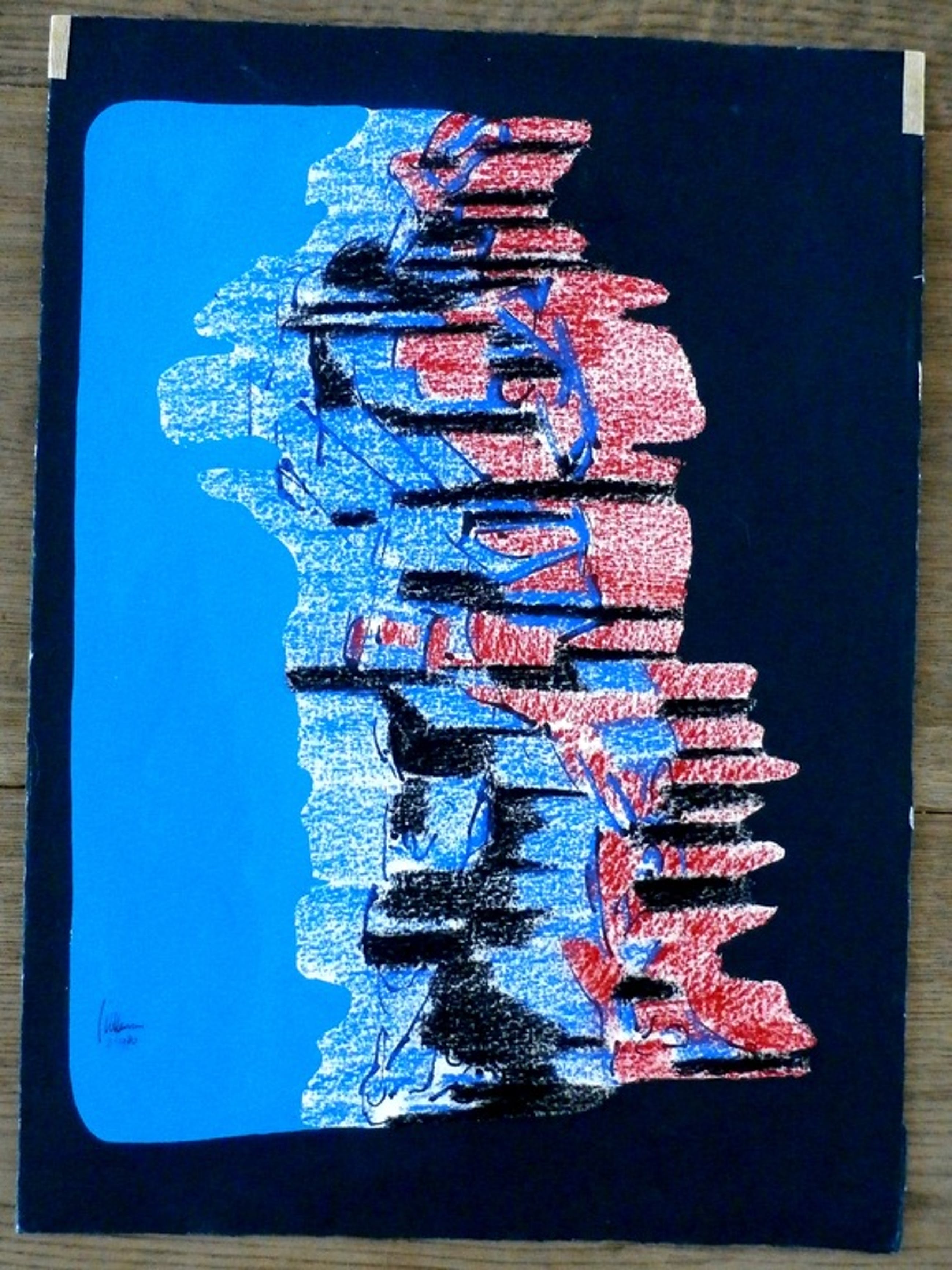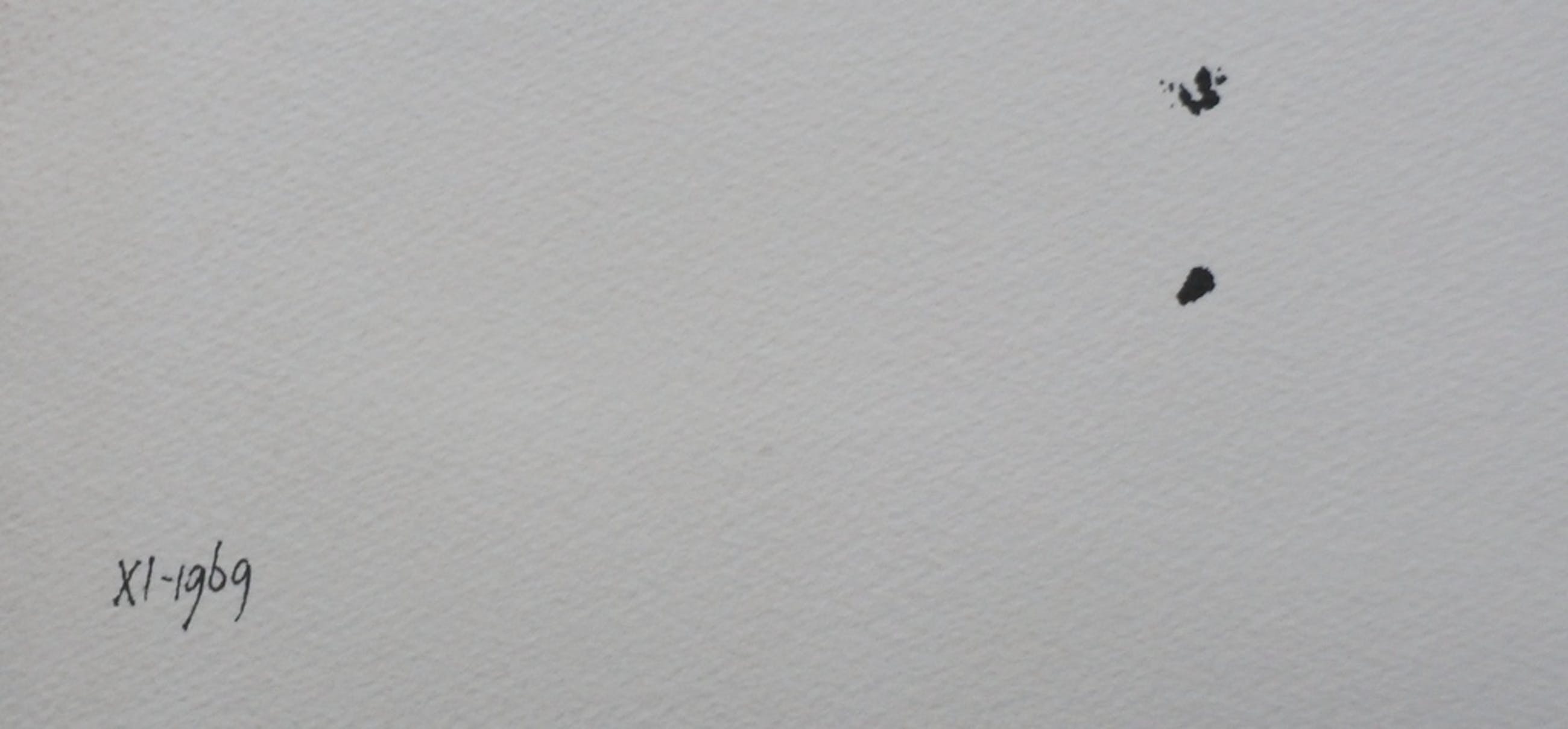 Pastel van Jaap Hillenius uit 1960 of 1970 (11). Afmetingen blad: H38 x b38 cm. Het werk is linksonder gesigneerd en gedateerd door de kunstenaar. Op de achterzijde staat een naakttekening. De authenciteit van dit werk wordt volledig gegarandeerd. een certificaat van echtheid kan, op verzoek, worden meegestuurd. Conditie: in goede staat. Links en rechtsboven zitten plakrestjes van een vorige inlijsting. Bij inlijsting valt het passe-partout hierover heen.