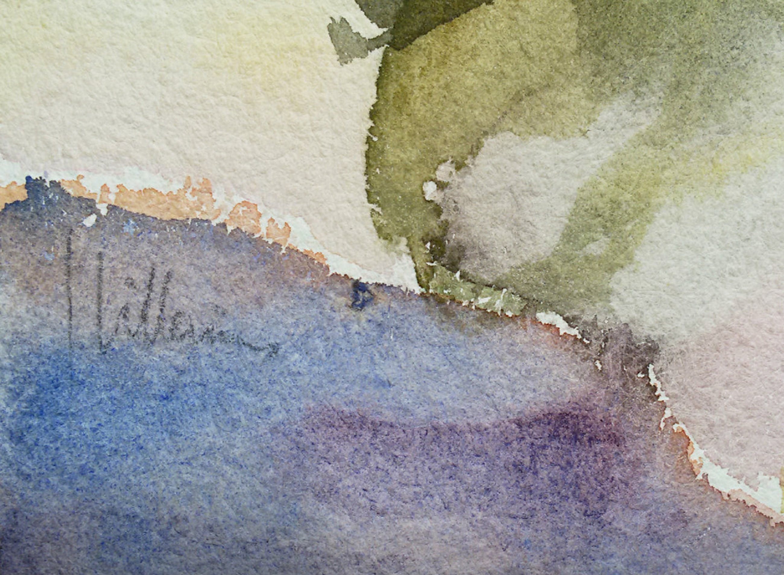 Kleurrijk landschap van de “gevoelige impressionist” Jaap Hillenius. Aquarel op papier, met inkt gesigneerd (2x), getiteld en gedateerd (juli 1966). In uitstekende conditie.