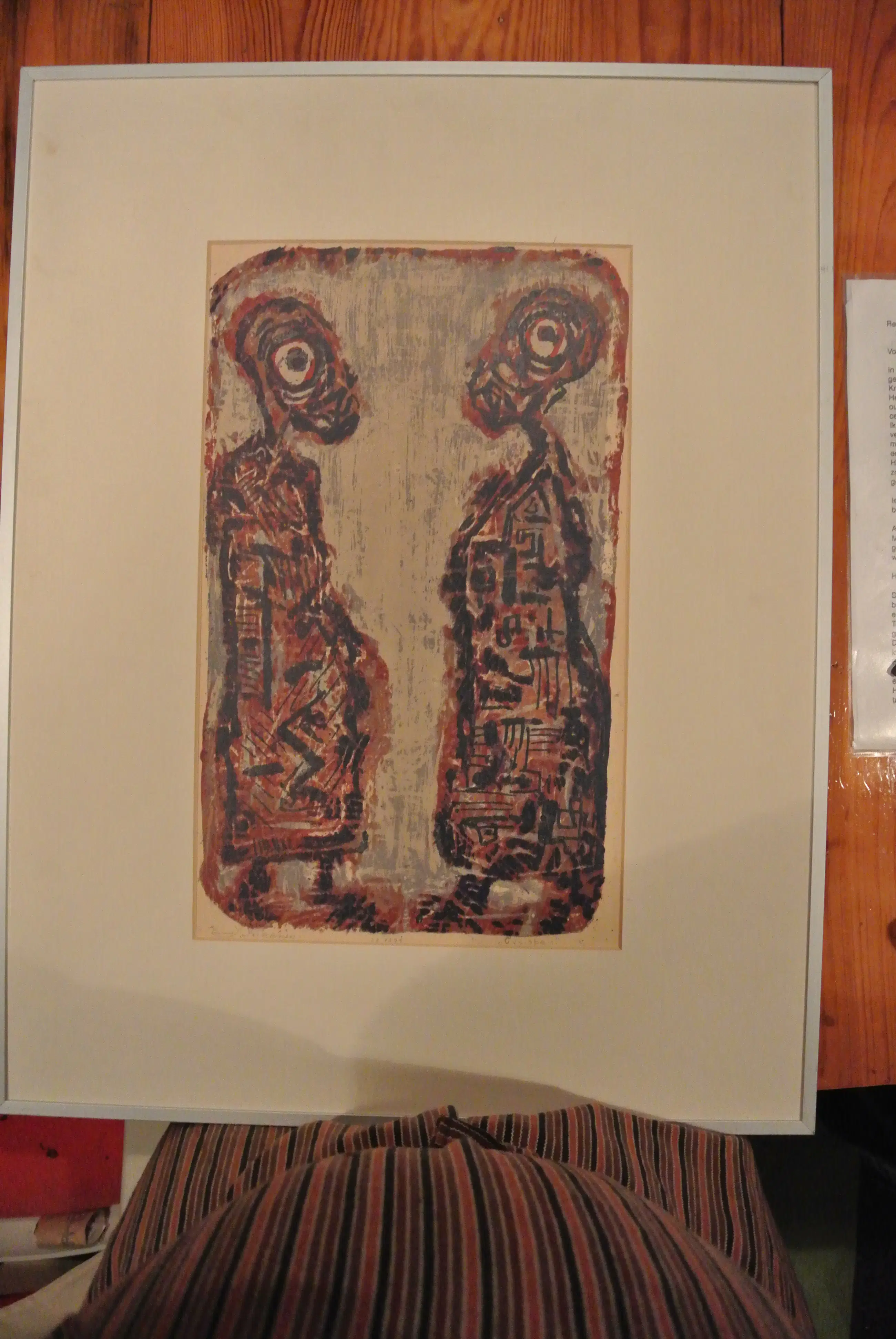 litho, gesigneerd en gedateerd. ingelijst i n metalen lijst, onder passepartout, zonder glas. (4633/2)