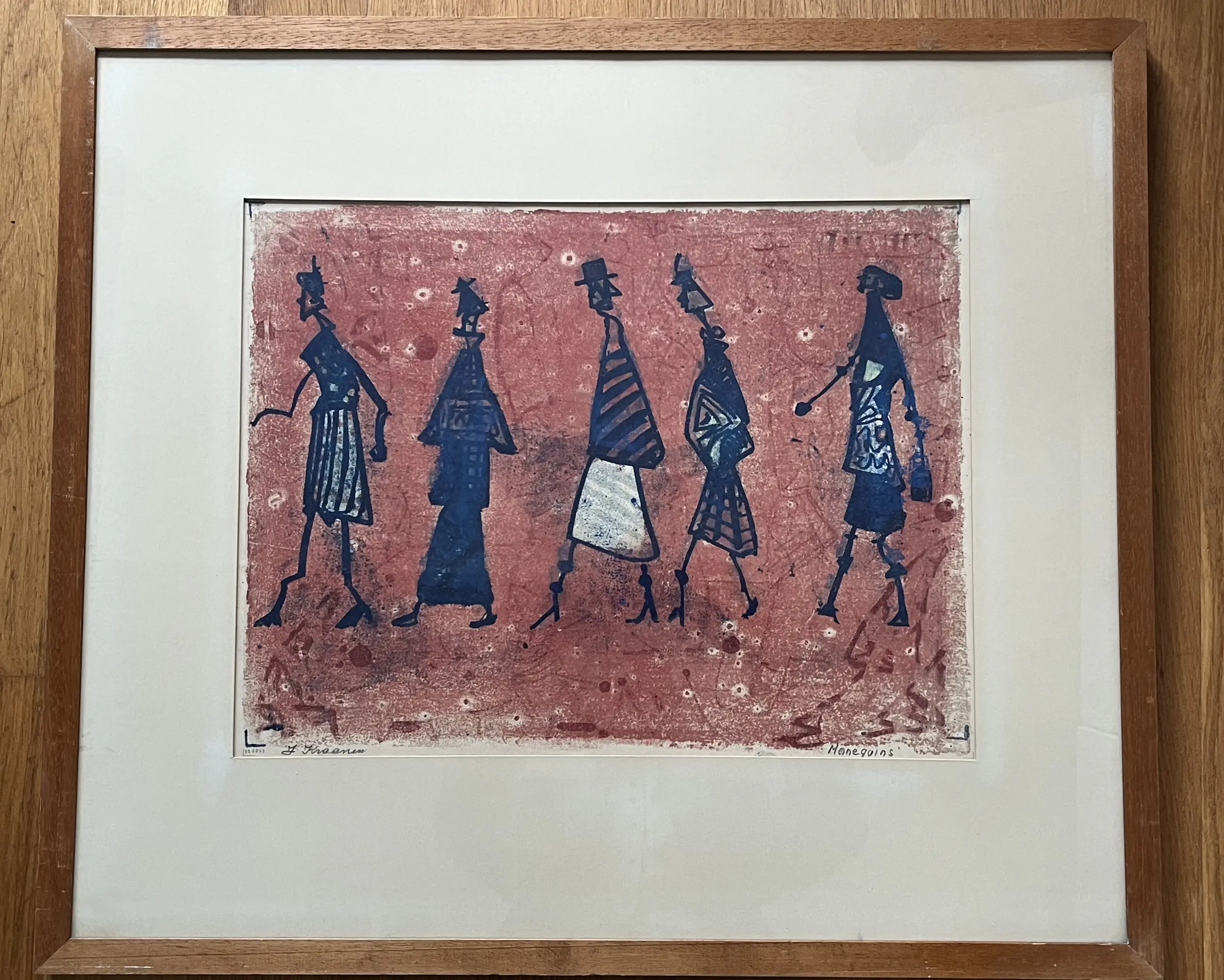 Monotype uit 1952. Kunstenaar heeft een spelfoutje in de titel gemaakt. Het werk is gelijst in een houten lijst met zichtbare gebruikssporen. Afmeting afbeelding 35 x 45 cm. Inclusief lijst 60 x 69 cm. Liefst ophalen na aankoop. Verzending binnen Nederland, op risico koper, (glasbreuk) tegen hoger tarief ivm afmeting. ( € 17,50)