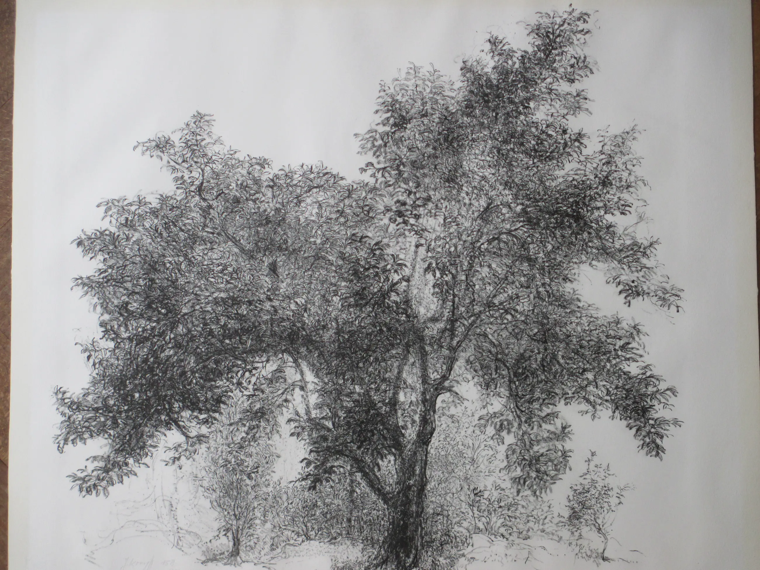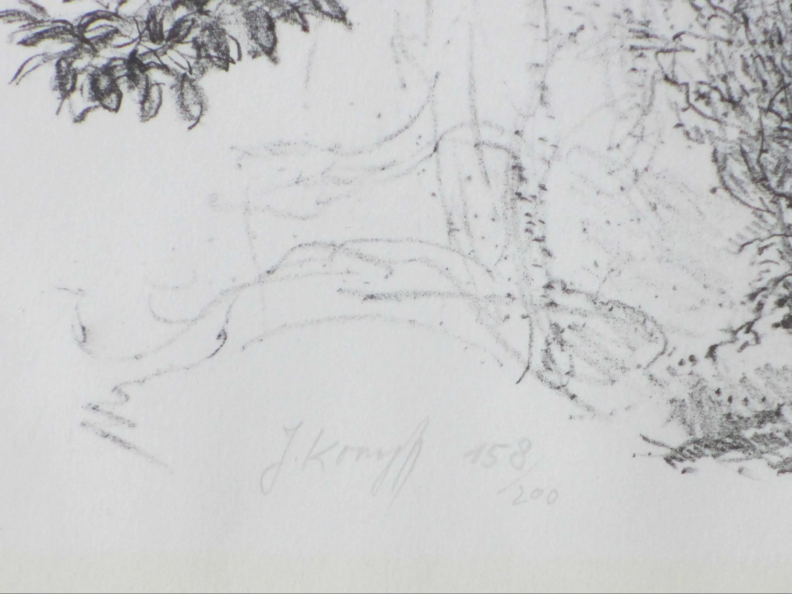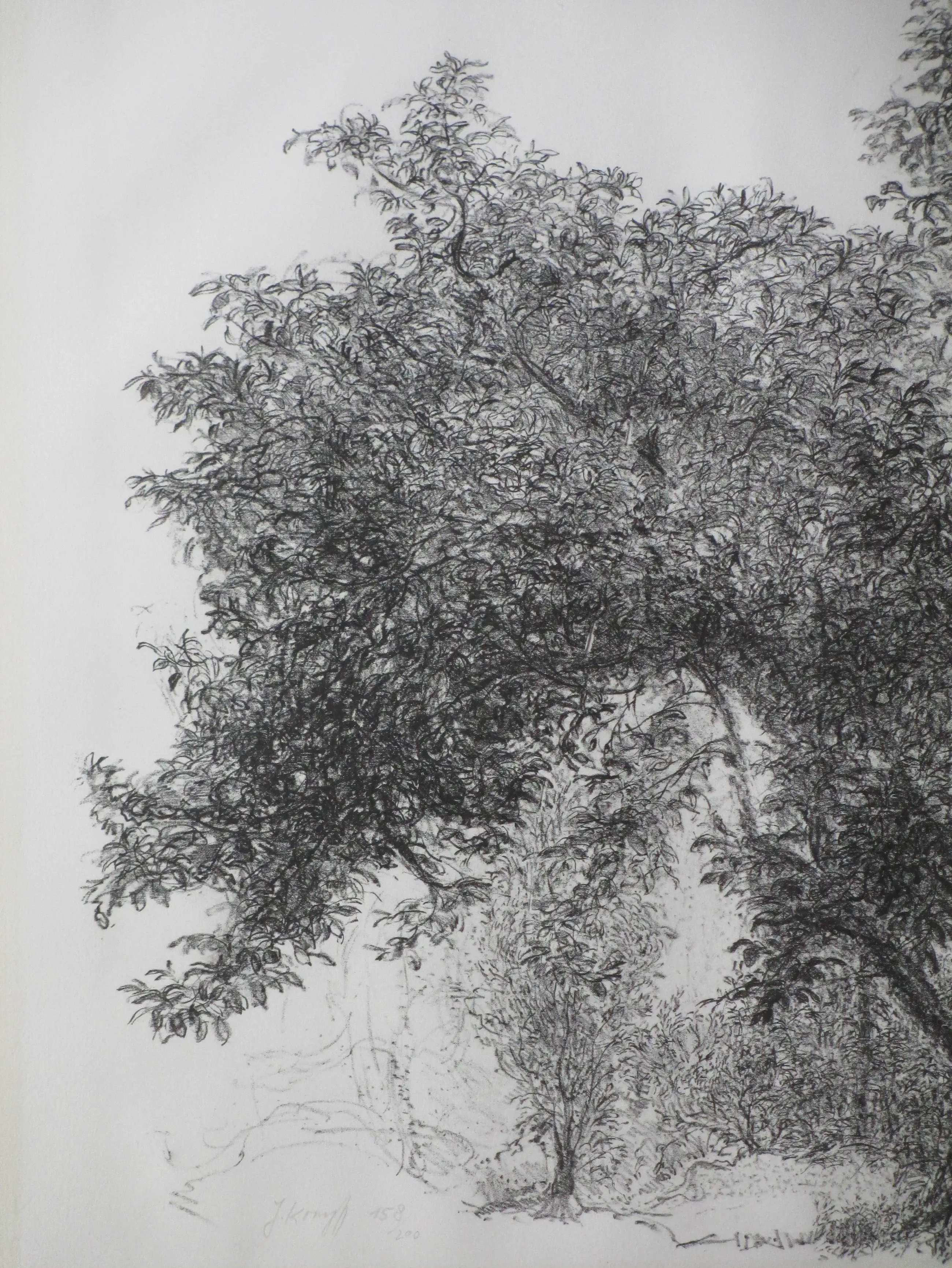 Litho door Jaap Kruijff Voorstelling van een boom, vol in het blad Losbladig, beeldmaat 46x55, bladmaat 50x60 Gesigneerd en genummerd in potlood l.o.: 'J Kruijff 158/200' Herkomst: FNV-SBK Grafiek Drie lichte schaafplekjes in linkerdeel boom Authenticiteit volledig gegarandeerd