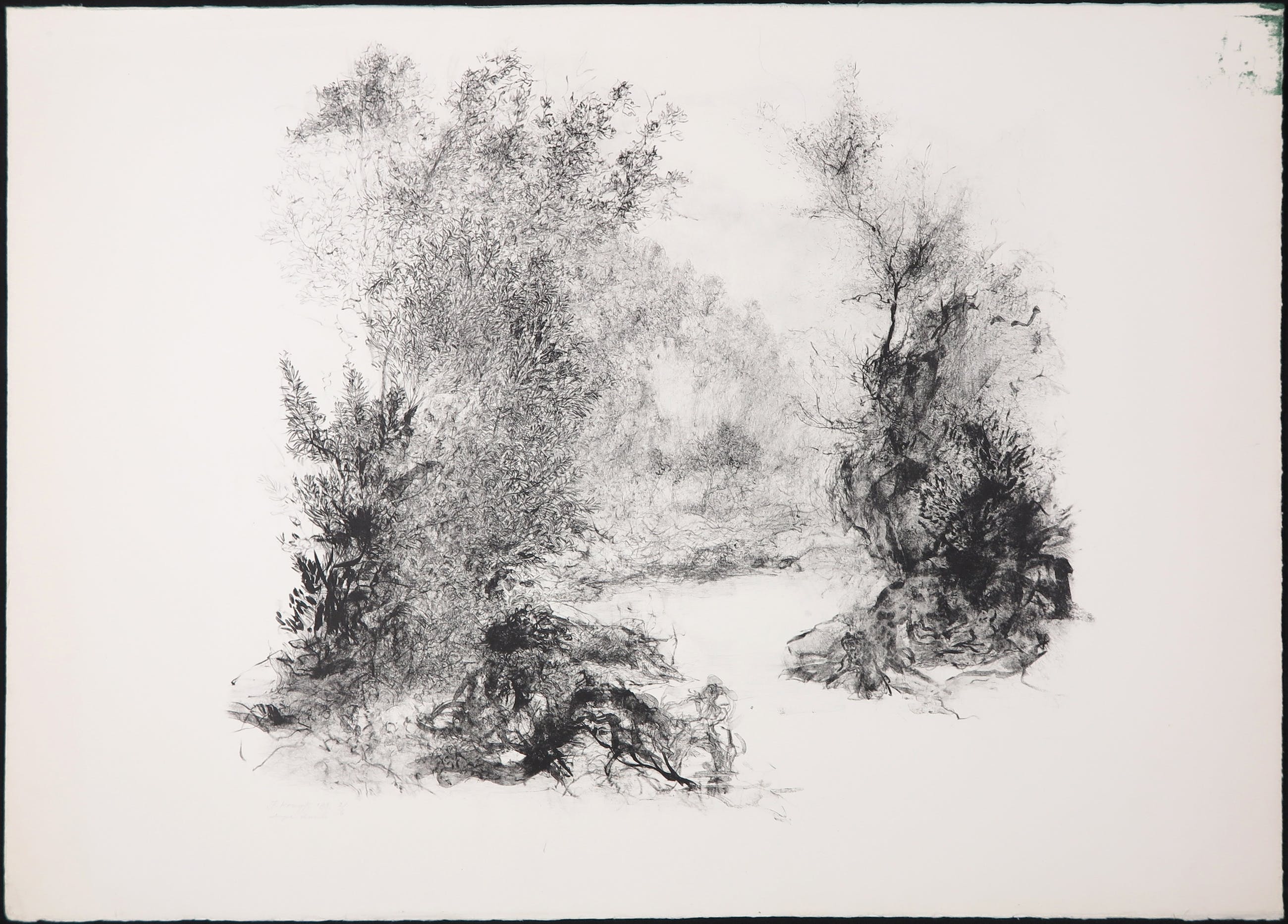 | Beeld is in goede staat. Het blad bevat groene vlekken langs de rand en rechter bovenhoek. Dit is niet meer zichtbaar bij plaatsing in een passe-partout. | |||