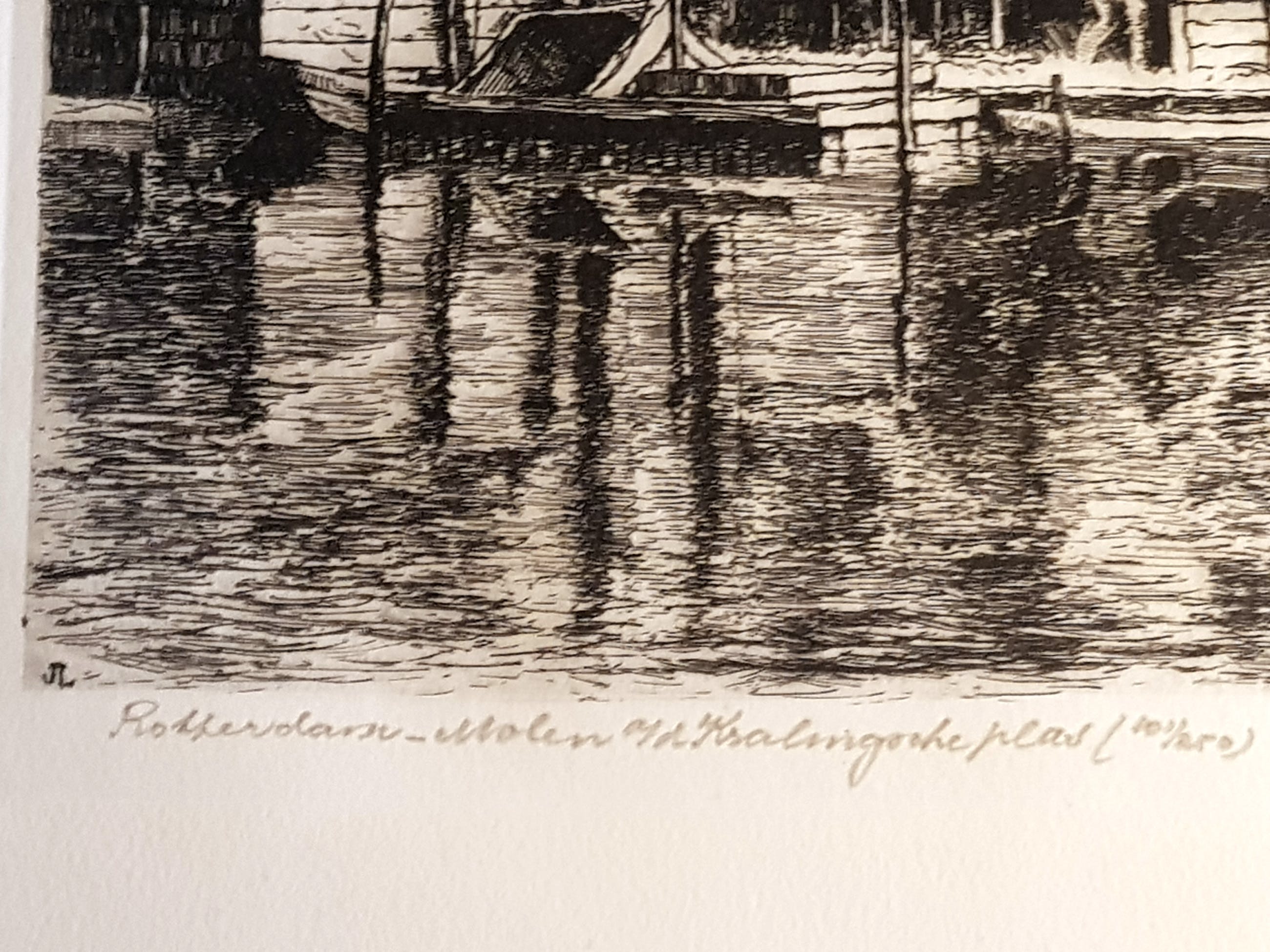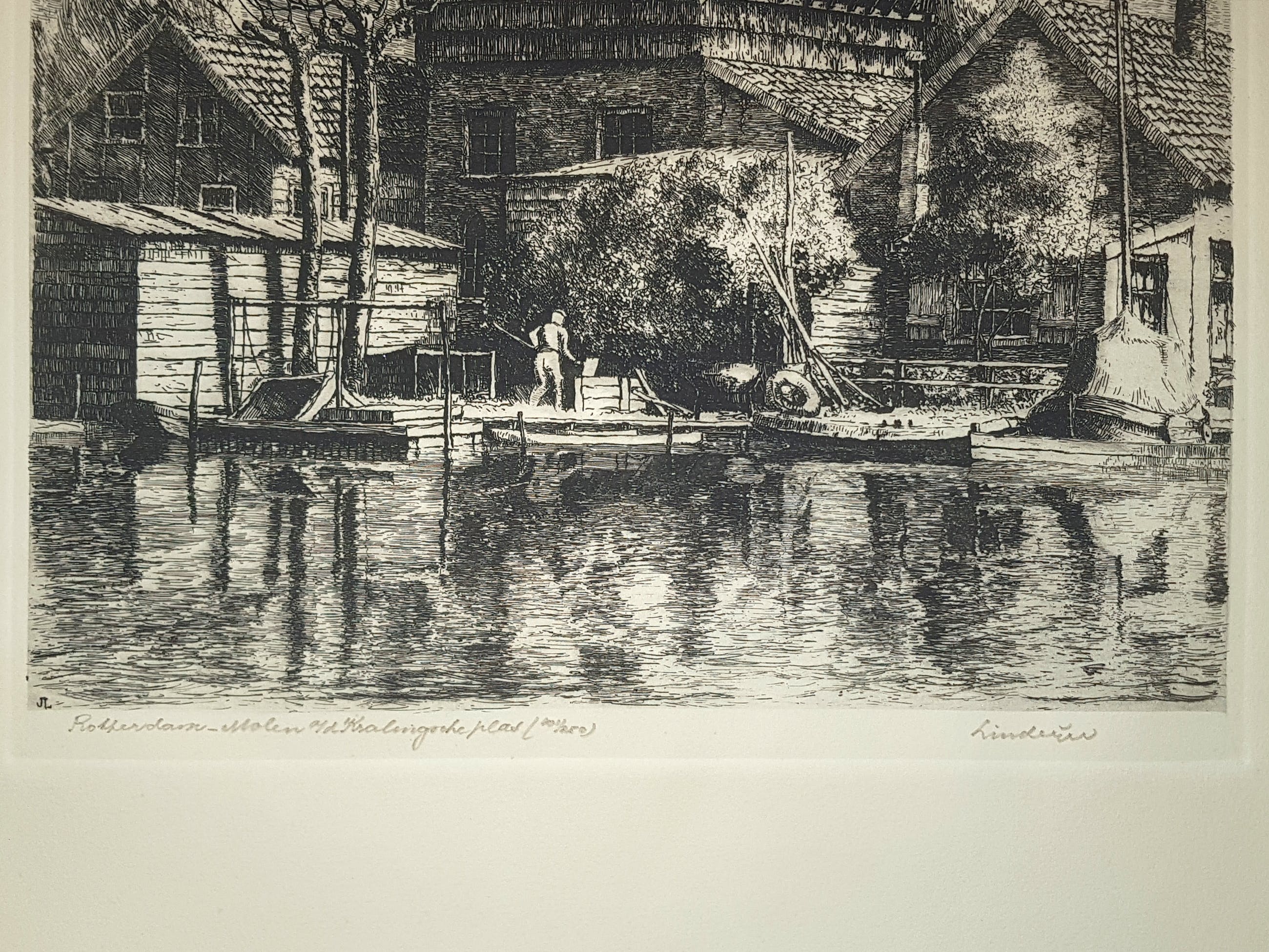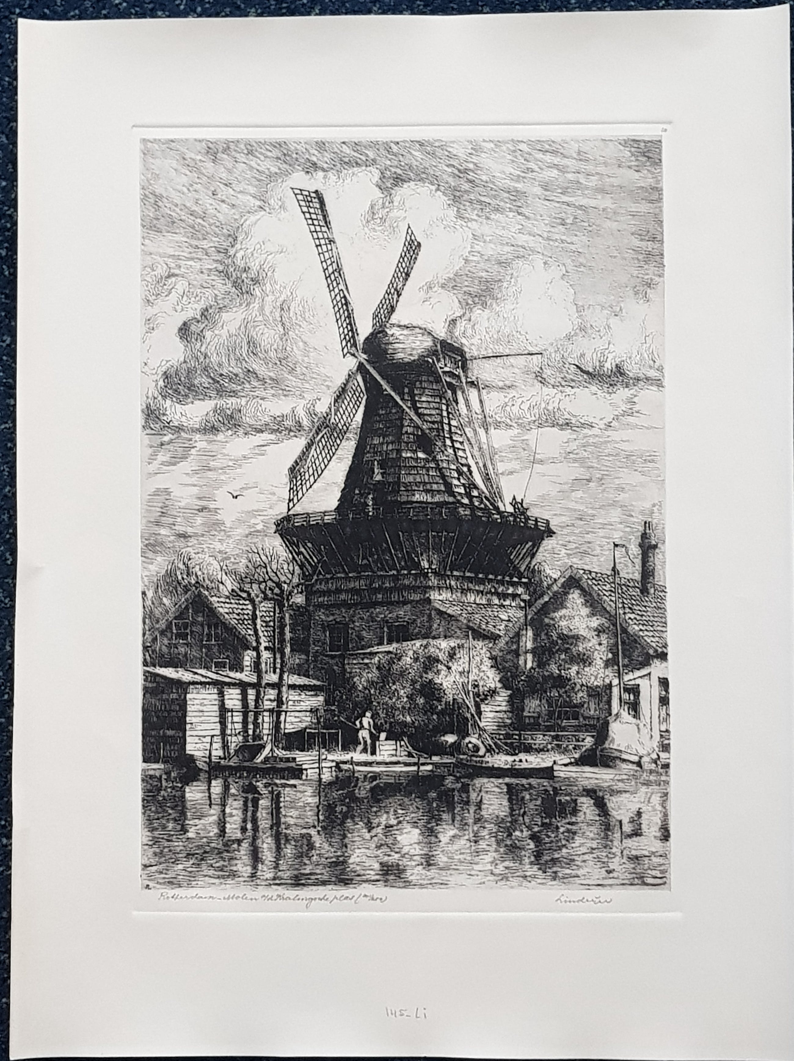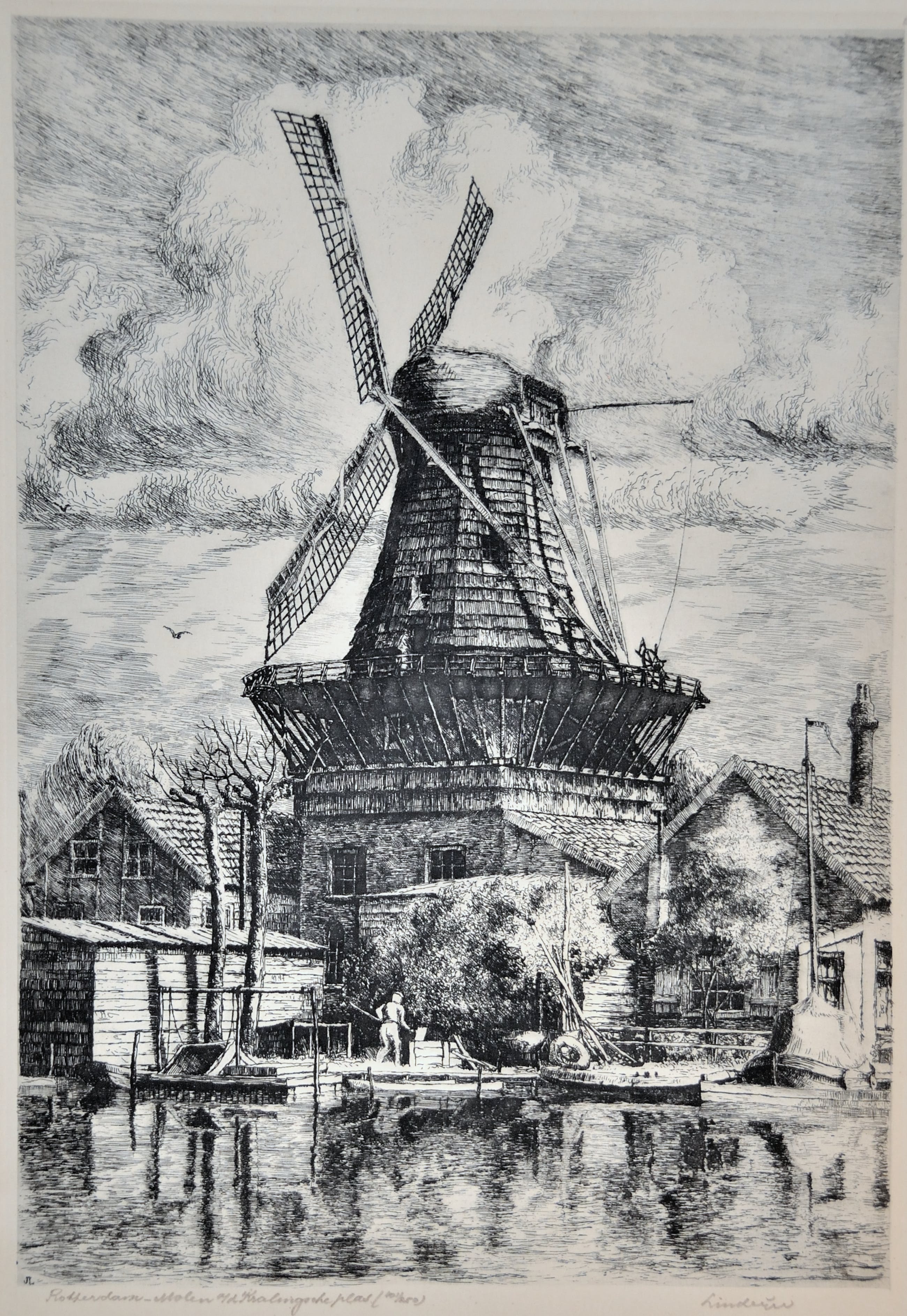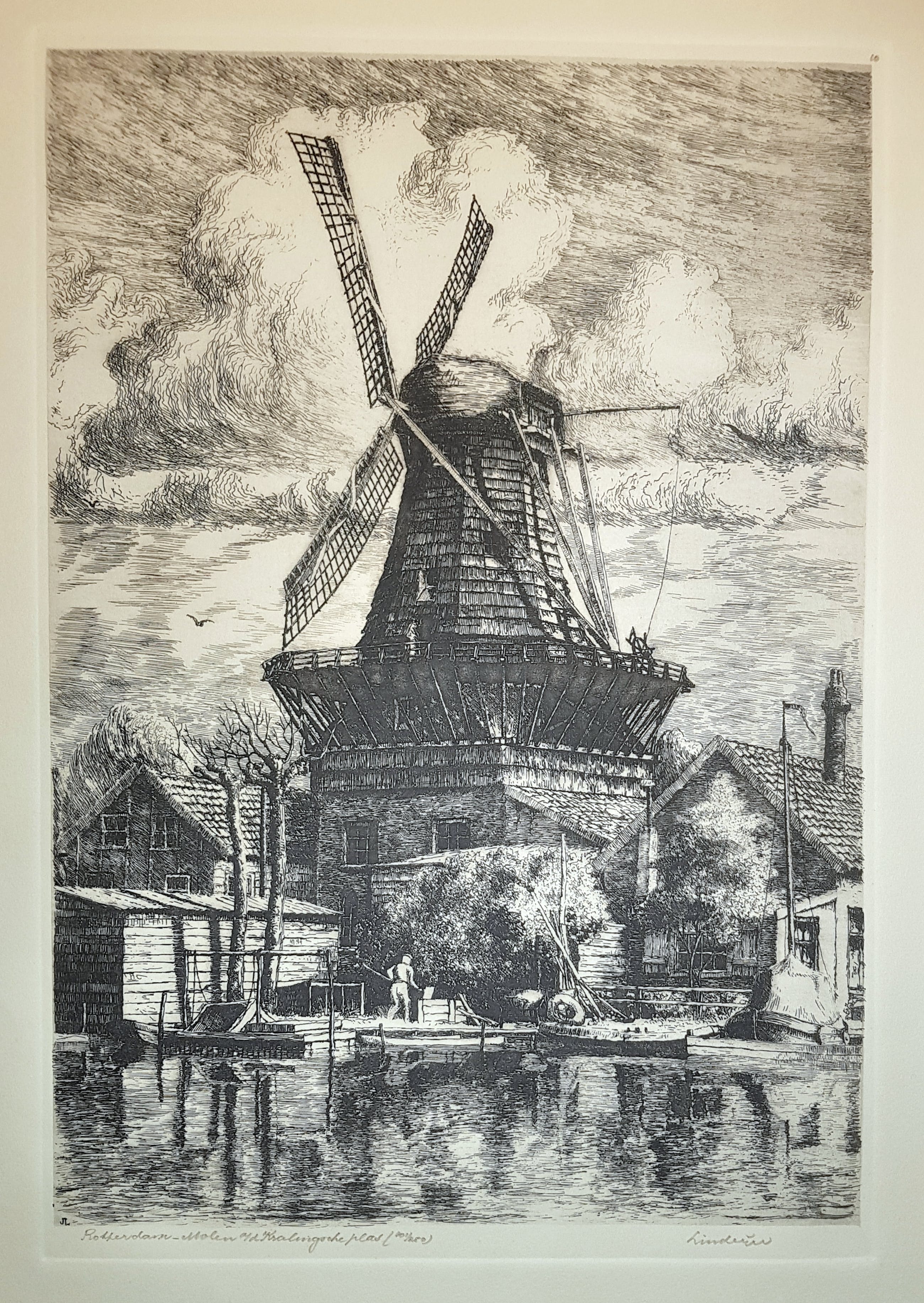 Het afgebeelde werk is een grote, fraai uitgewerkte ets van Jaap (Jacob) Lindeijer, voorstellend een van de snuifmolens De Ster en De Lelie, die samen met het Karottenfabriekje en de voormalige Molenaarswoning deel uitmaken van het historische molencomplex aan de Kralingse Plas te Rotterdam.