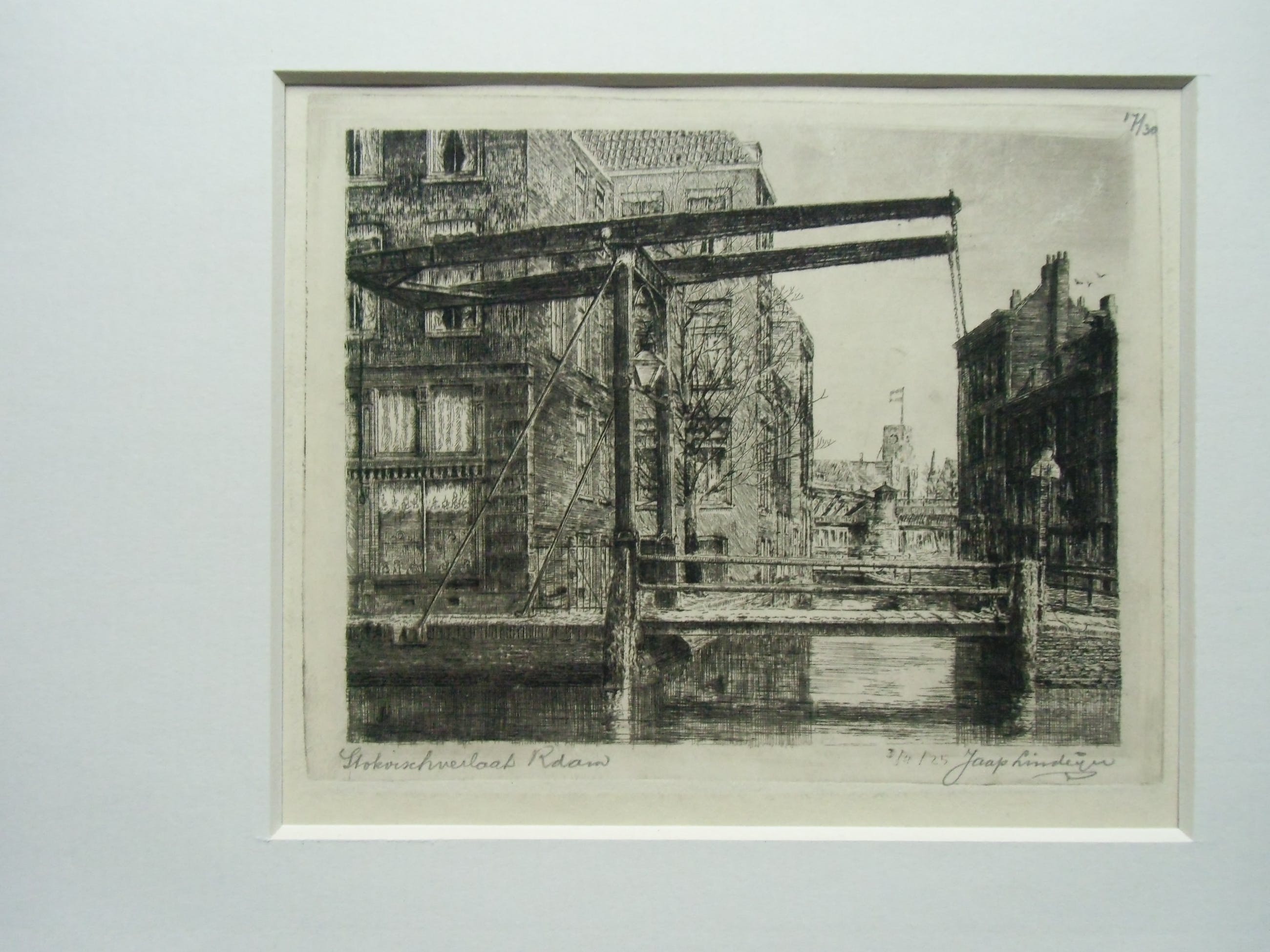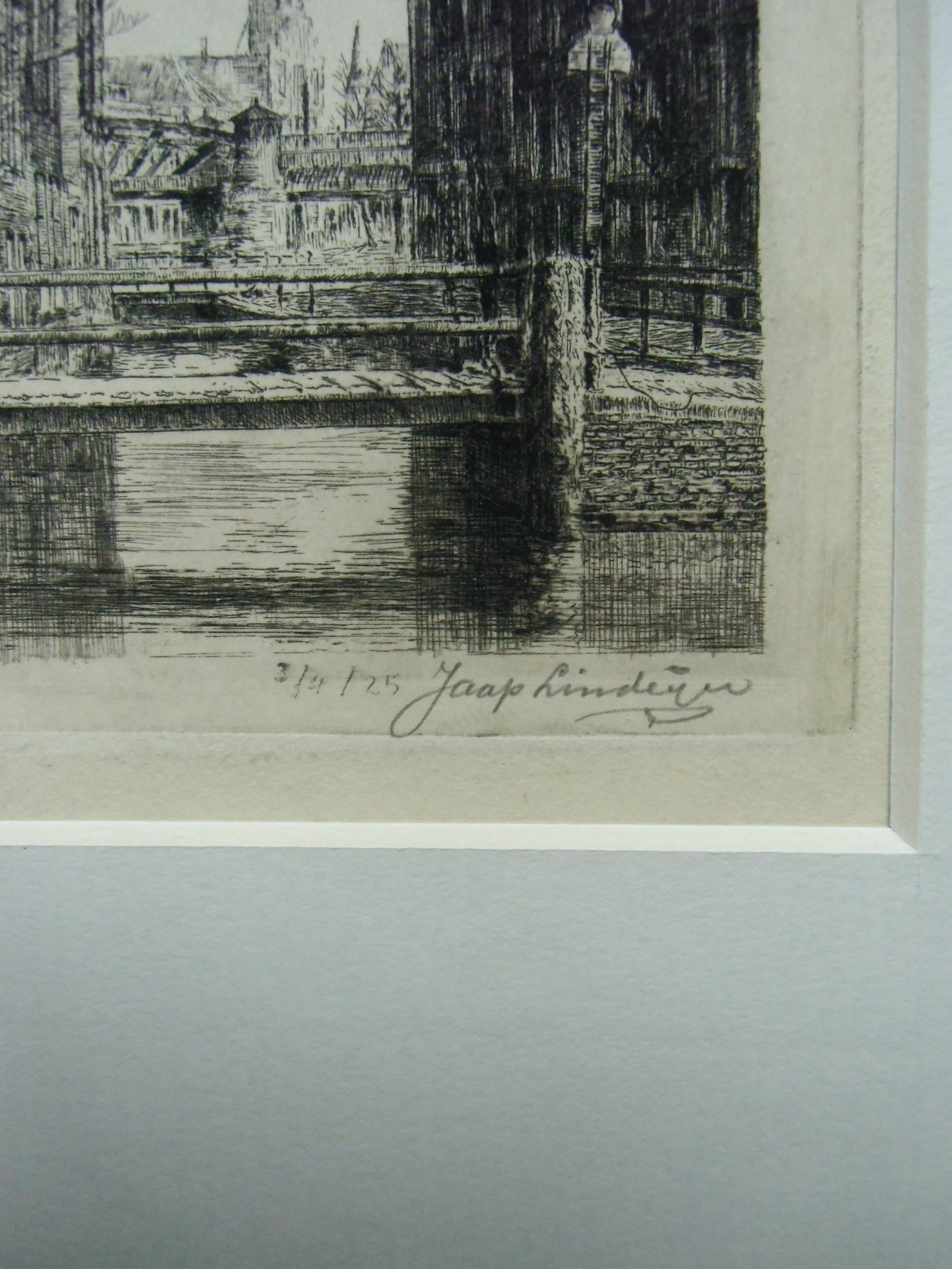 Virtuoos etser van Rotterdamse stadsgezichten. Gesigneerd en betiteld met potlood. Jaar 1925. Oplage 17/30. Zeer goede conditie.
