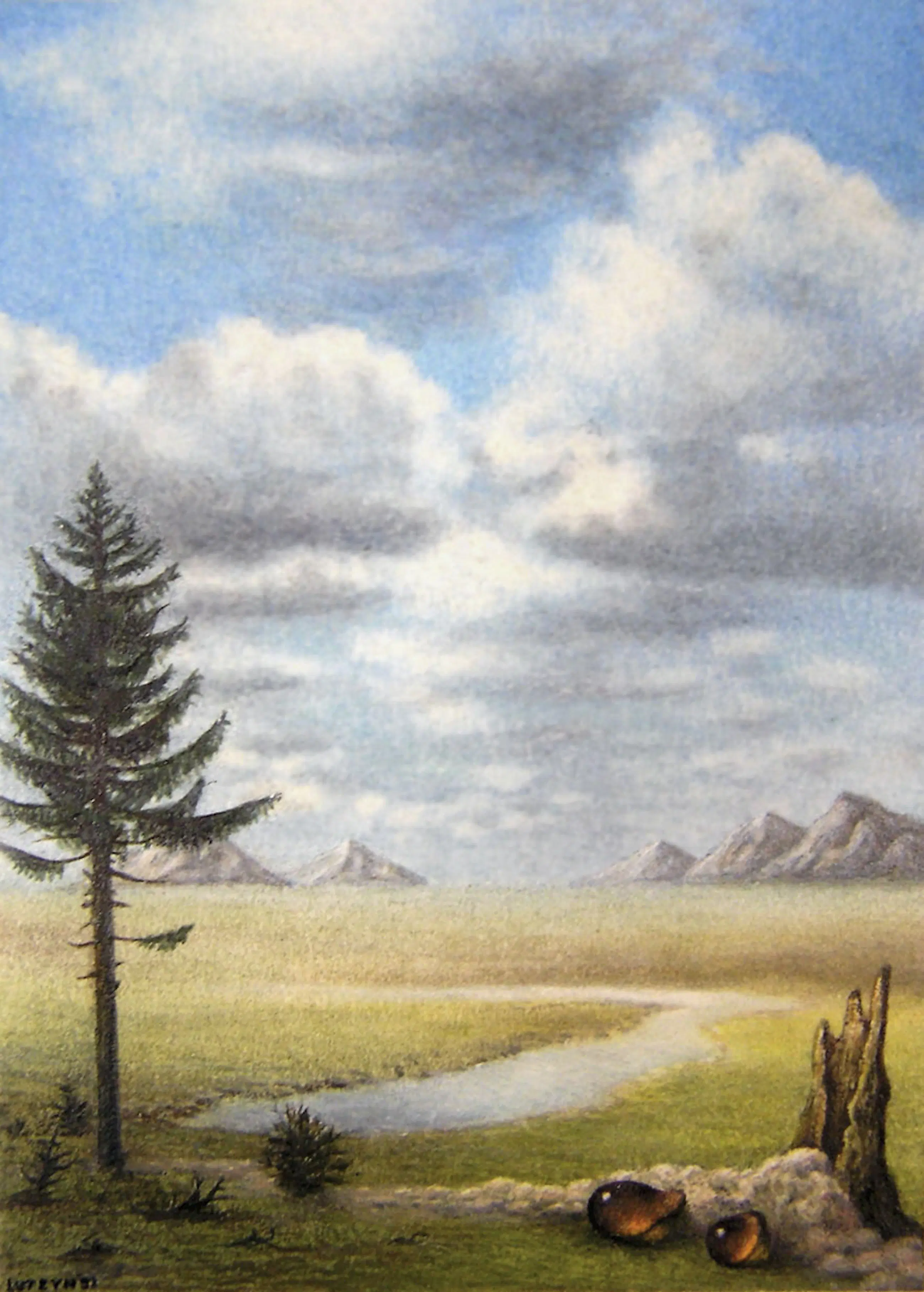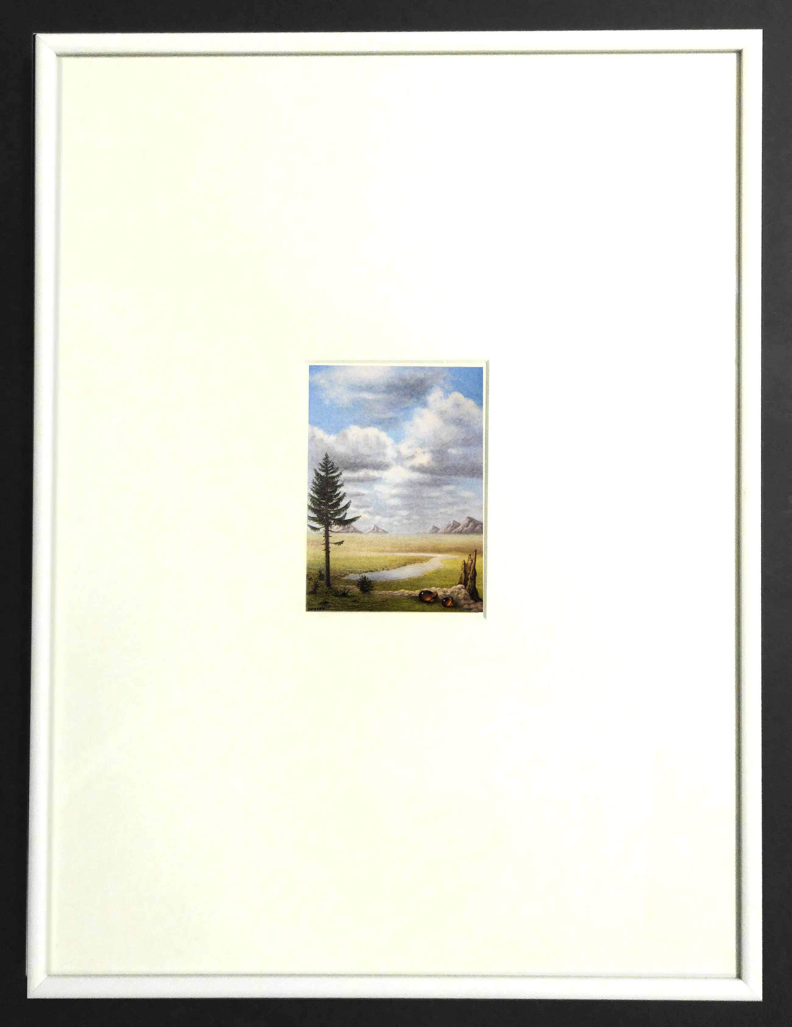Luteyn heeft in het verleden een aantal miniatuurtjes gemaakt dit is een van zijn eerste in 1992 ze zitten allemaal in een witte wissellijst met passe-partout achter glas. Alleen de techniek van dit werkje is anders dan de andere aanbiedingen namelijk pastelkrijt en aquarel-potlood, daardoor wat grof in structuur voor zo'n kleintje. De prijs is daar ook naar.