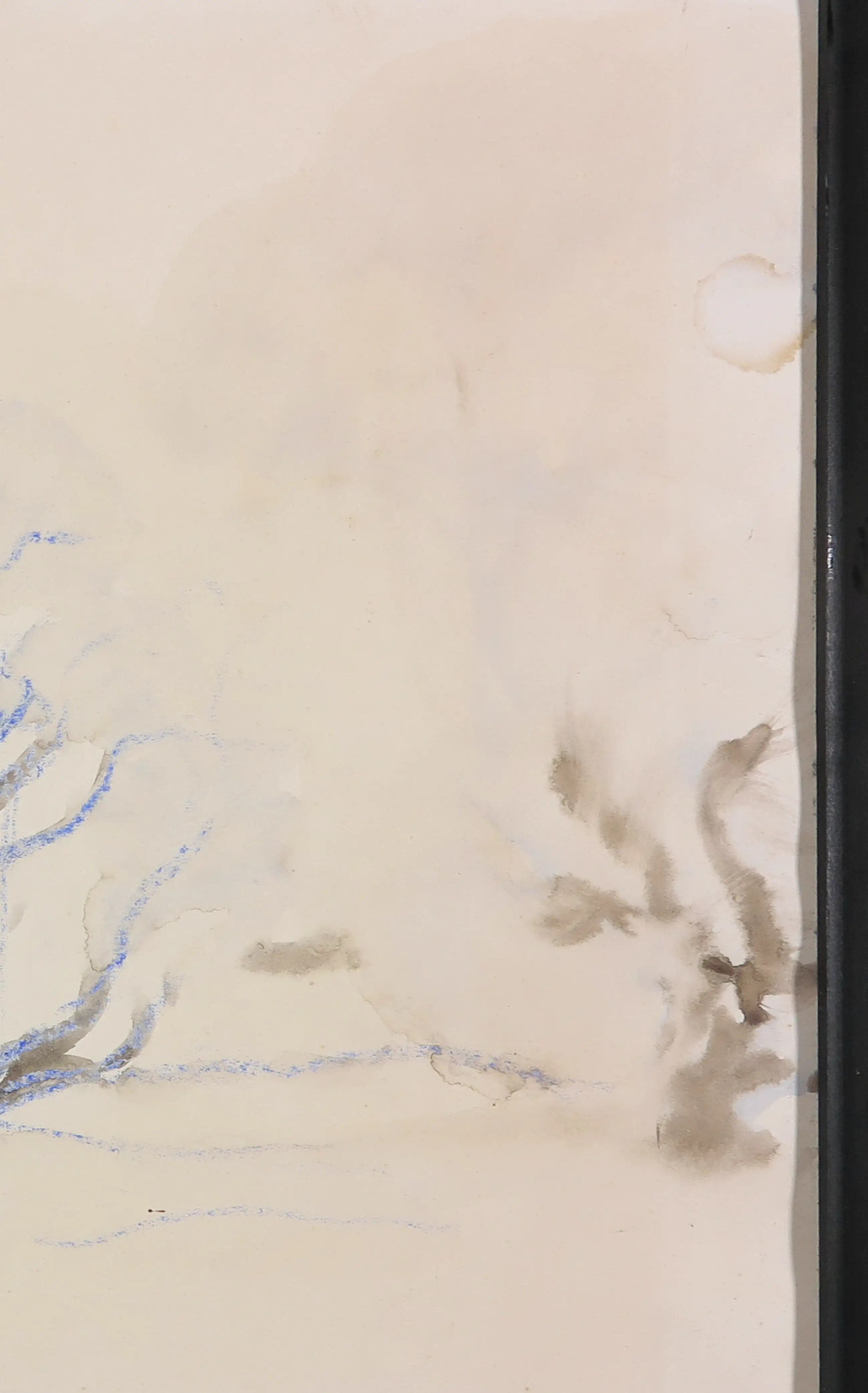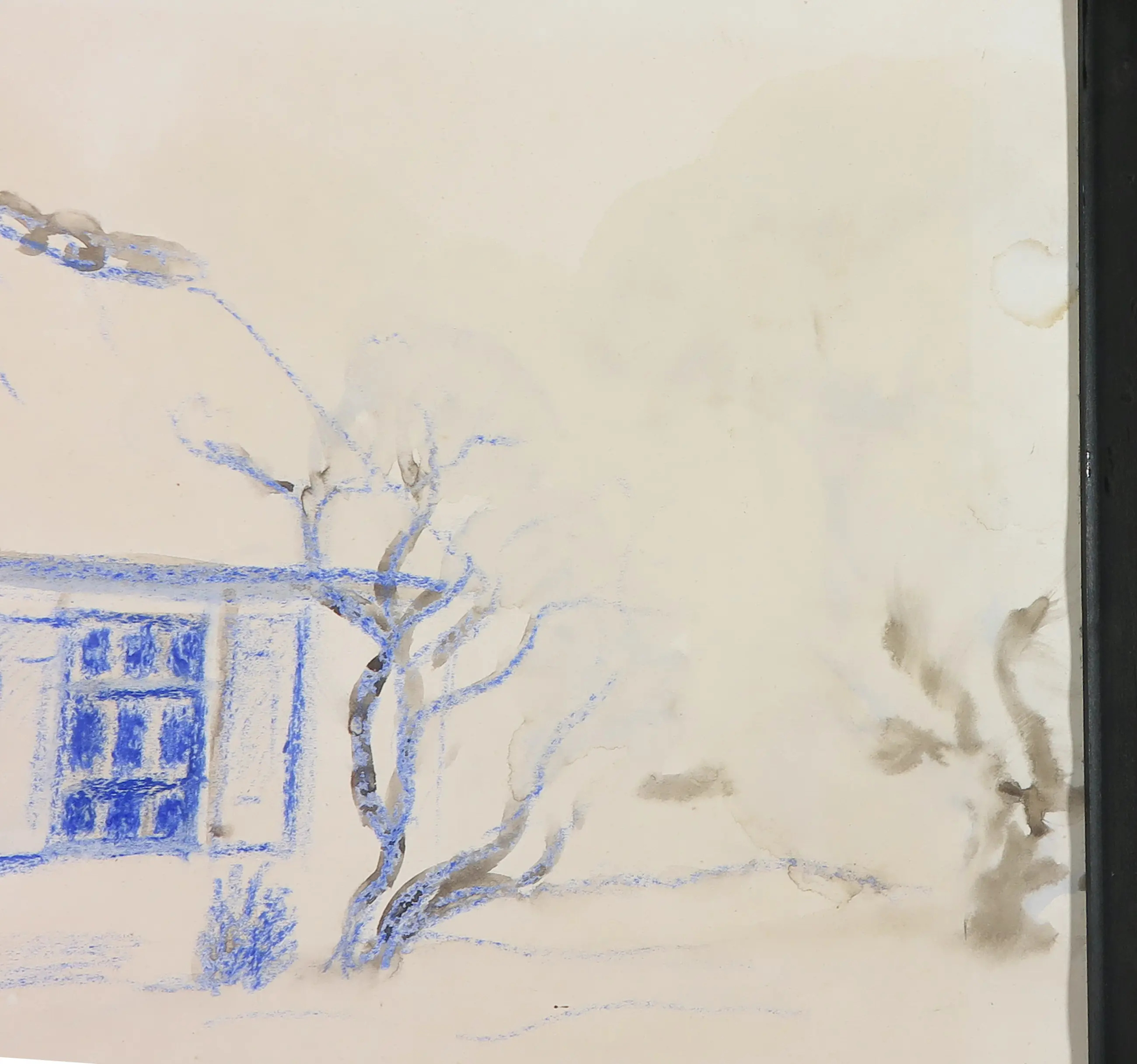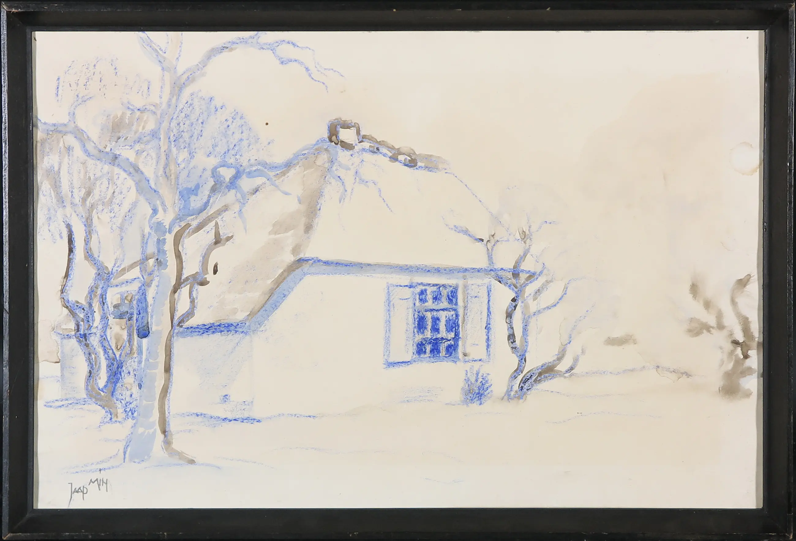 Uniek werk op papier (krijt, inkt) op papier van Jaap Min. Ingelijst zonder glasplaat.