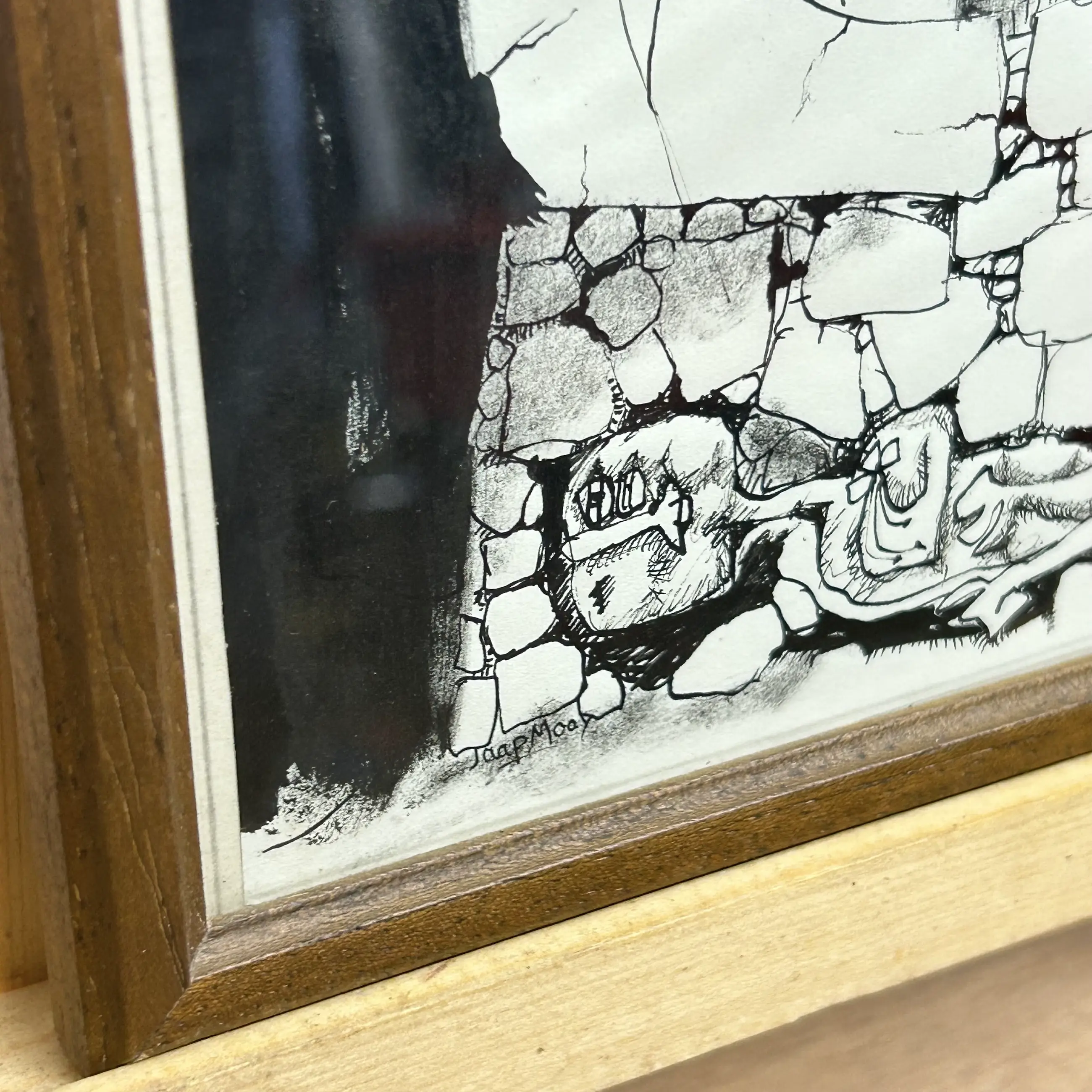 Zeldzame kans op een origineel werk van Mooy, met verborgen overgetekende onderdelen zichtbaar in het licht krijgt de kijker ook een inkijkje in de werkwijze van de meester, zeer mooi donker werk met signatuur linksonder.